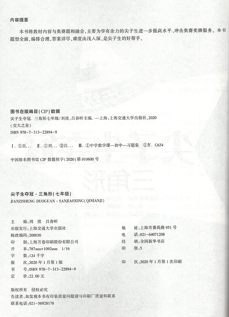 交大之星 尖子生夺冠 三角形 7年级/七年级数学 含答案 初中数学辅导书 初中数学专题 上海交通大学出版社