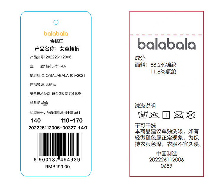 【商场同款】巴拉巴拉童装女童短裙儿童裙子2026夏装新款裙裤速干