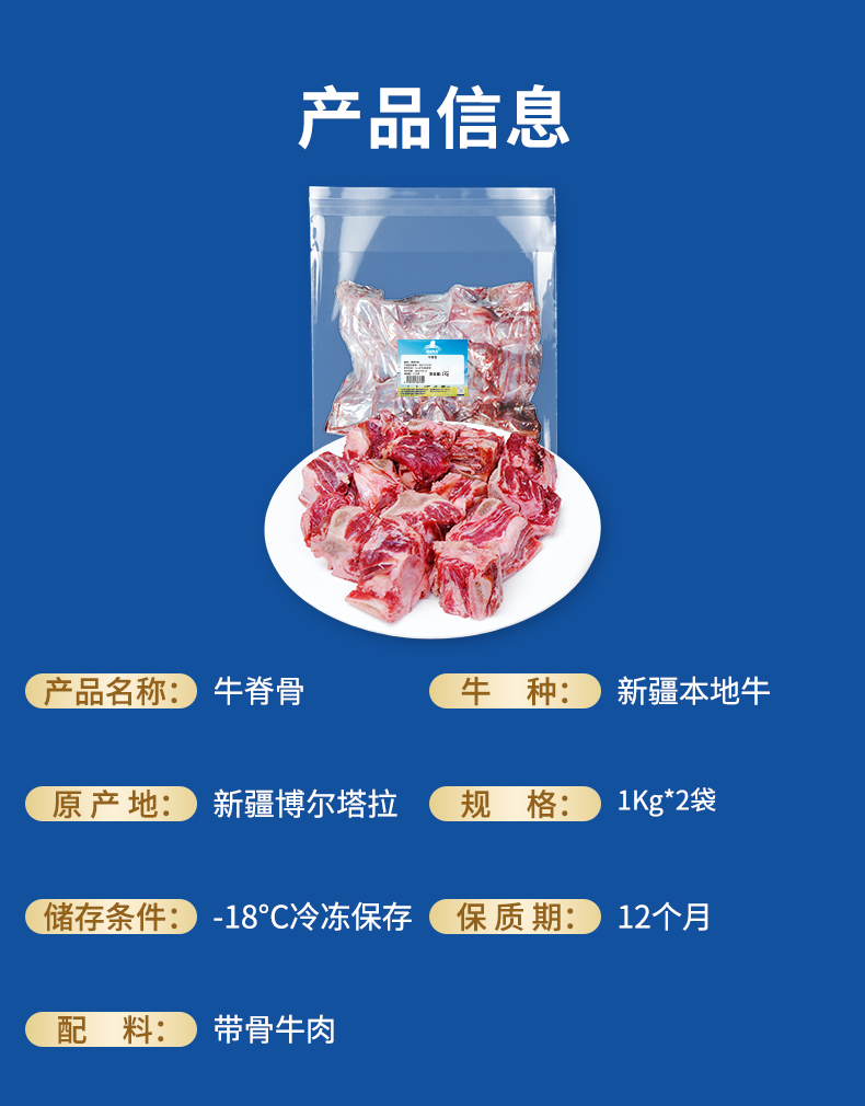 雪山牛谷新疆原切煲汤牛脊骨1000g*2袋