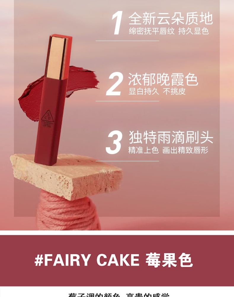 3CE 云朵唇釉 #FAIRY CAKE莓果色