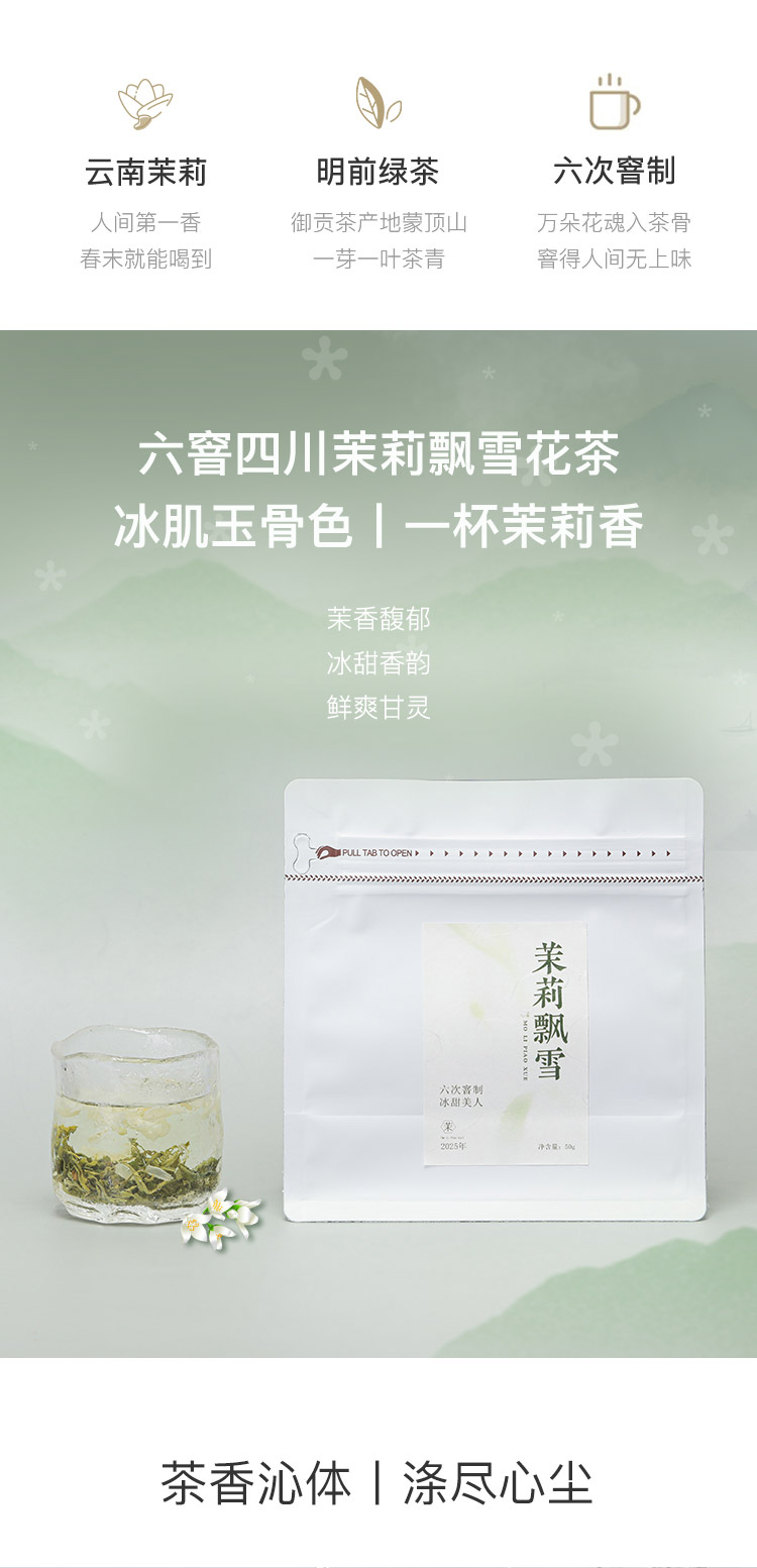 冰甜美人 2025年六窨四川茉莉飘雪花茶50g/袋
