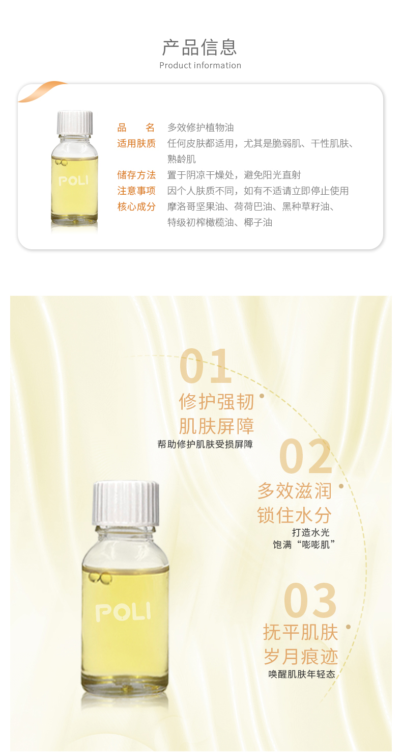 POLI多效修护植物油 敏感肌/瓷肌换季修护复合植物油原料批发