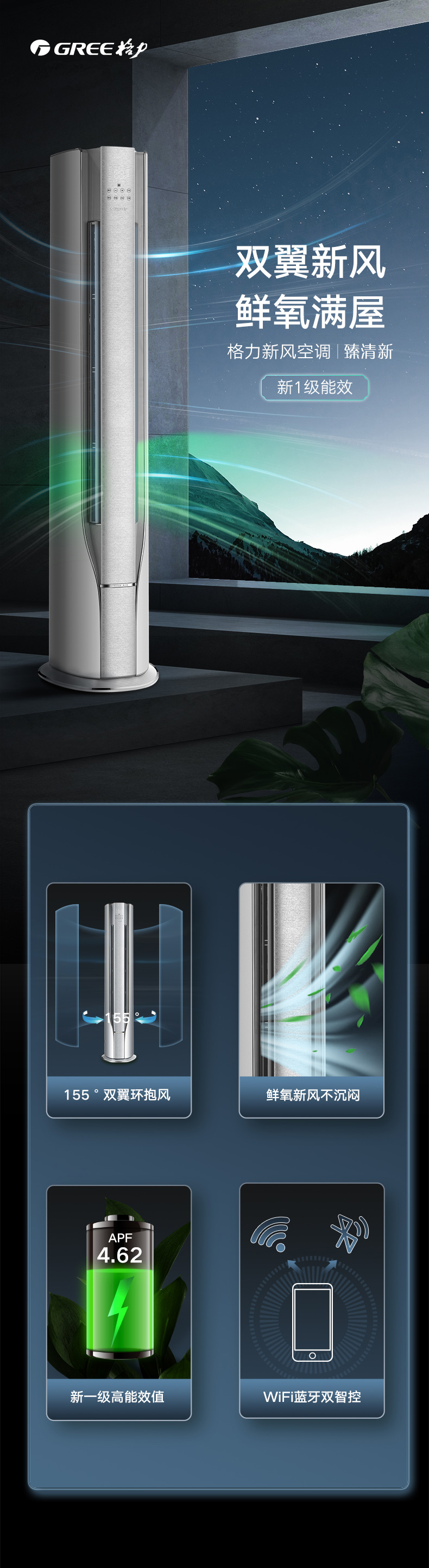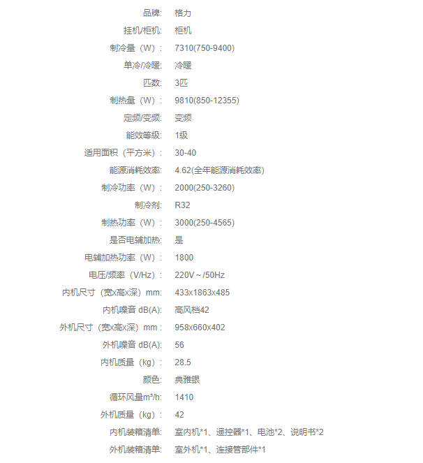 格力·臻清新变频冷暖3匹1级能效柜机空调 KFR-72LW/(72586)FNhAb-B1(WIFI)(典雅银)
