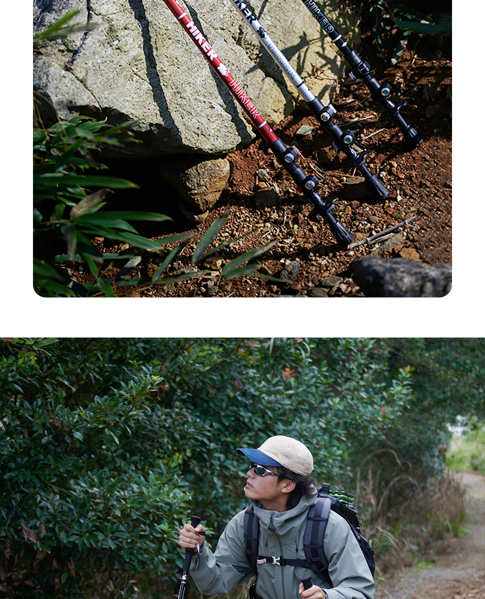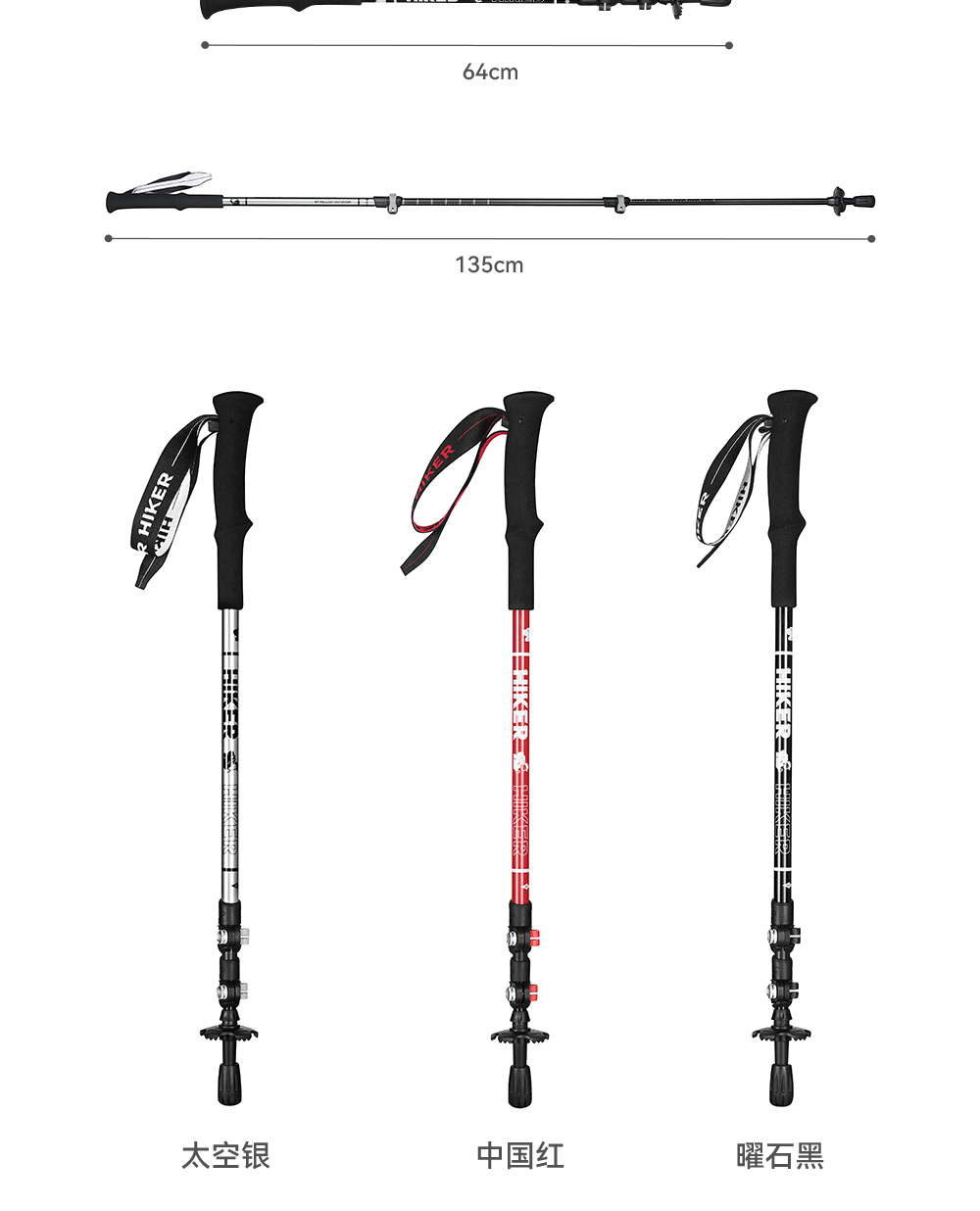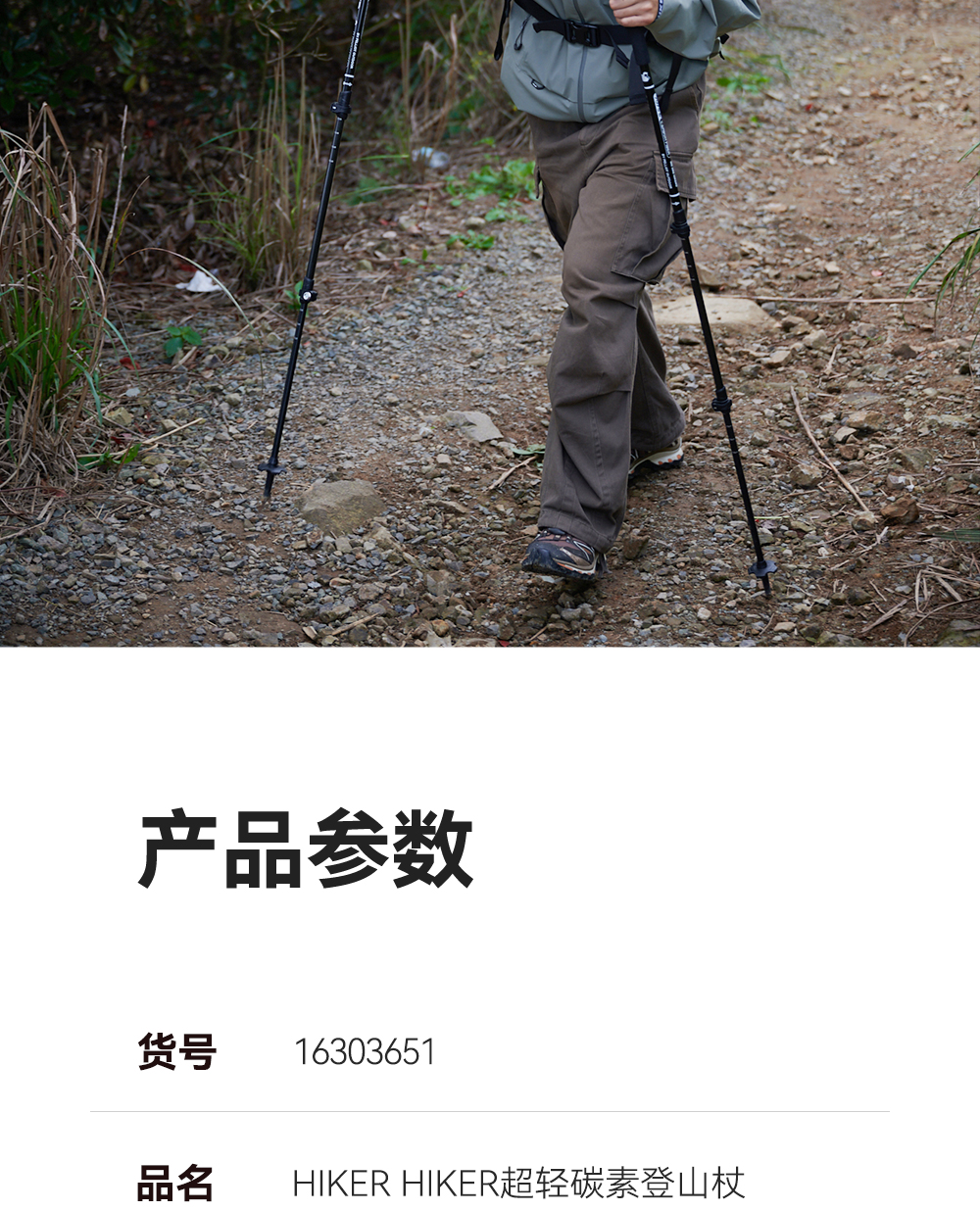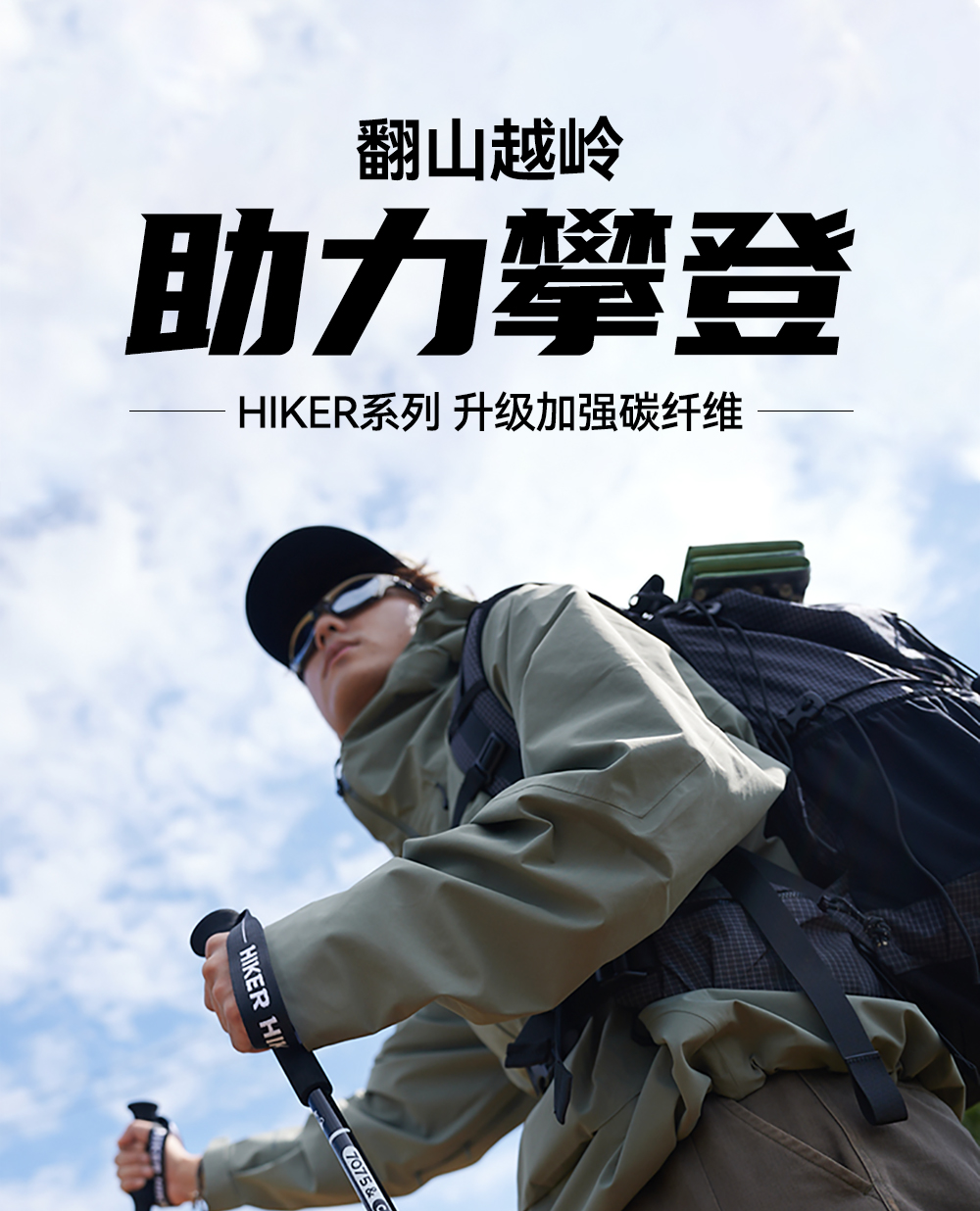 【HIKER】伯希和户外登山杖碳素伸缩爬山手杖碳纤维徒步杖防滑杖