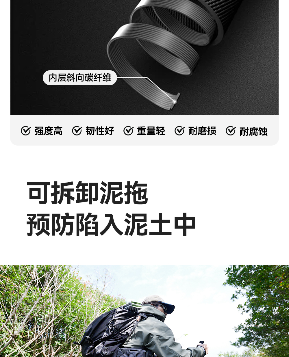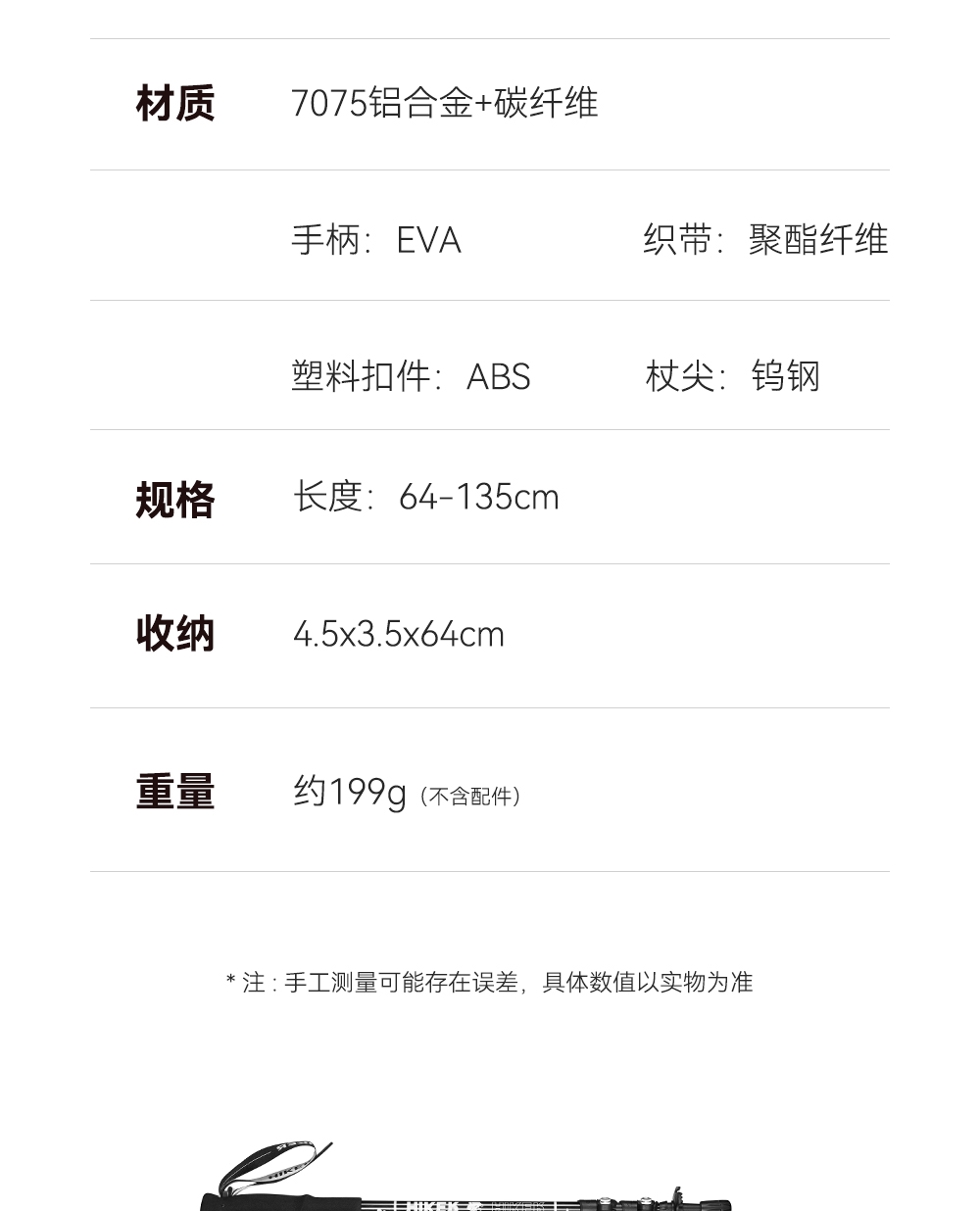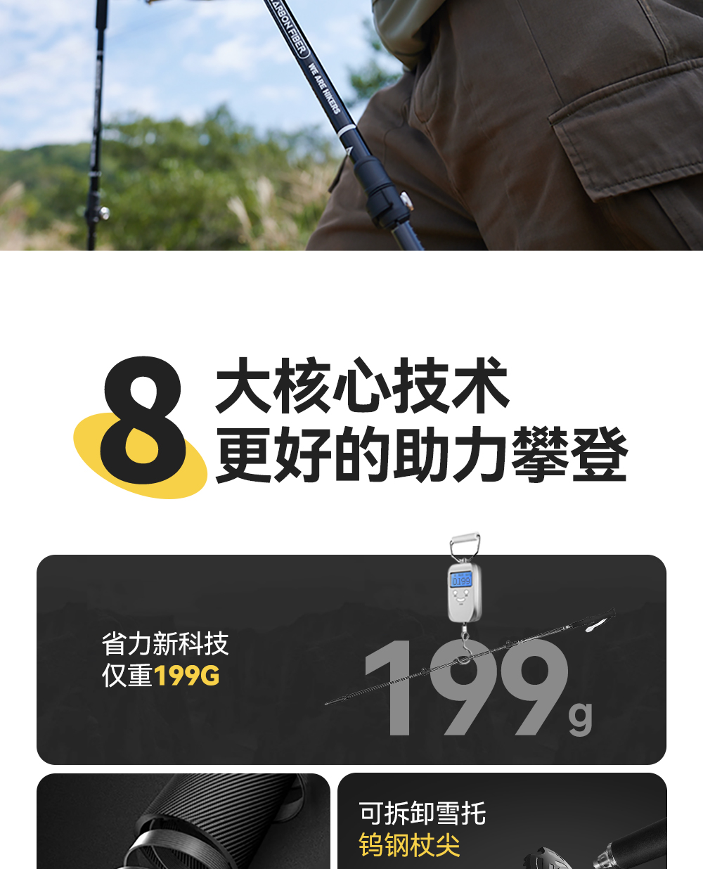 【HIKER】伯希和户外登山杖碳素伸缩爬山手杖碳纤维徒步杖防滑杖