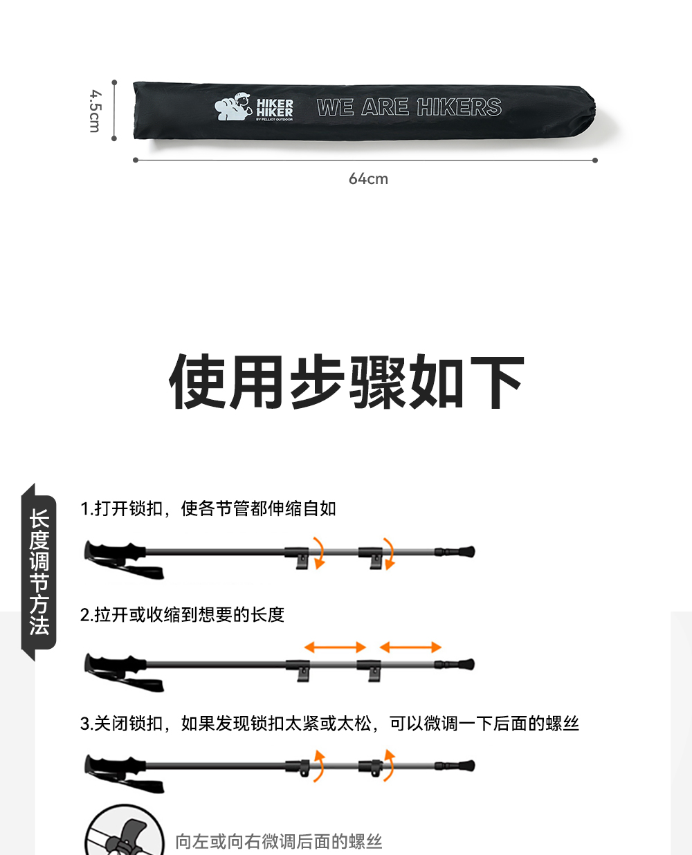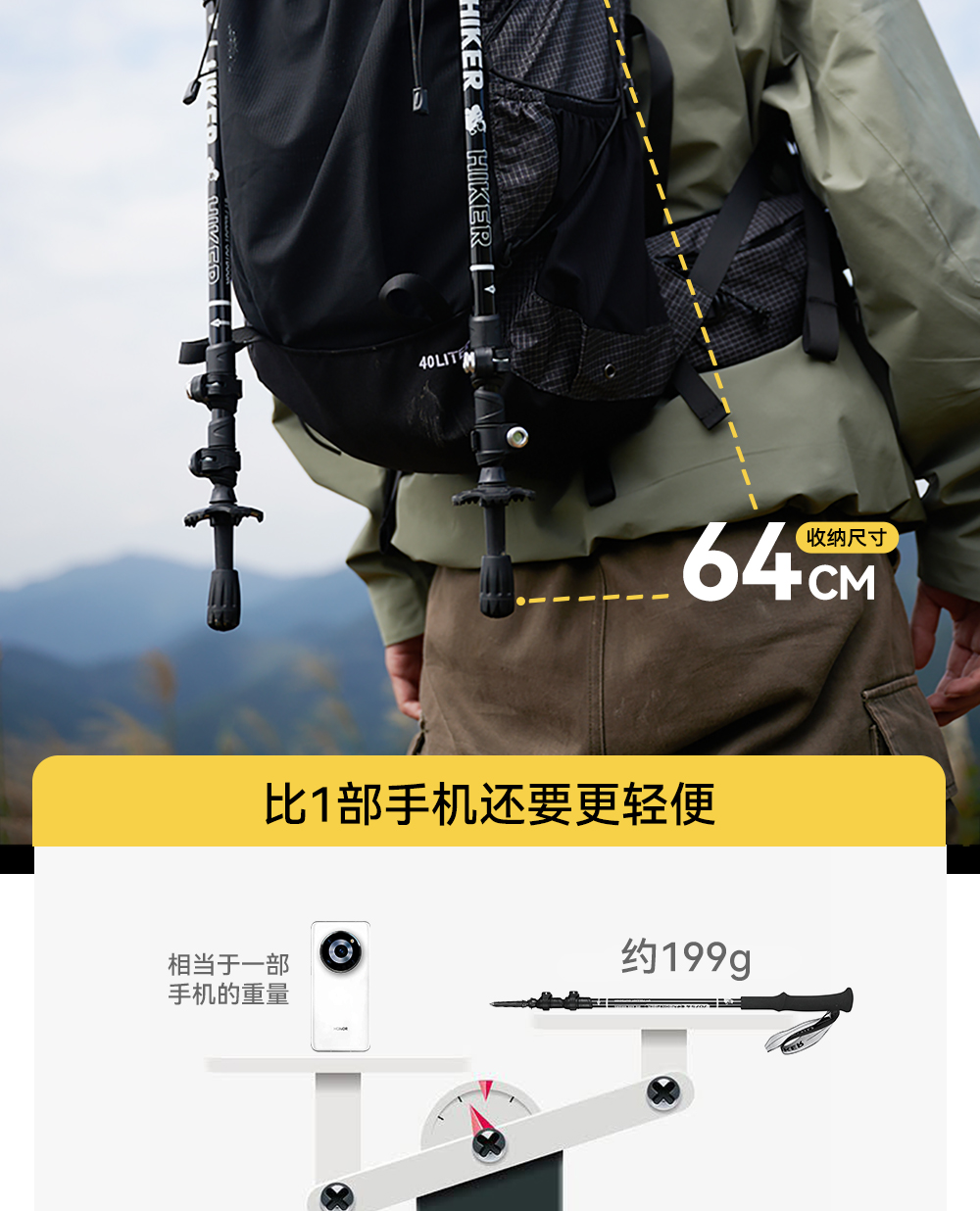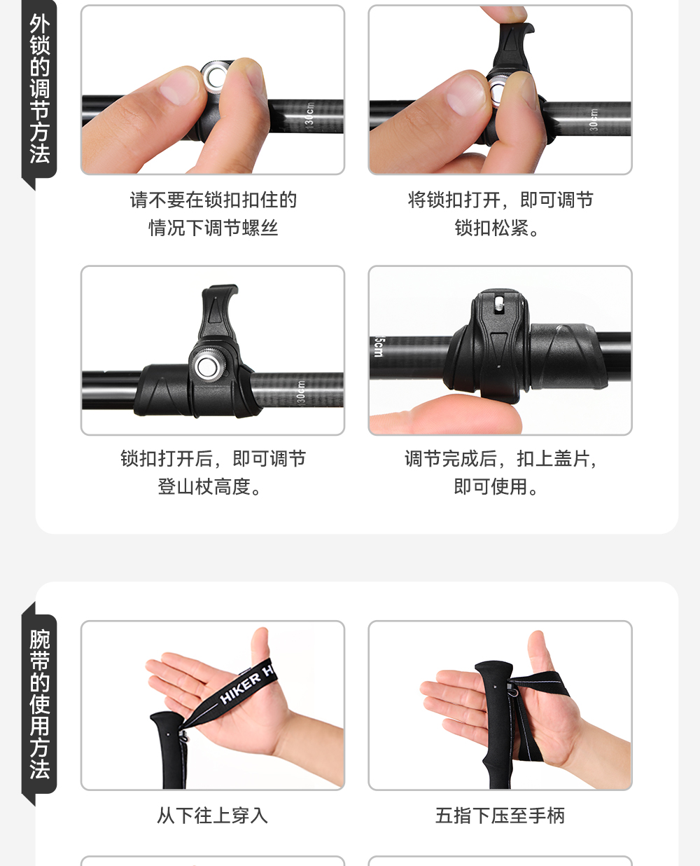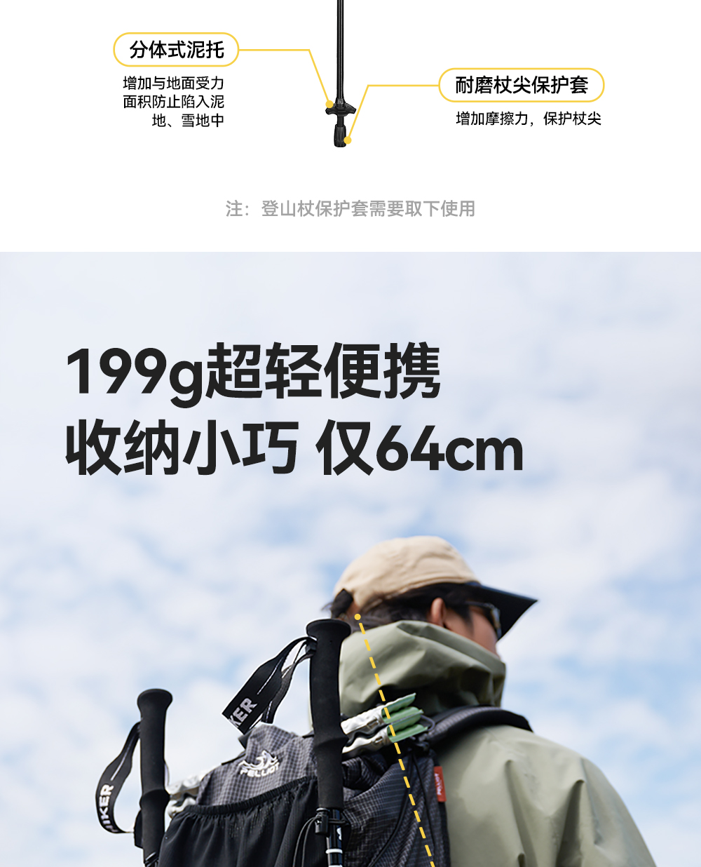 【HIKER】伯希和户外登山杖碳素伸缩爬山手杖碳纤维徒步杖防滑杖
