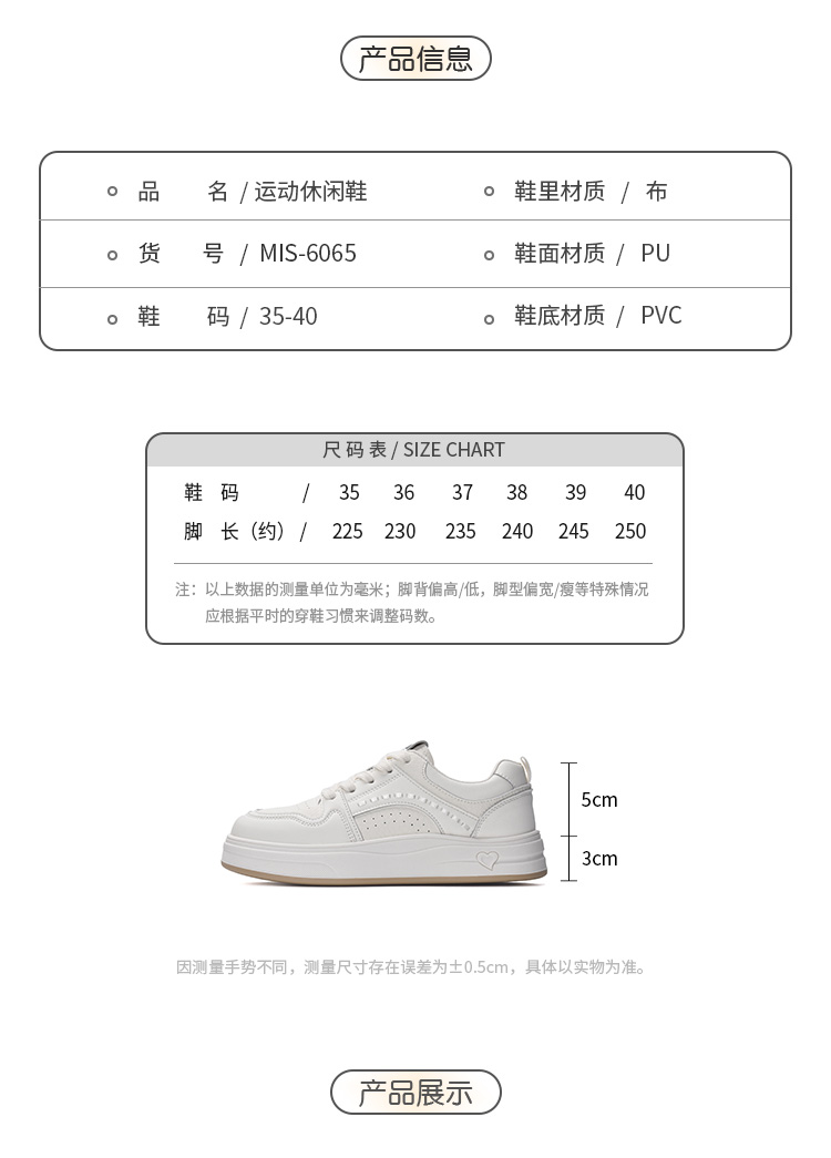【YW】无忧购26春季新款厚底透气休闲板鞋爱心百搭小白鞋MIS-6065(3.7截单后3-7天发货)