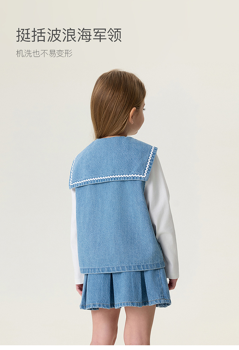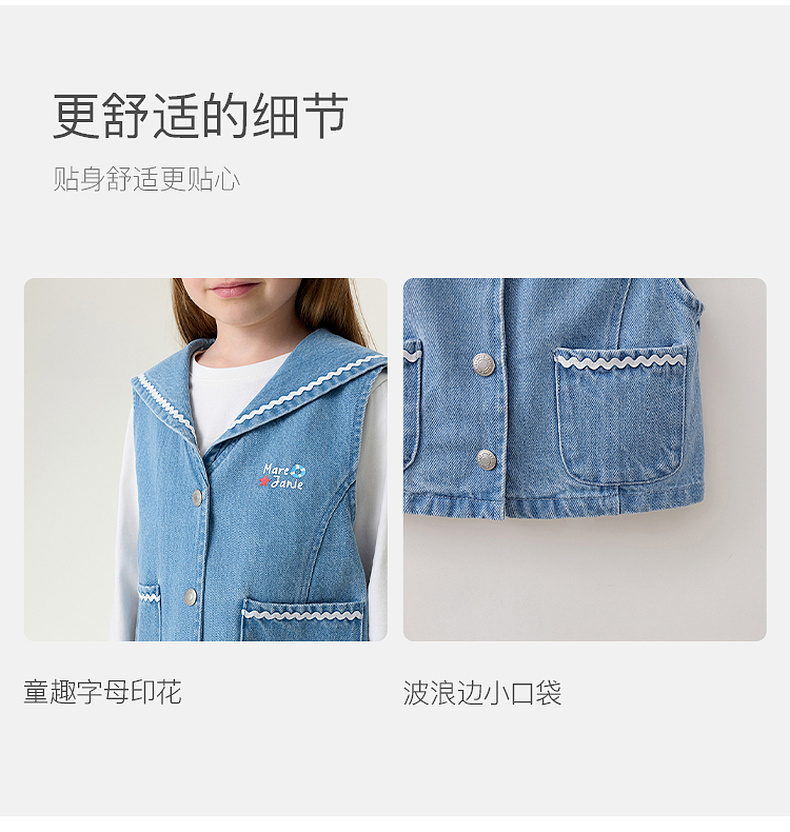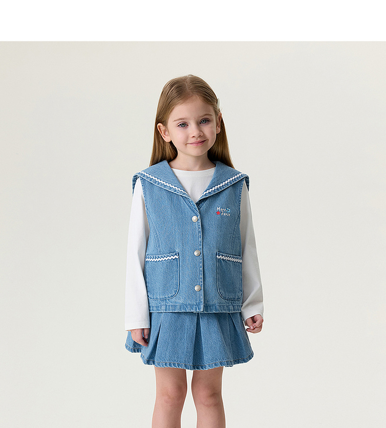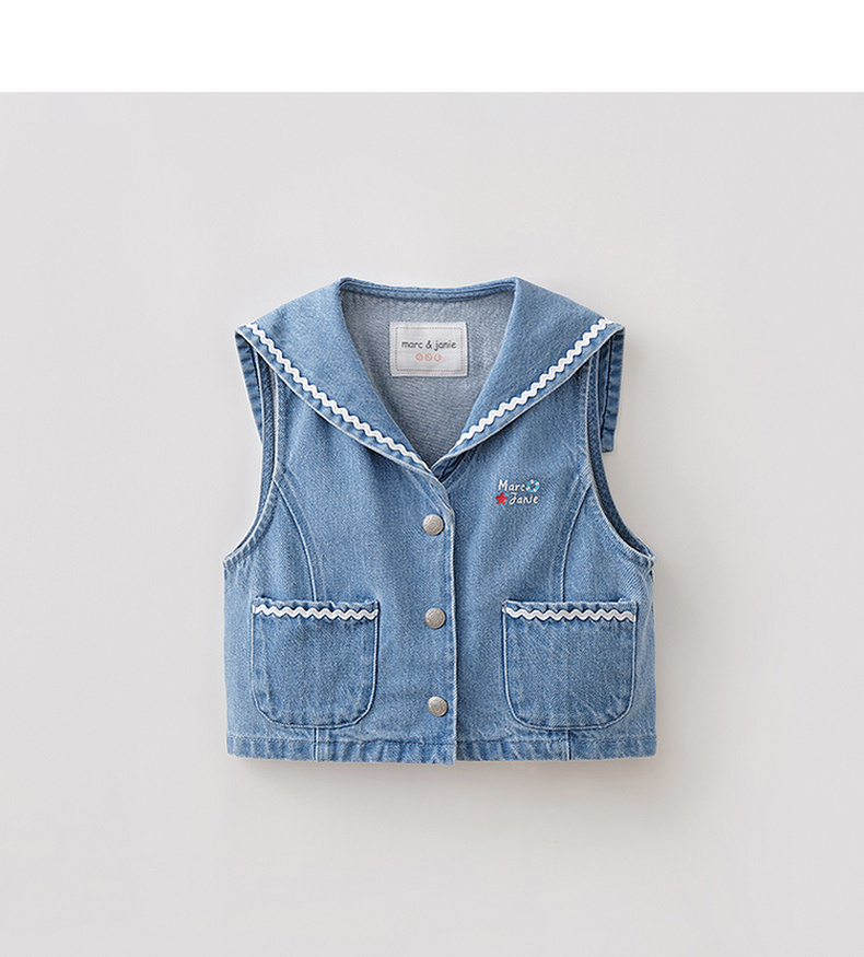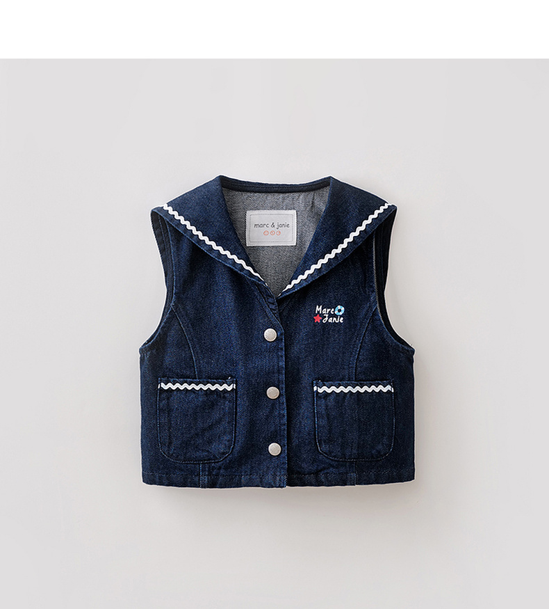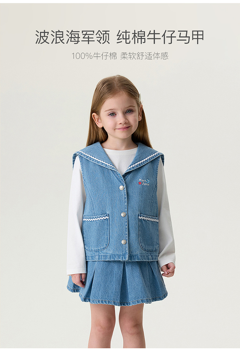 马克珍妮波浪海军领女童纯棉牛仔马甲2026年春装新款560139