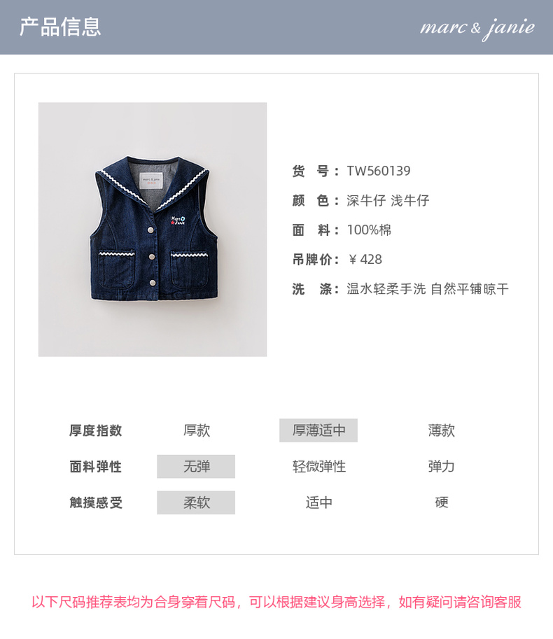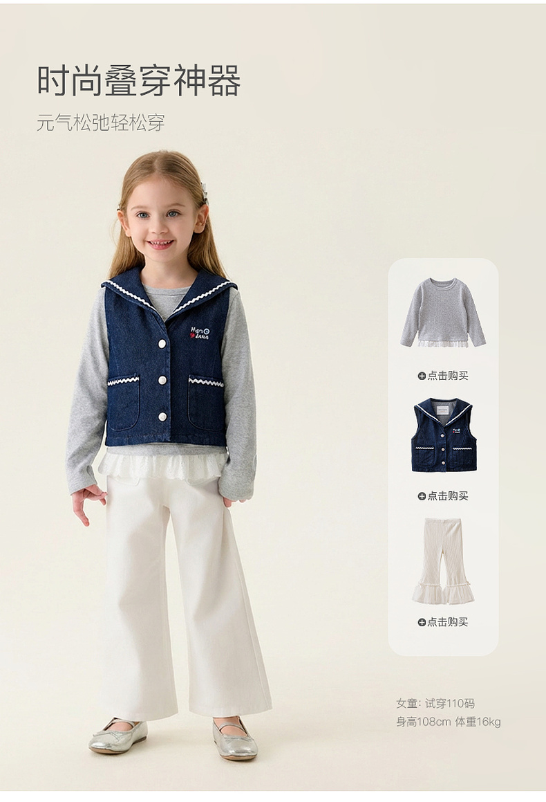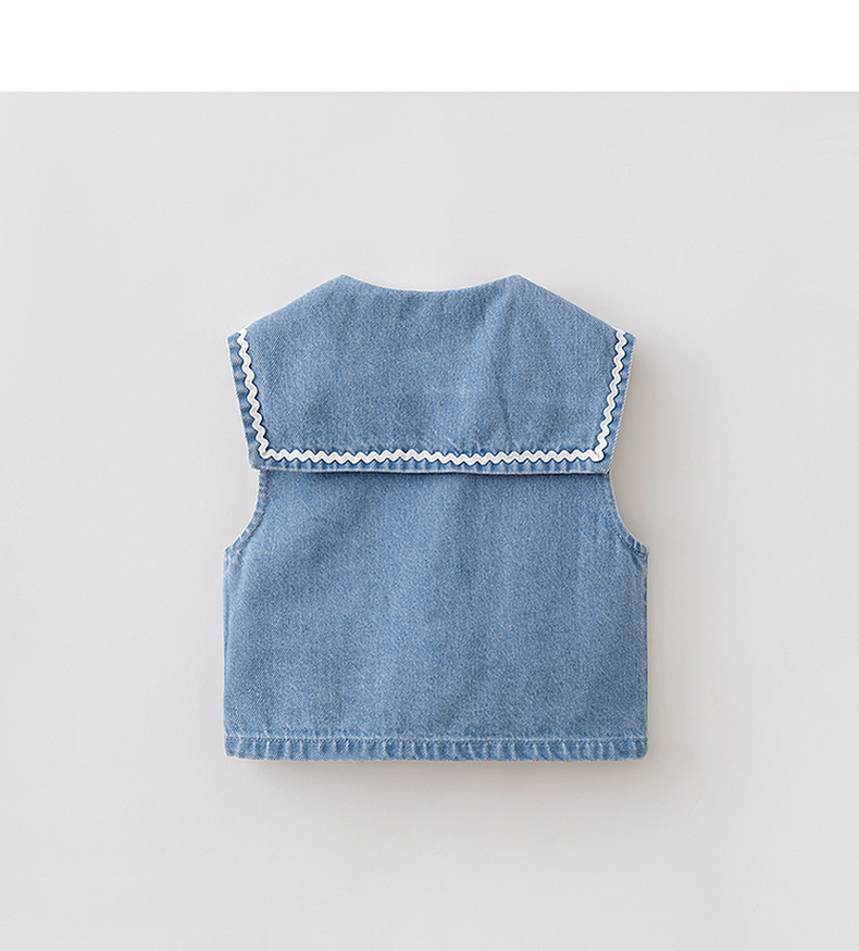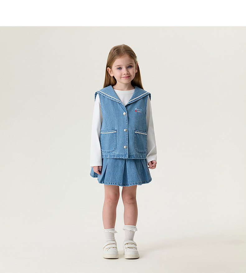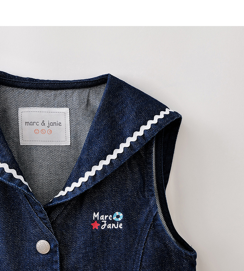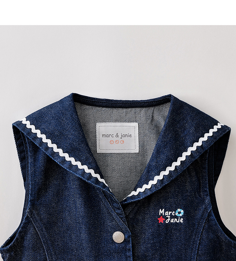 马克珍妮波浪海军领女童纯棉牛仔马甲2026年春装新款560139