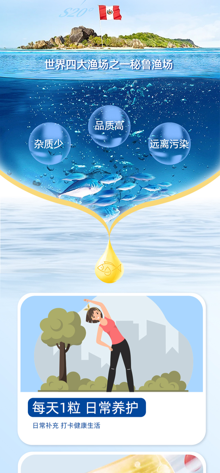 人福普克铂臻牌鱼油软胶囊 99.1%高含量秘鲁进口1g*30粒