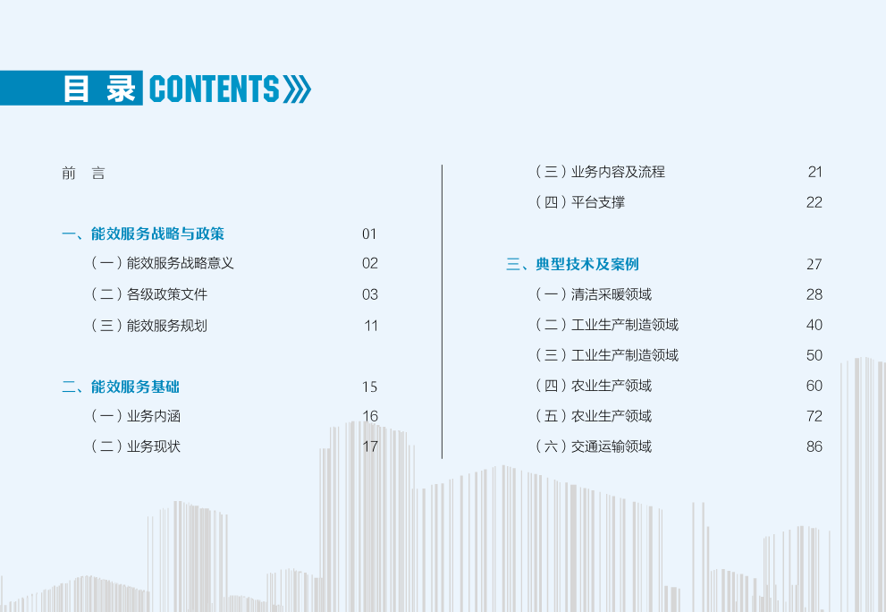 本书包括能效服务战略与政策、能效服务基础、典型技术及案例、能效项目商业模式及实施流程、常用分析工具与方法五章内容。