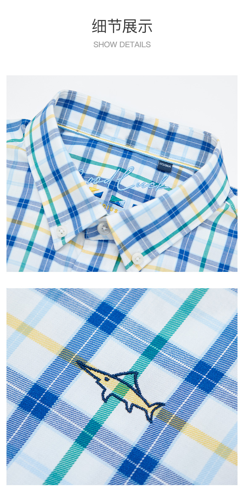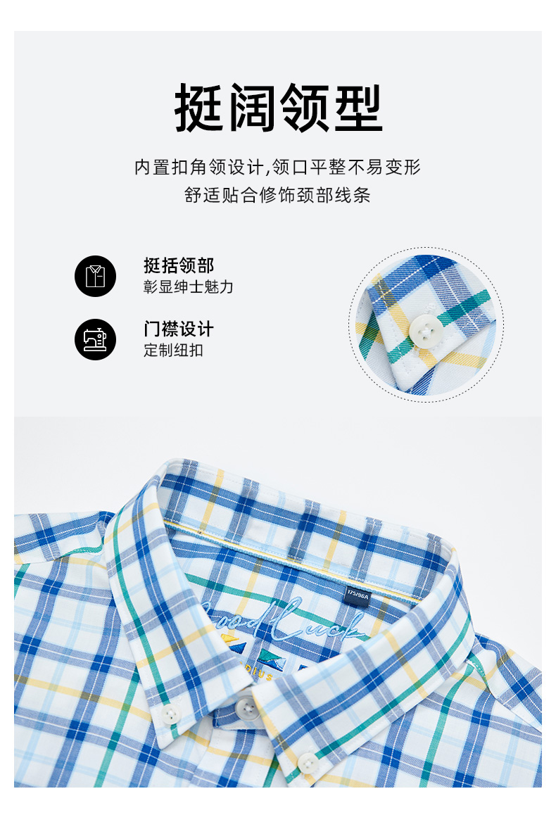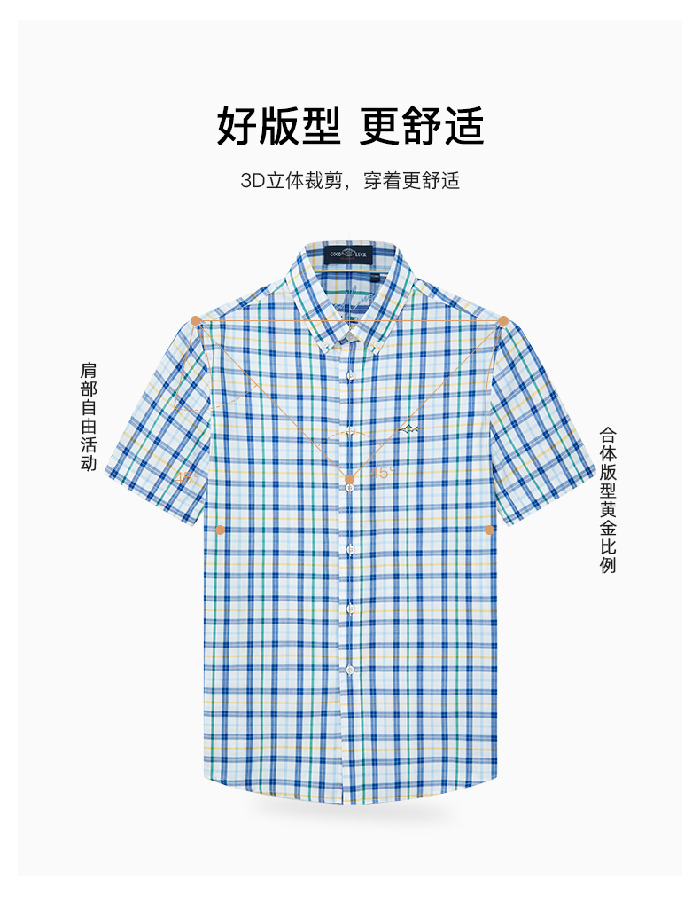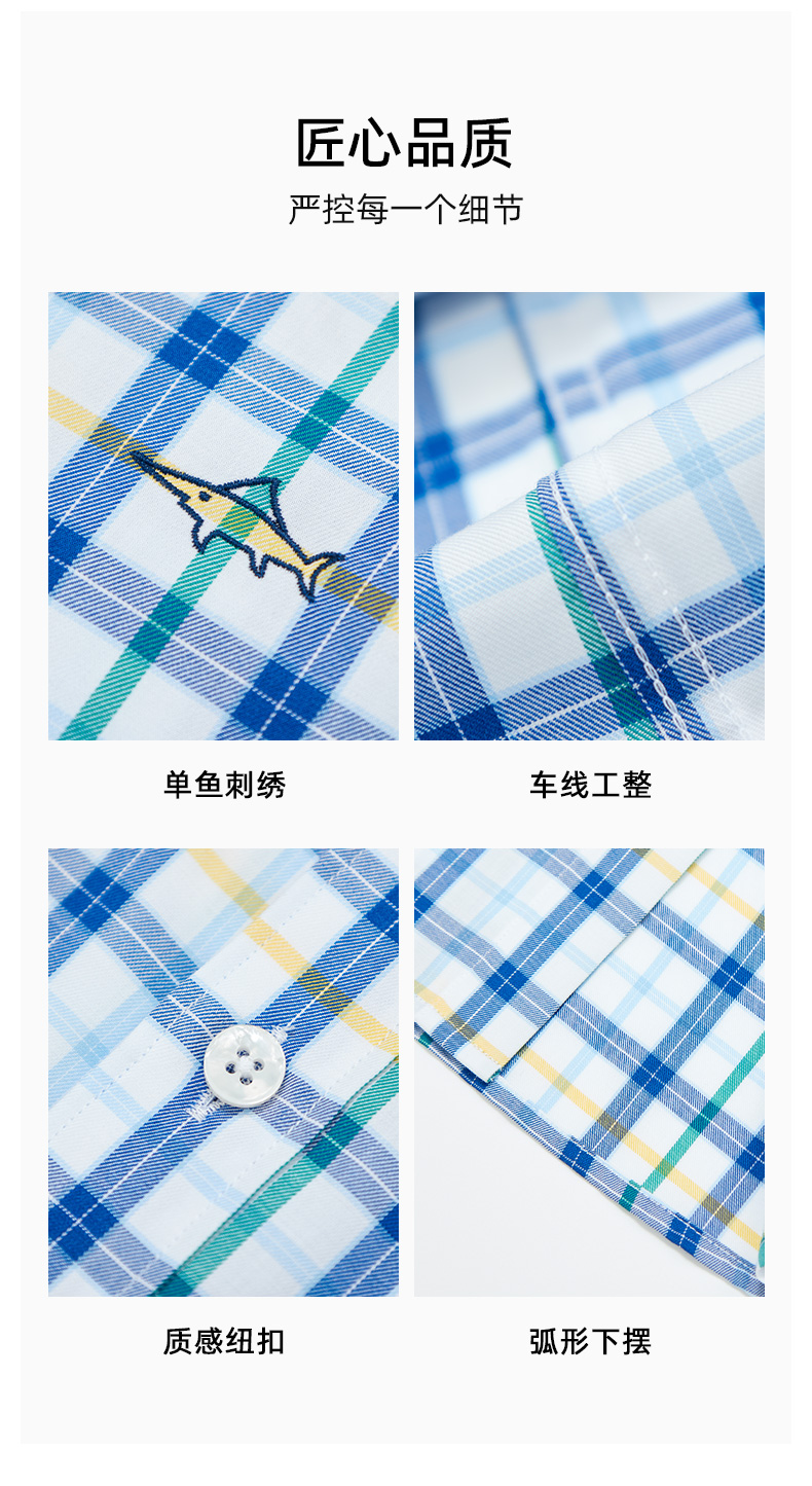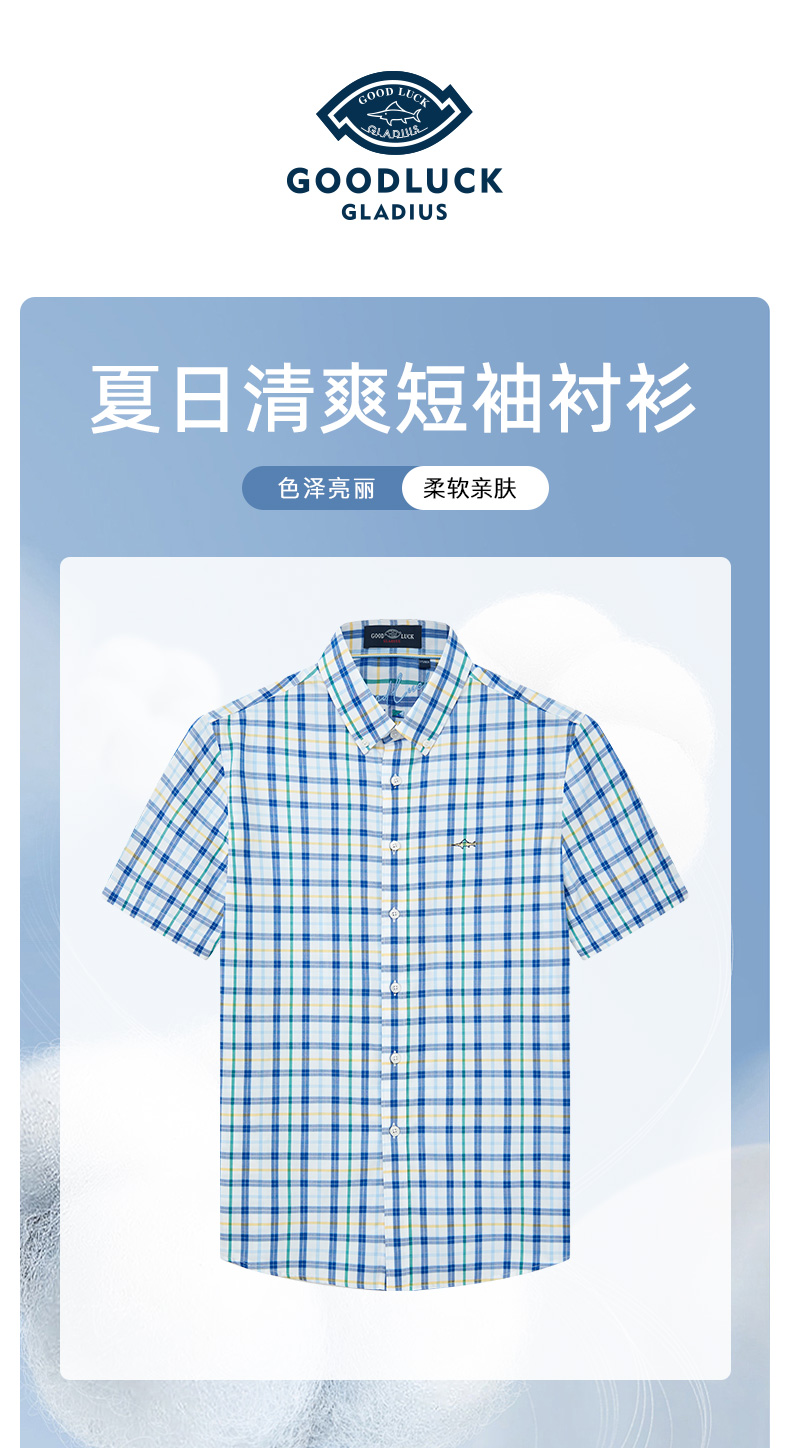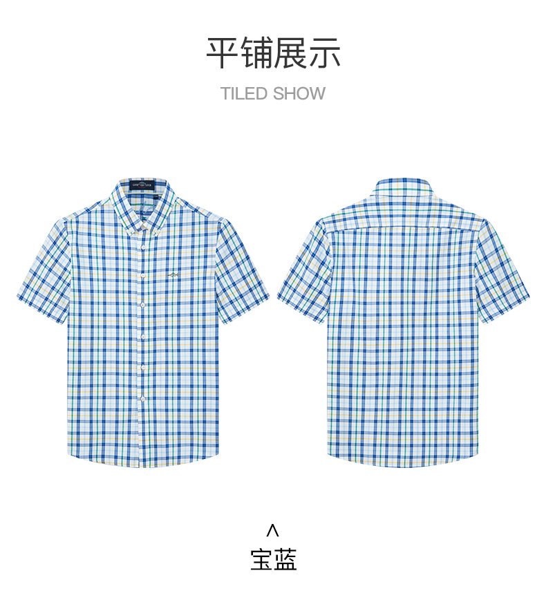 德鲨鲨鱼男装短袖格子衬衫2026夏季新款休闲舒适上衣男打底衬衣服