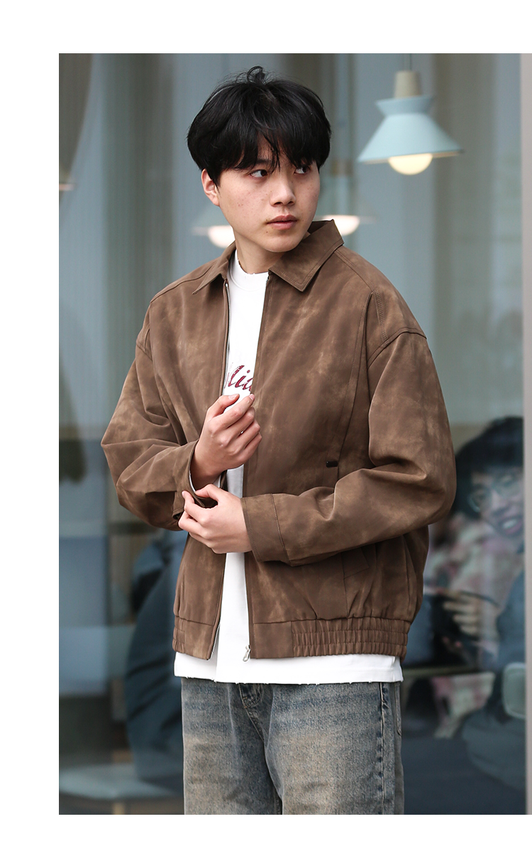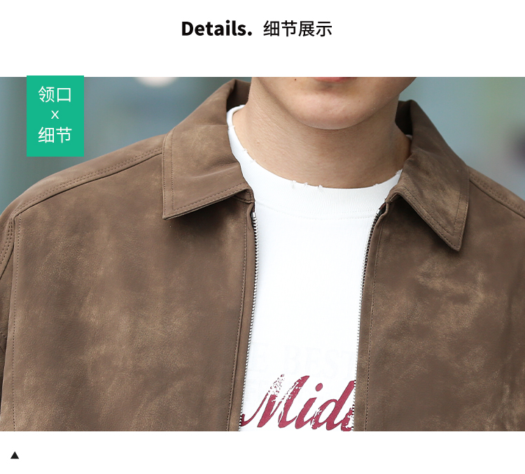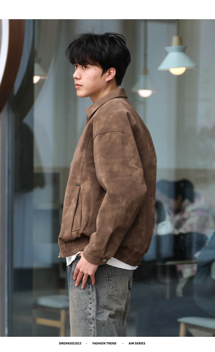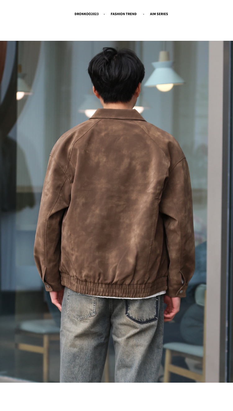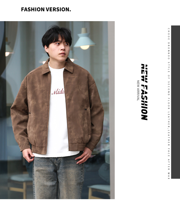 DRONKOO 2025 翻领拉链款斜插袋金属装饰标半松紧下摆中厚皮衣