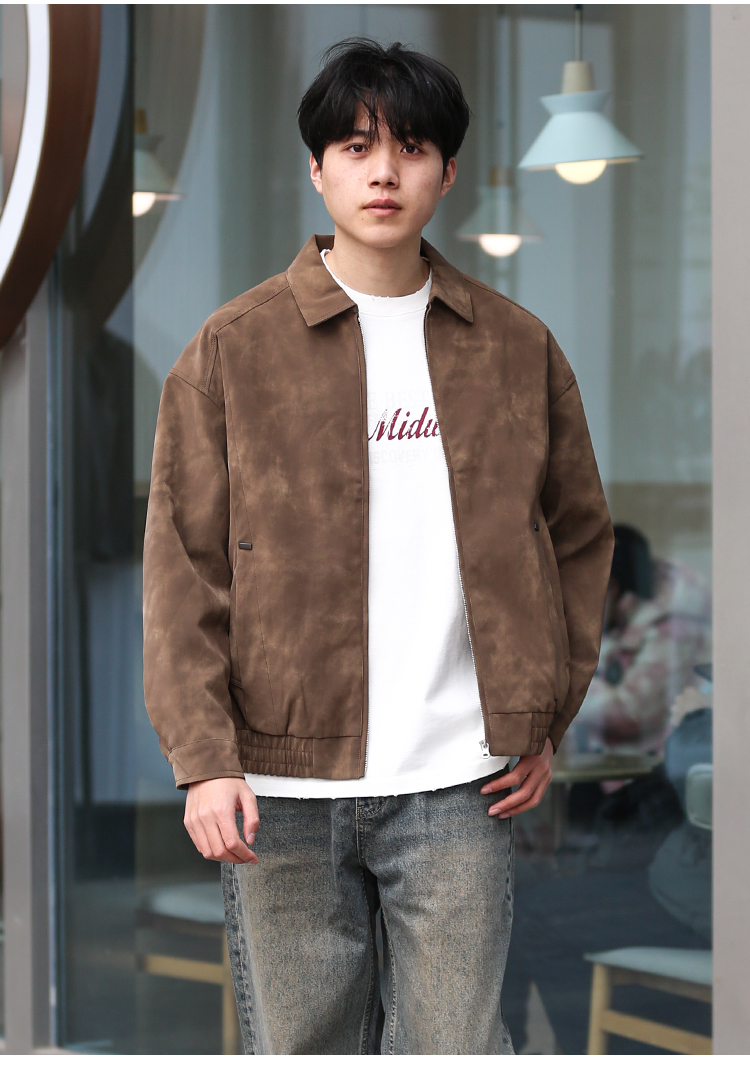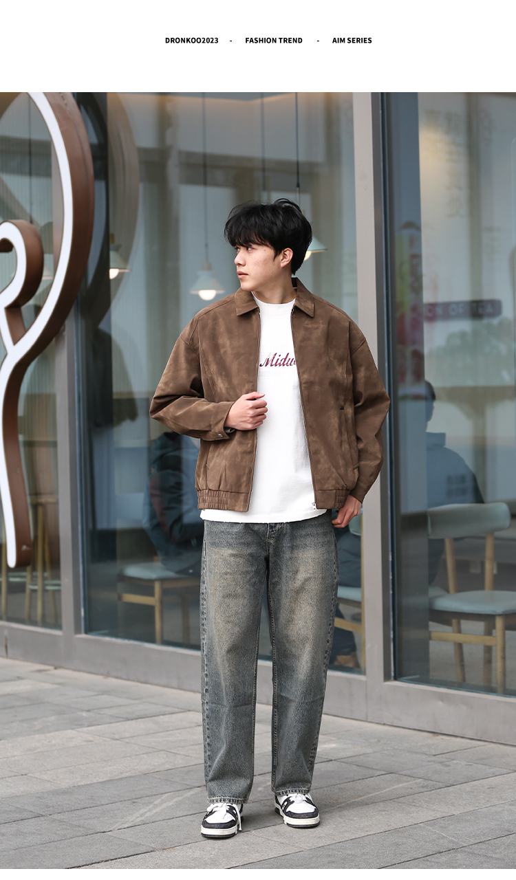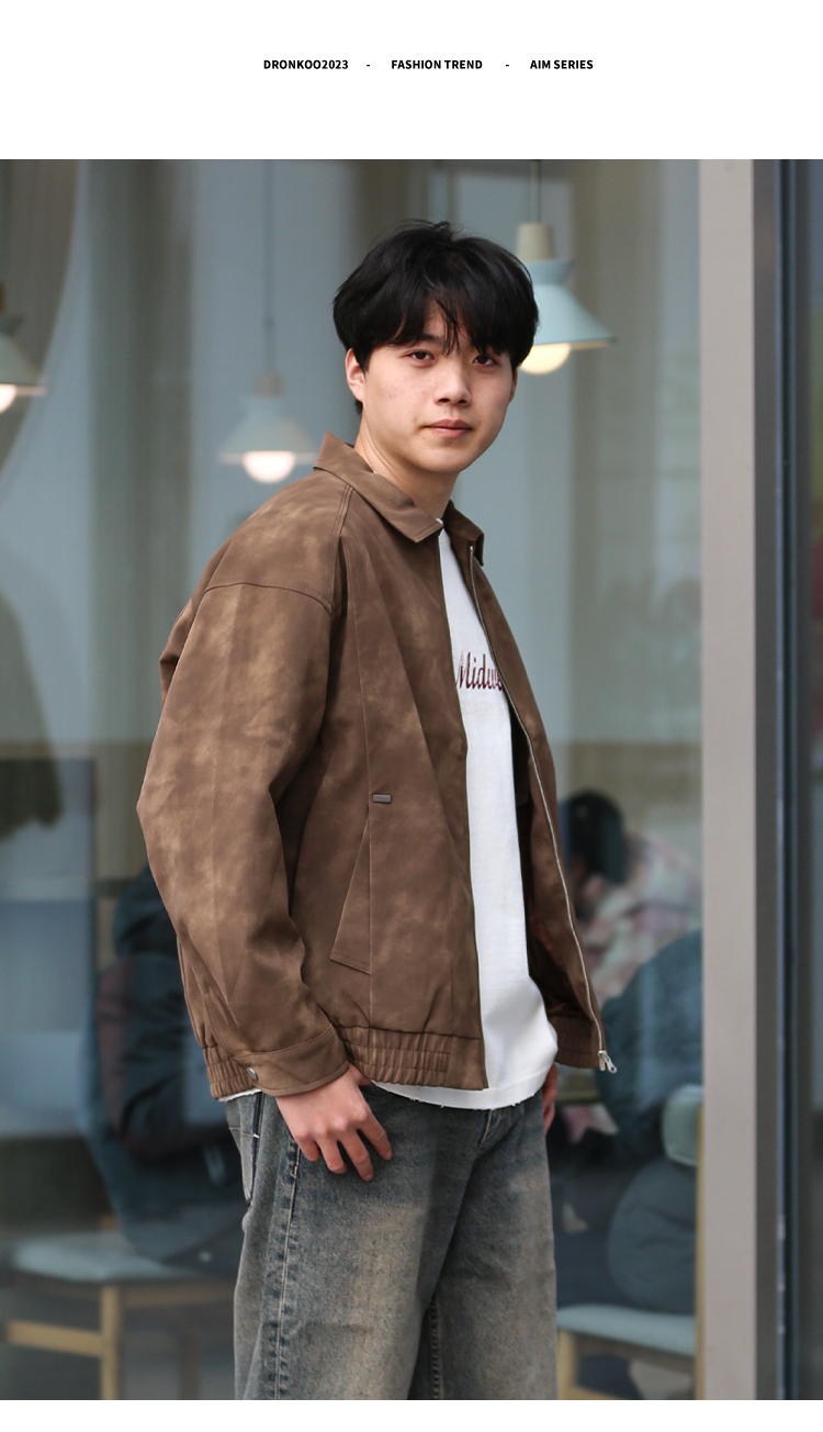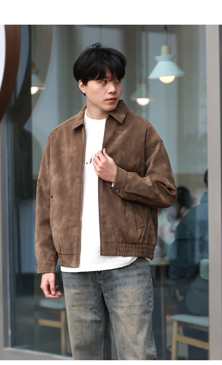 DRONKOO 2025 翻领拉链款斜插袋金属装饰标半松紧下摆中厚皮衣
