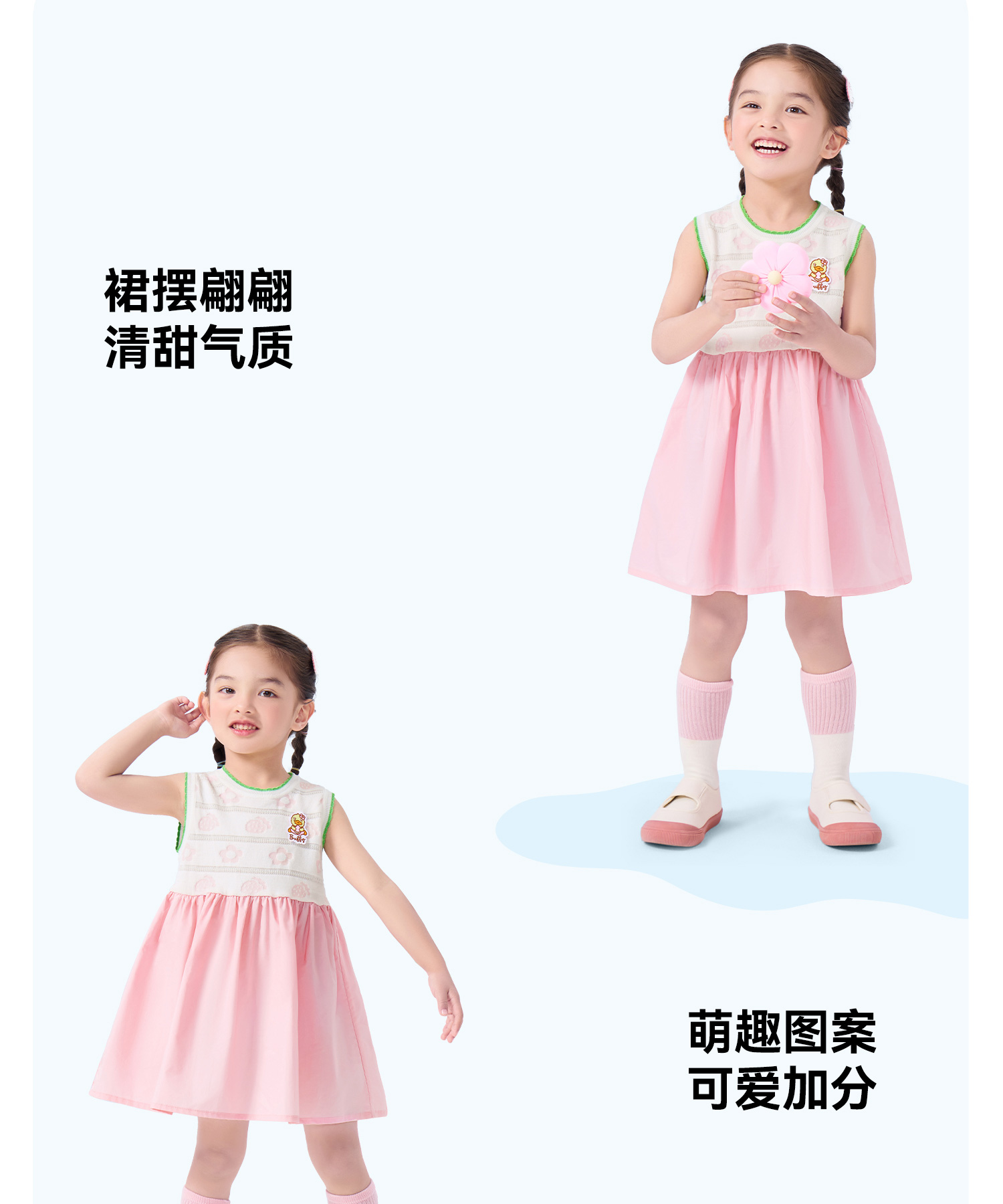 bduck小黄鸭童装夏季女童连衣裙宝宝无袖背心裙子夏季公主裙90-130 FF2680007