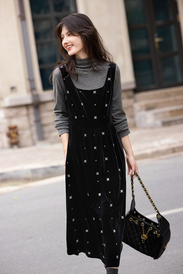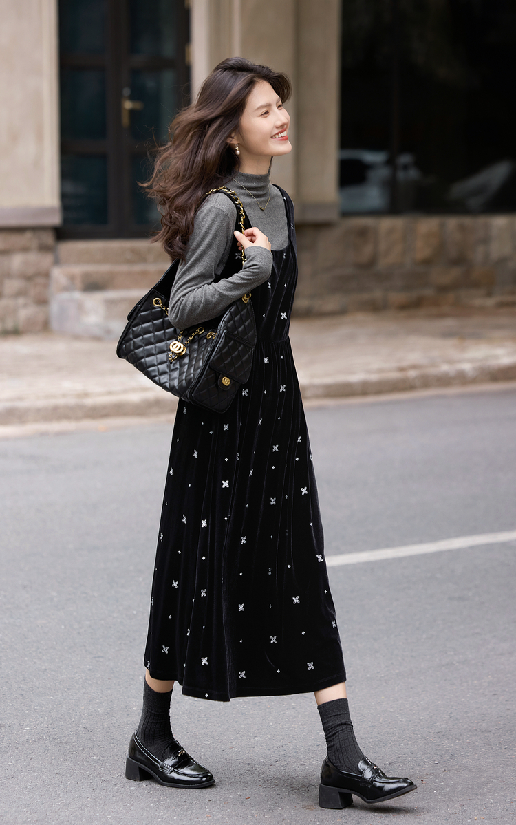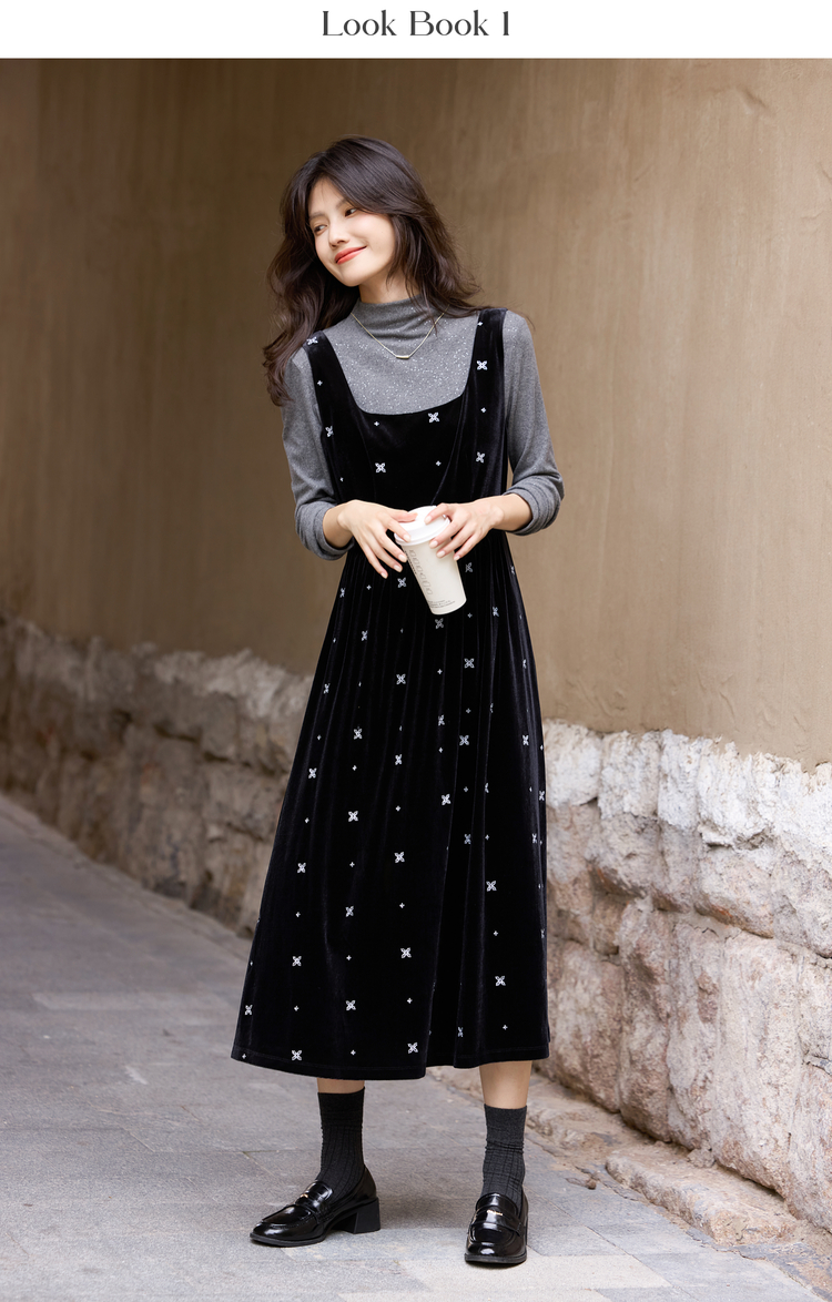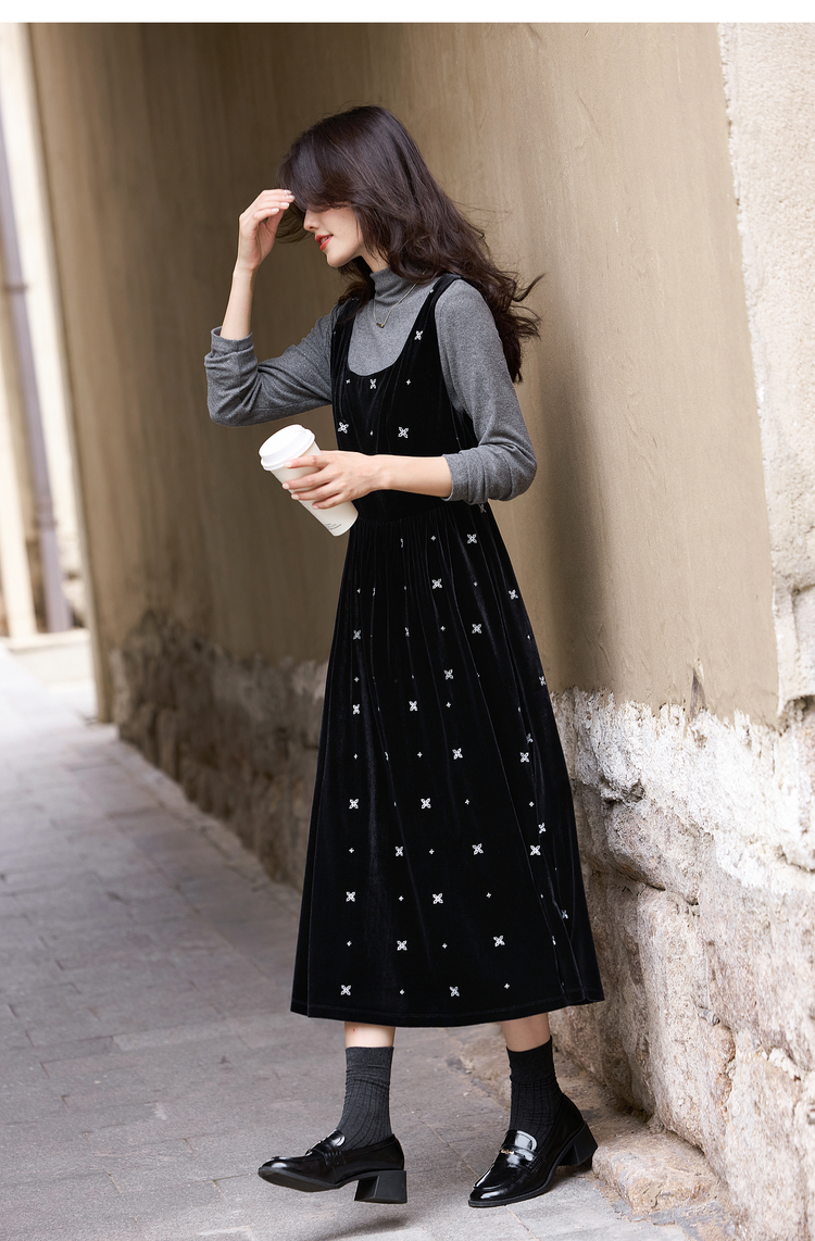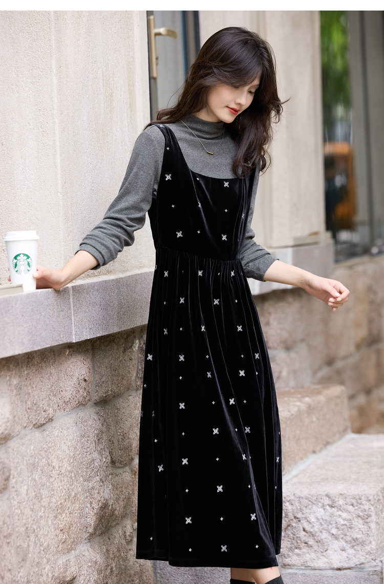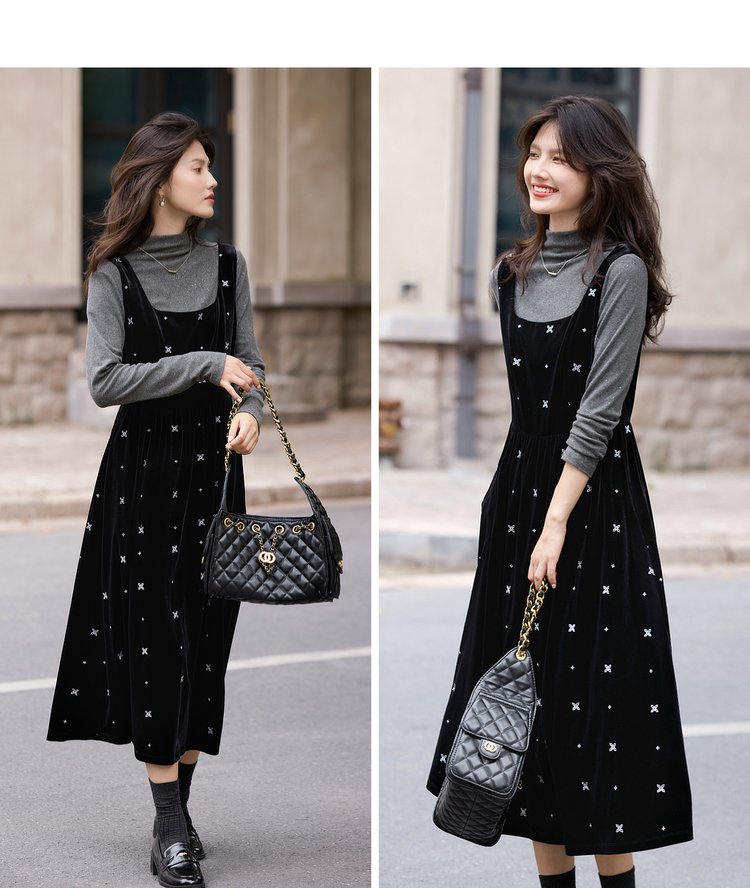 【年终特卖】熙世界千金风miu系穿搭背心裙套装女秋冬针织衫丝绒连衣裙两件套