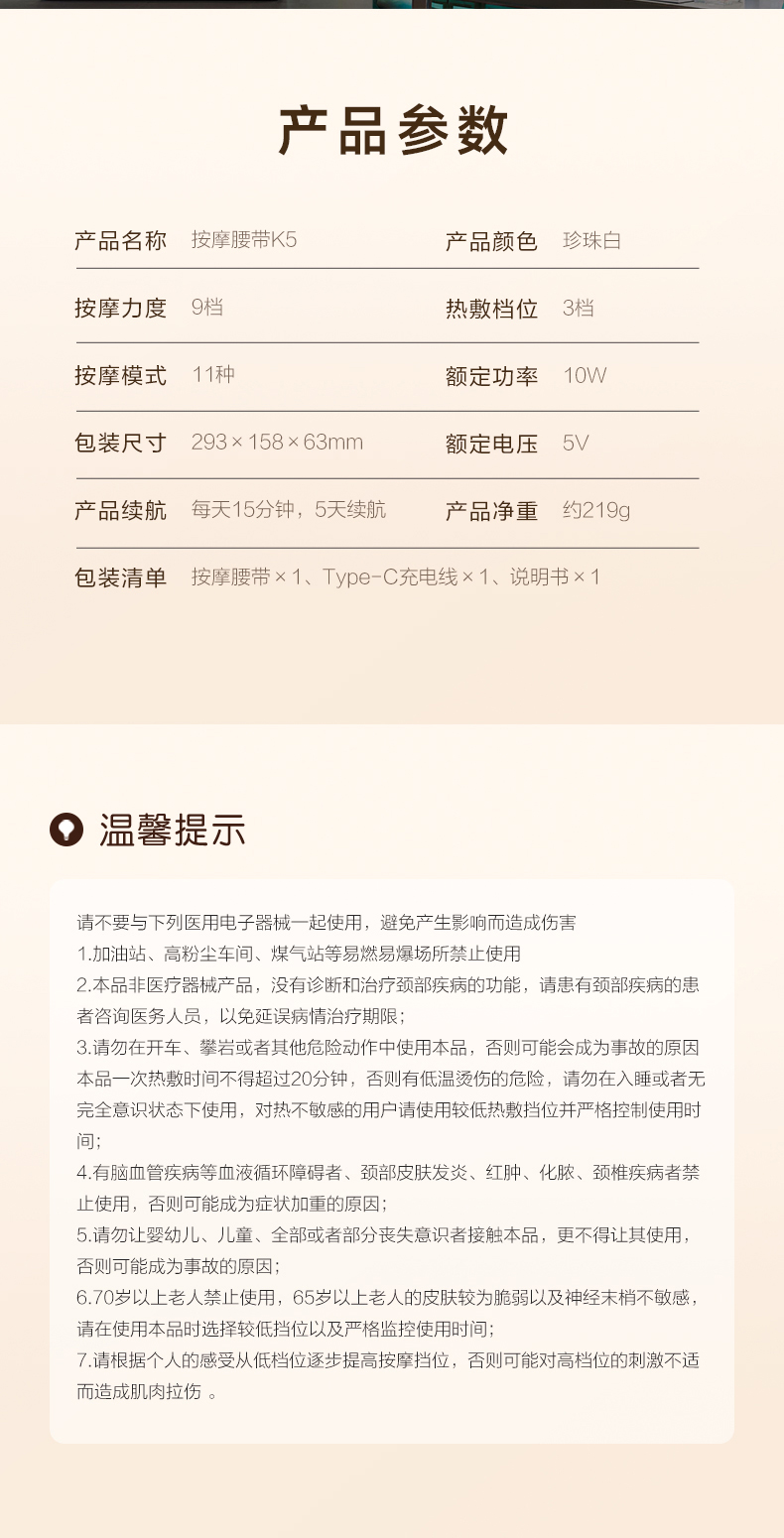 SKG腰部按摩仪 K5系列2代 珍珠白