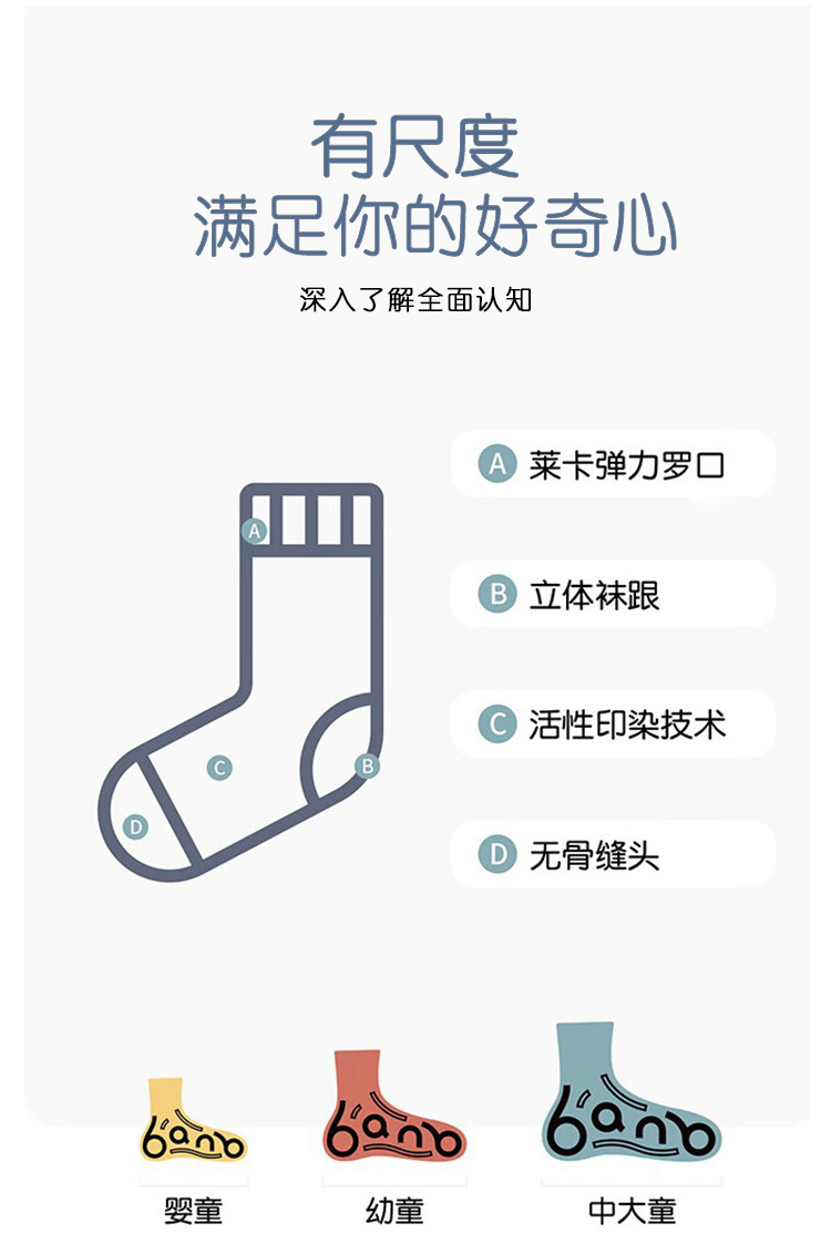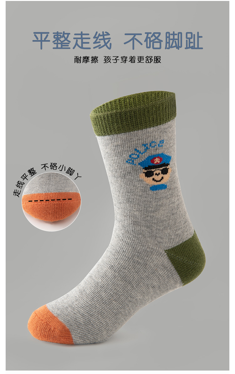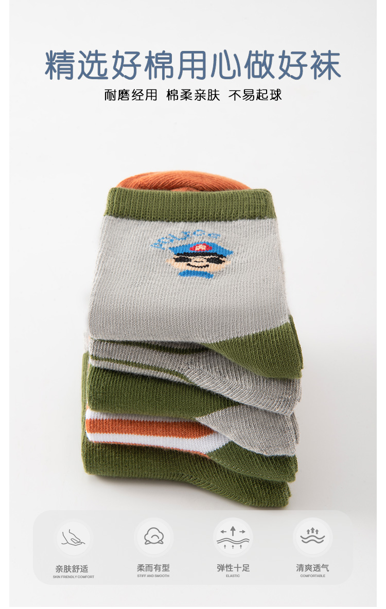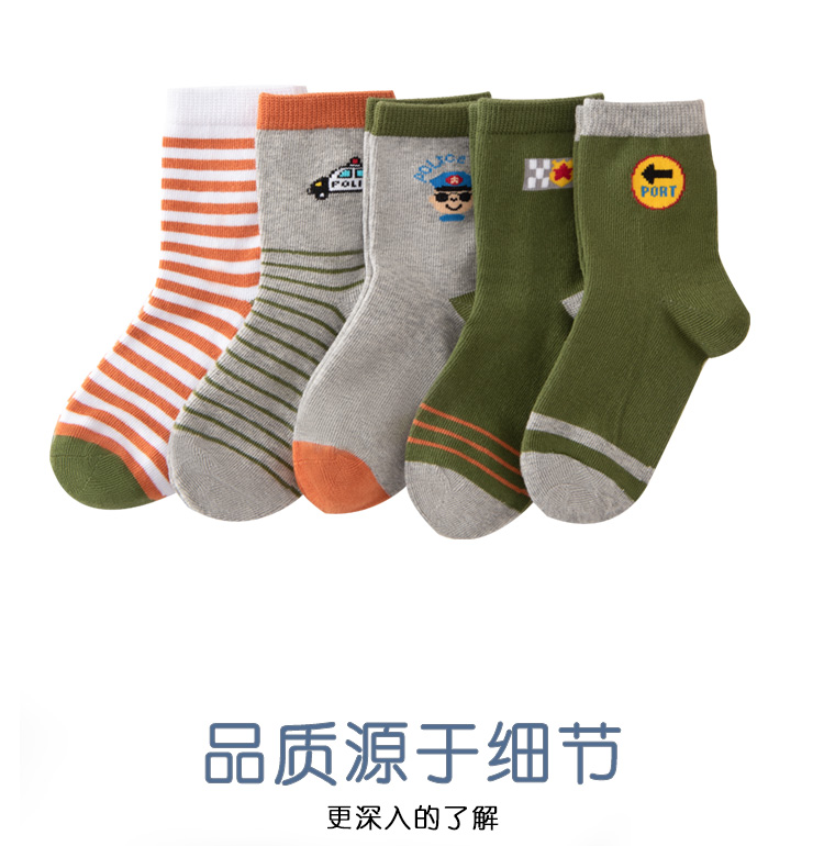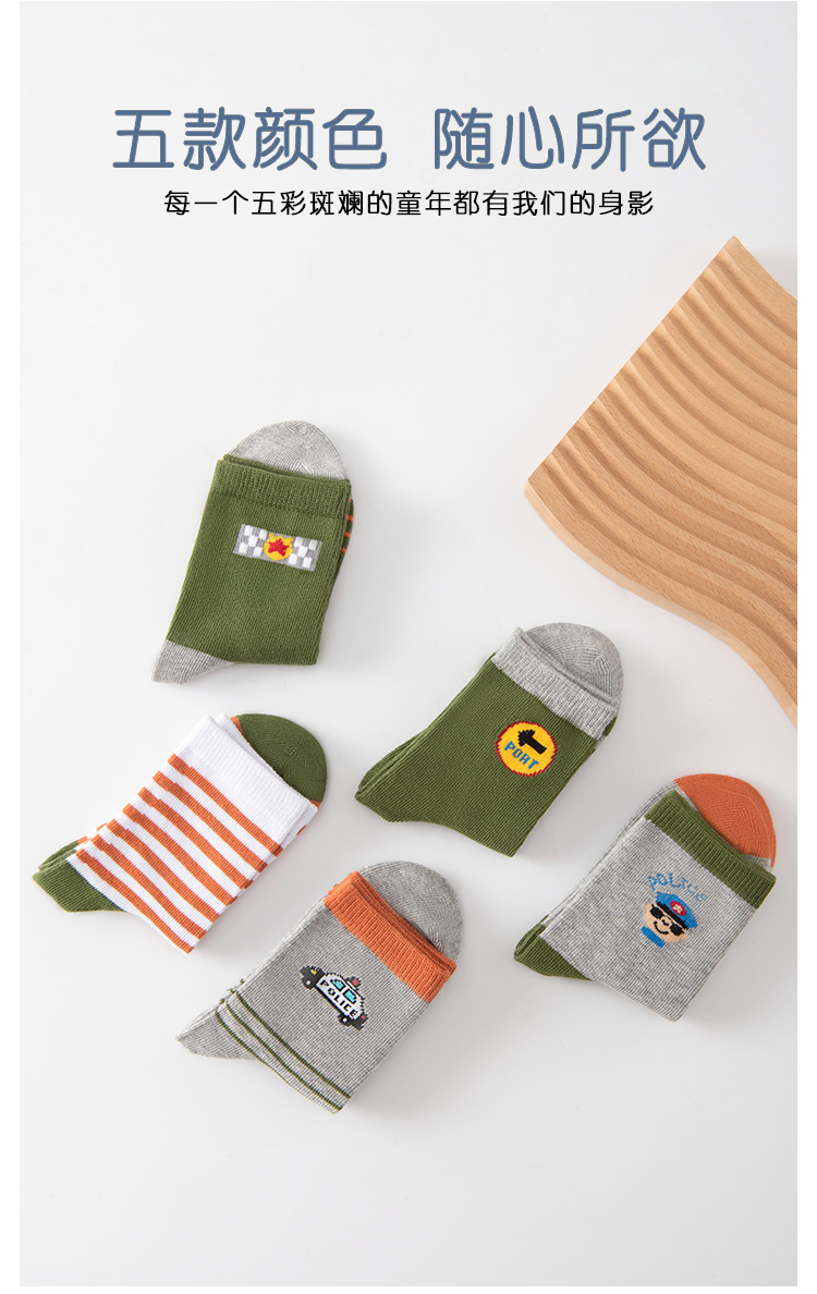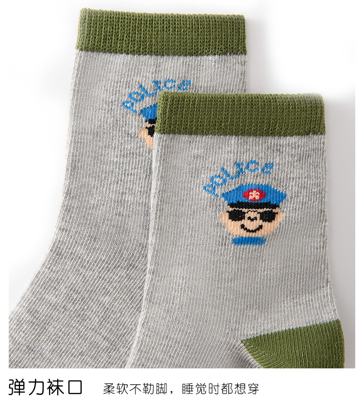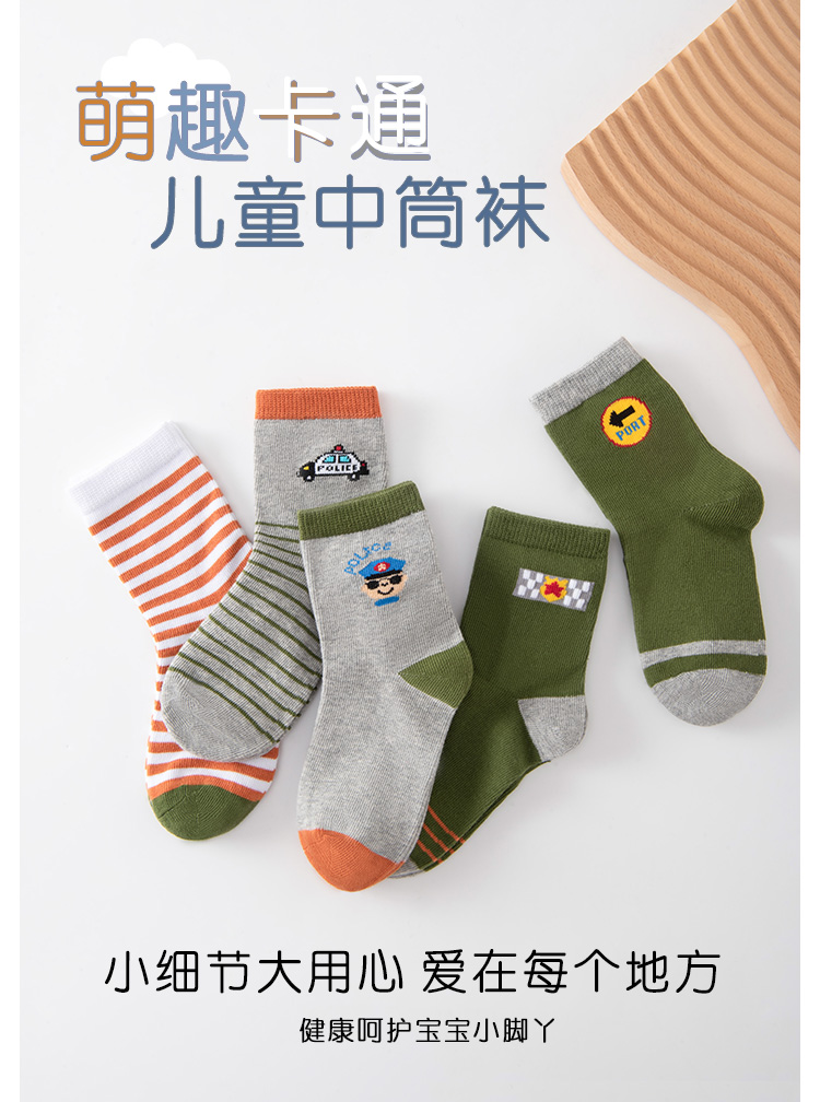 【五双装】洁丽雅中筒袜儿童袜可爱卡通印花舒适亲肤透气小孩棉袜