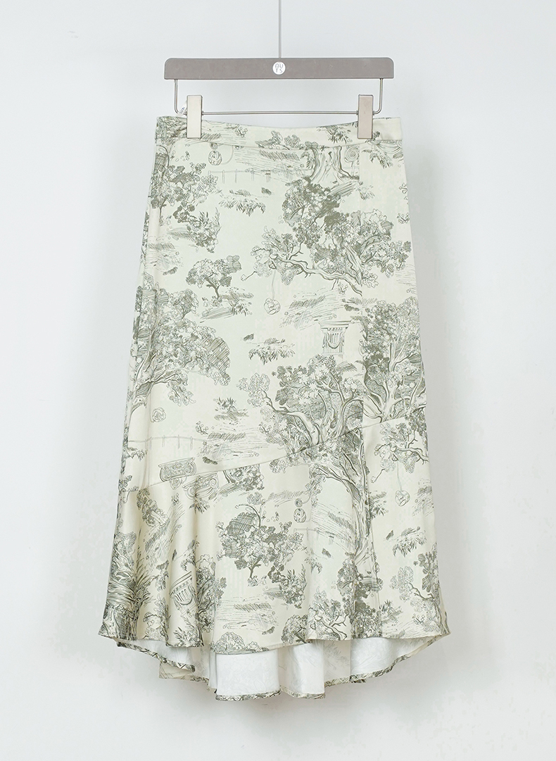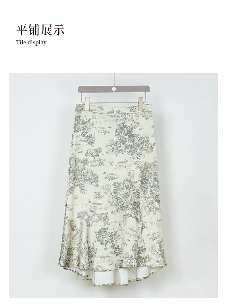 NUTS商场同款春秋季中国风水墨画高腰气质时尚半身长裙女333061207