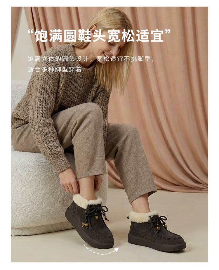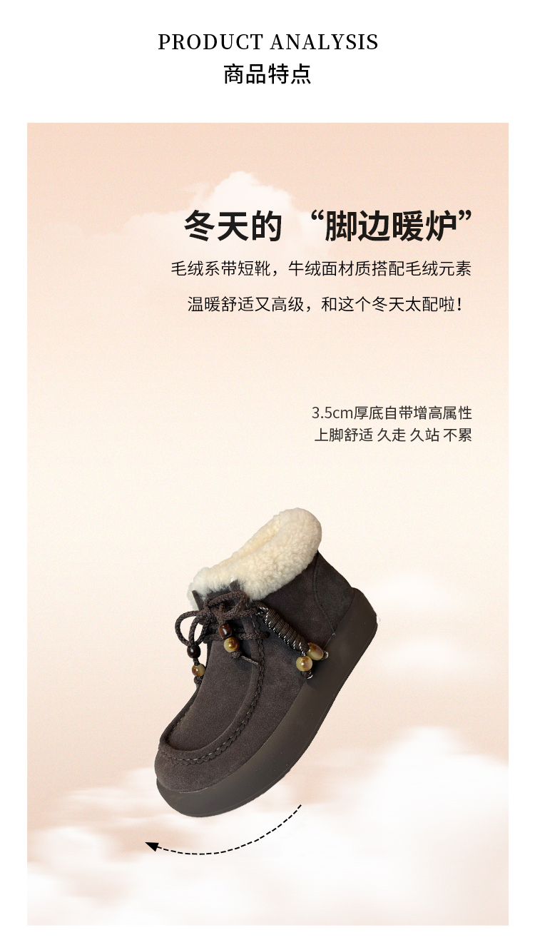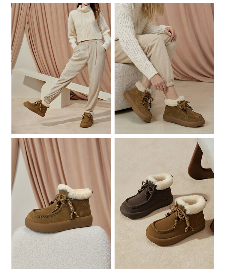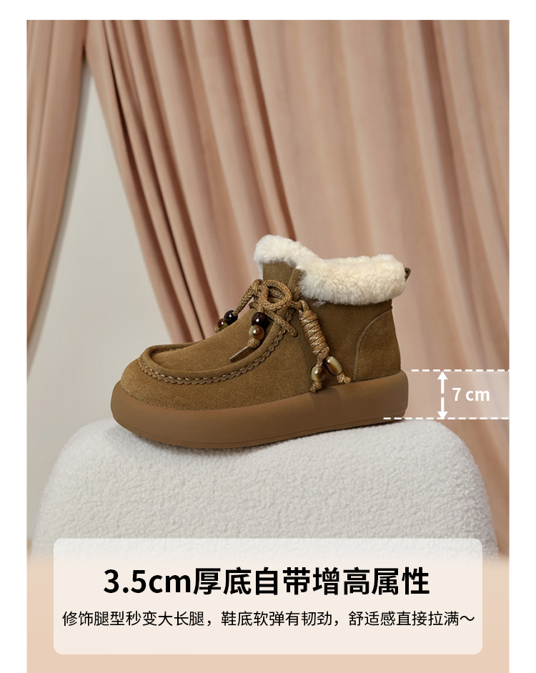 西村名物2025年冬季新款厚底防滑流苏厚绒内里舒适保暖毛毛鞋雪地靴T25DS40091