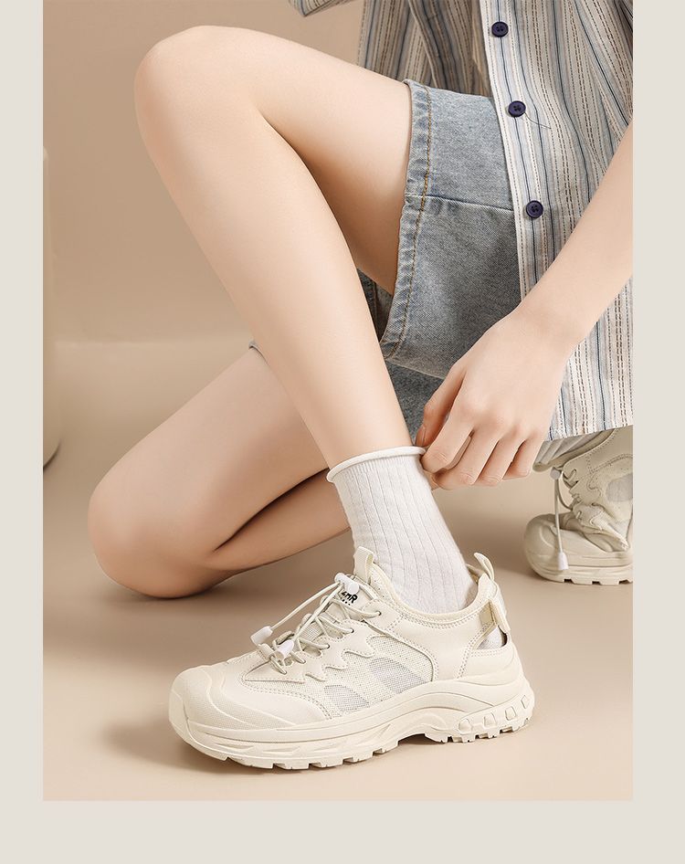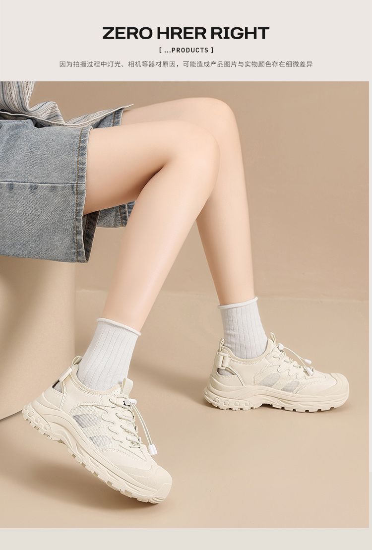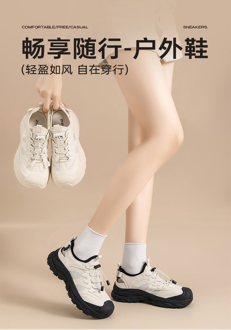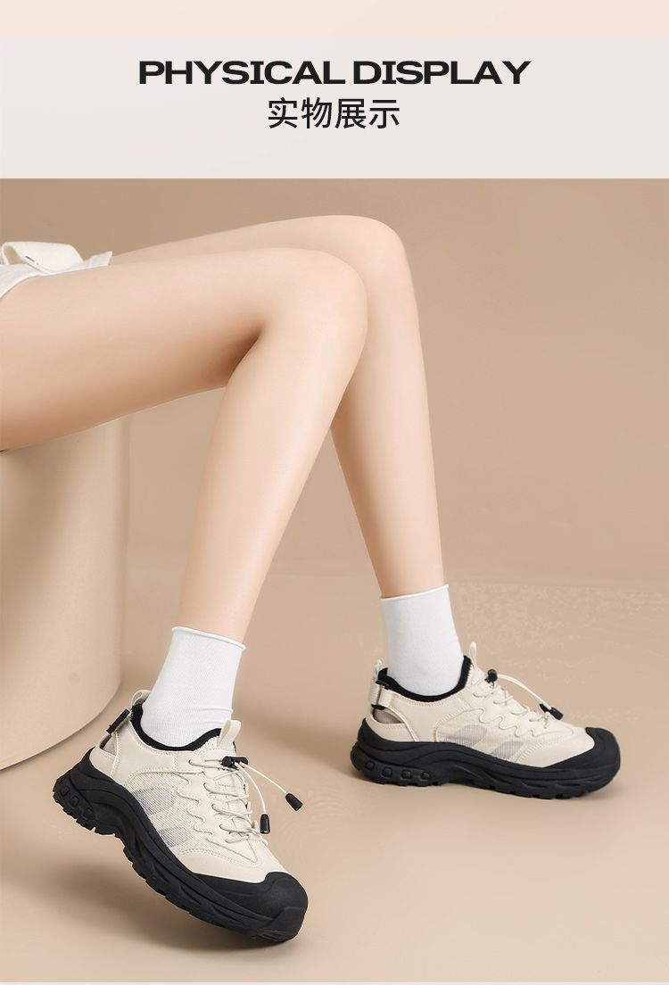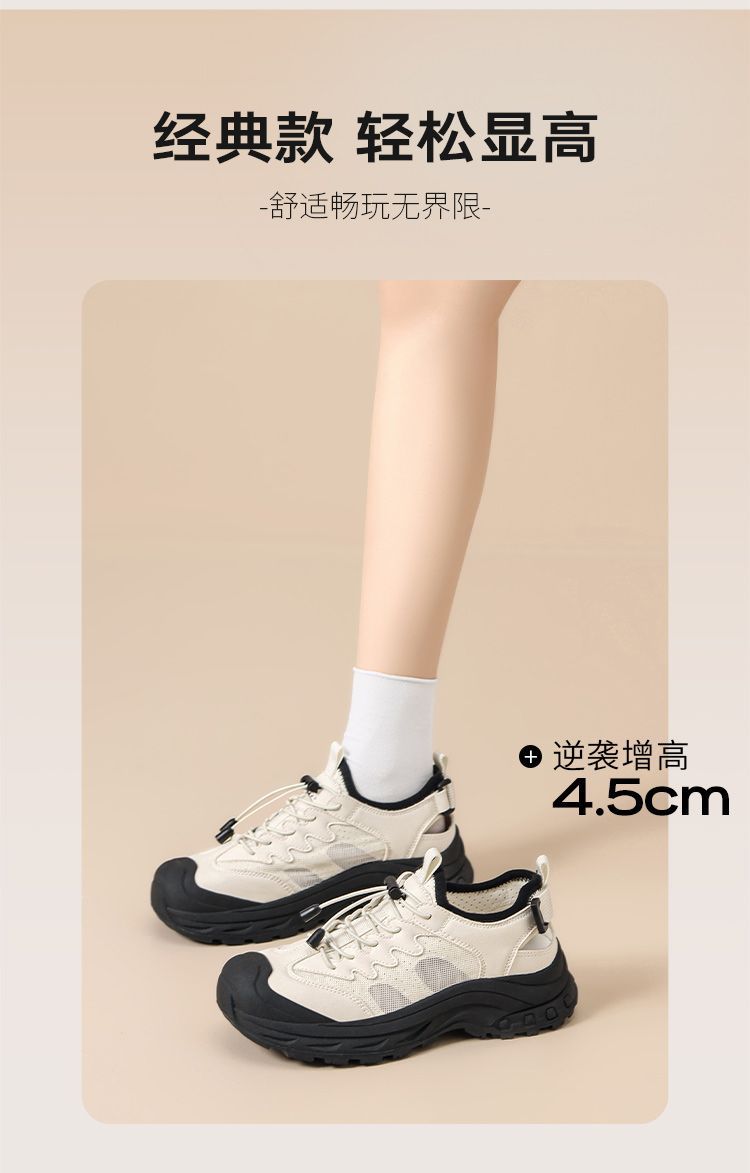 ZHR厚底内增高运动鞋女2025夏季镂空透气溯溪鞋软底户外登山鞋女