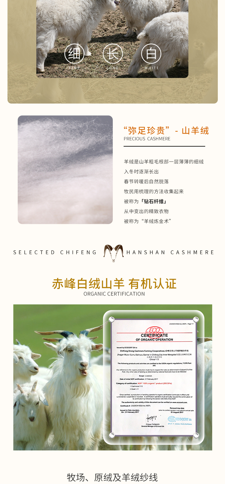 东黎羊绒是赤峰东荣集团自主品牌,自有牧场/羊绒制品全产业链优势,实现了羊绒从“牧场”到“商场”的华丽转变。