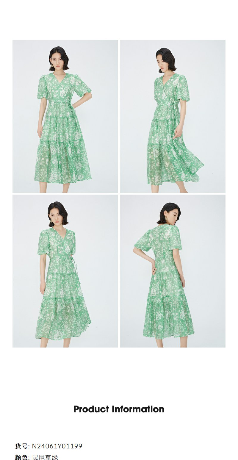 NEELLY2024新款收腰夏季短袖法式高端气质连衣裙N24061Y01198