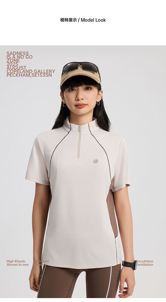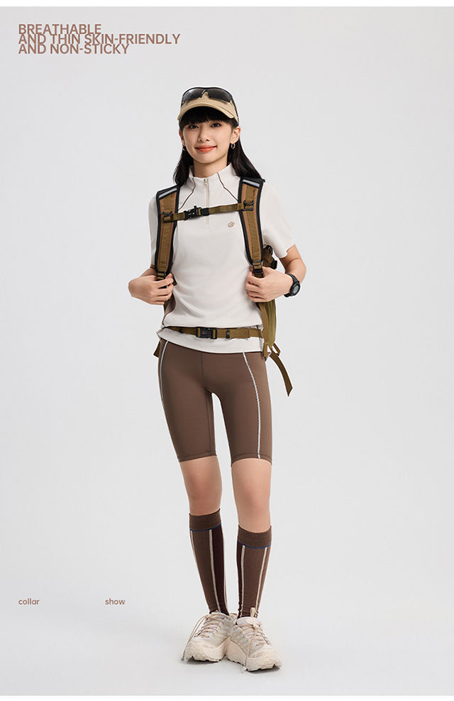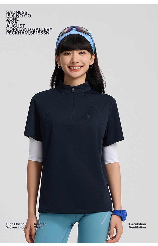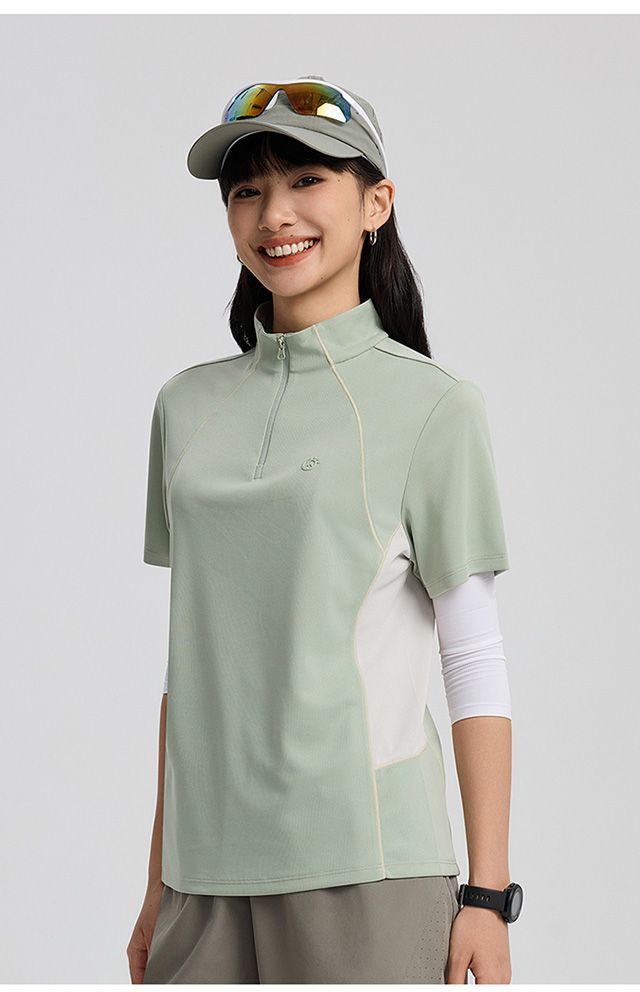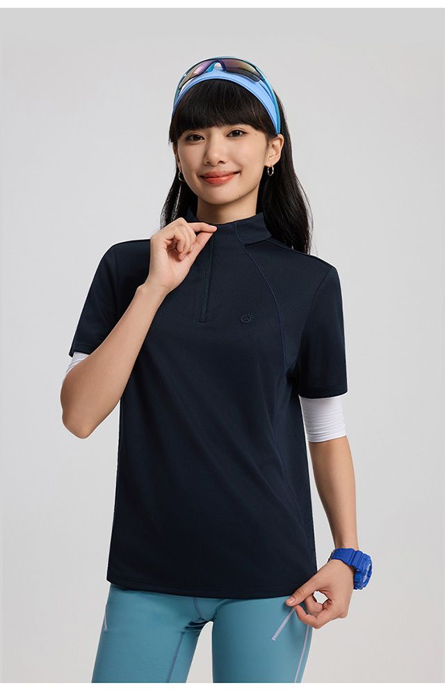 探拓运动T恤女夏季速透气快干弹力训练衣户外登山跑步健身立领短T