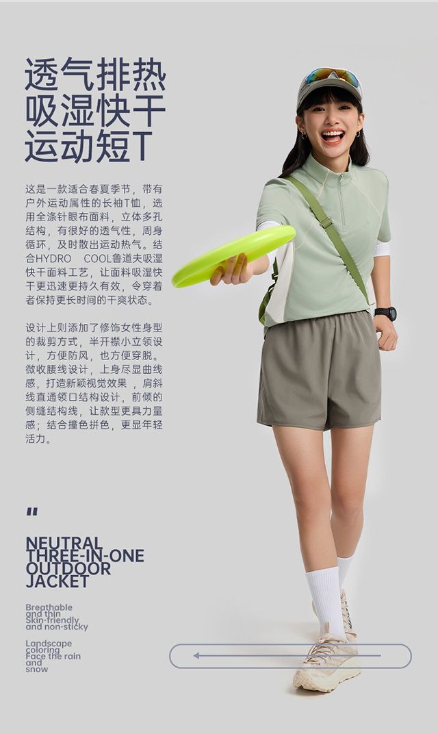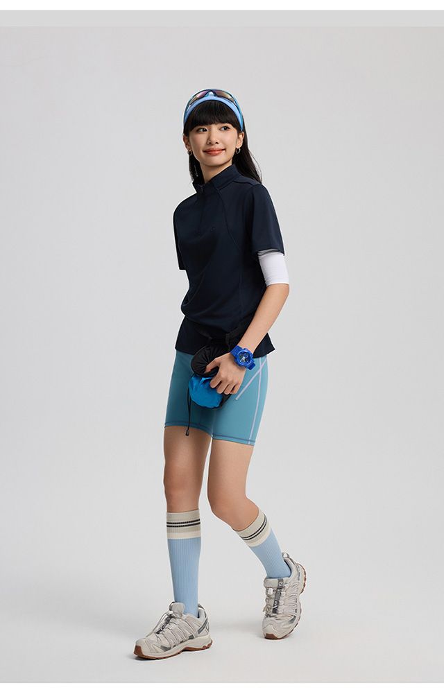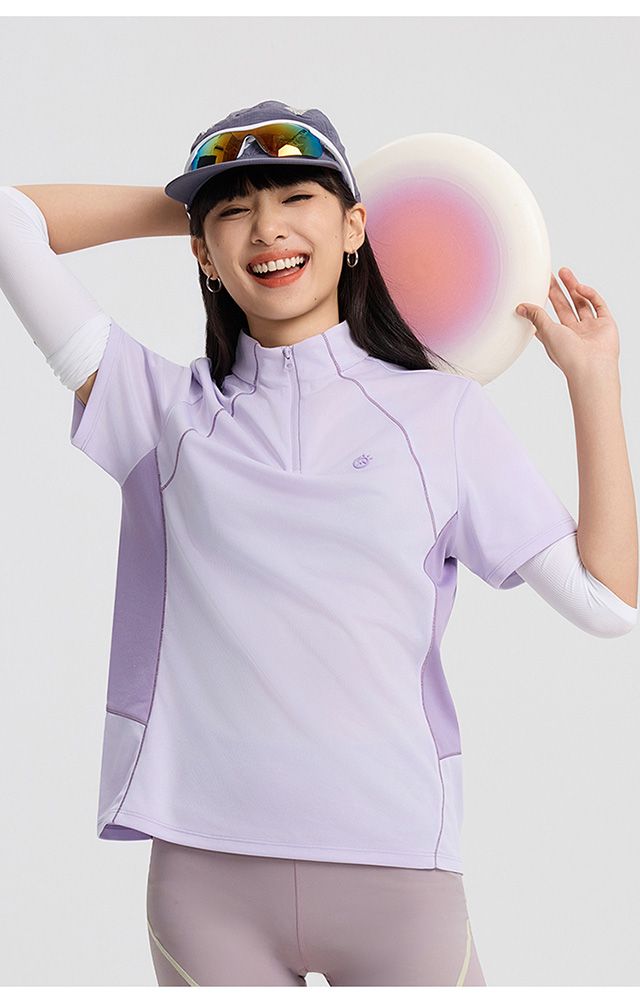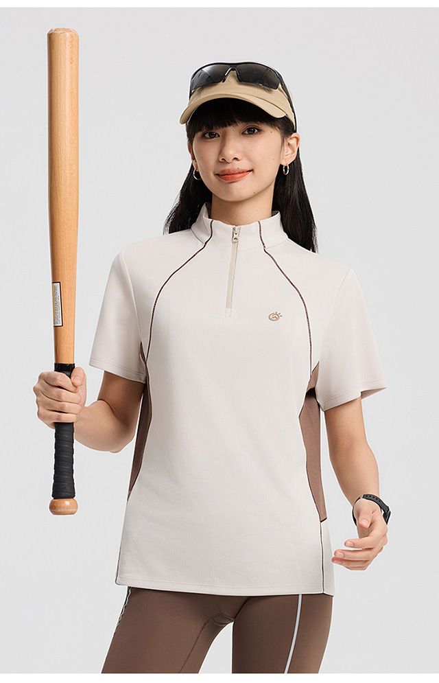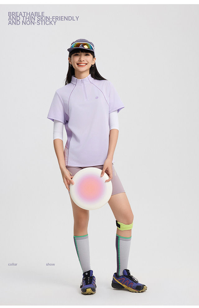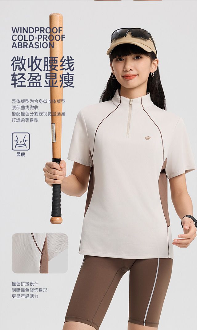 探拓运动T恤女夏季速透气快干弹力训练衣户外登山跑步健身立领短T