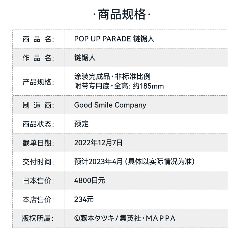 【GSC现货】POP UP PARADE 链锯人 手办模玩