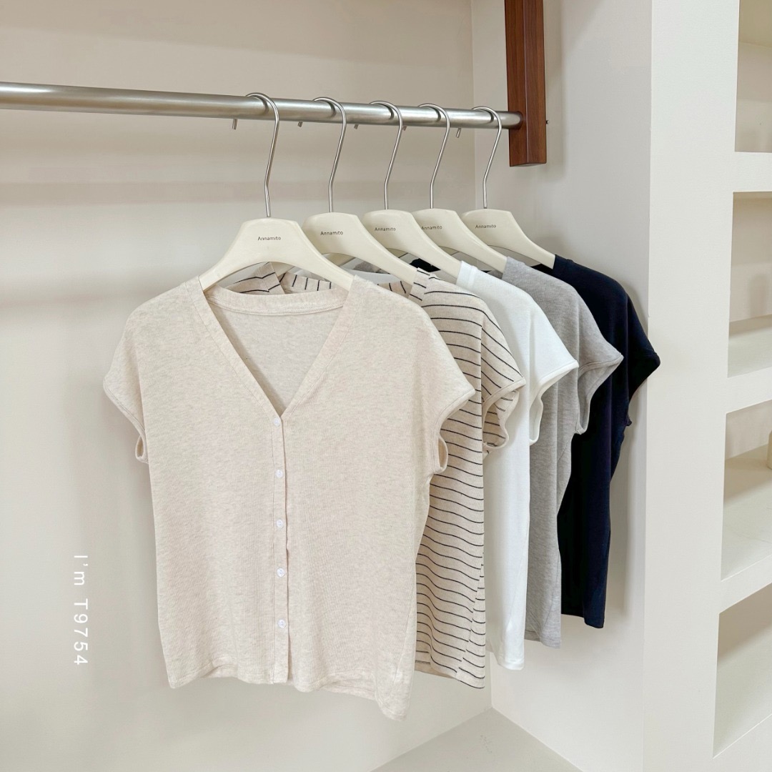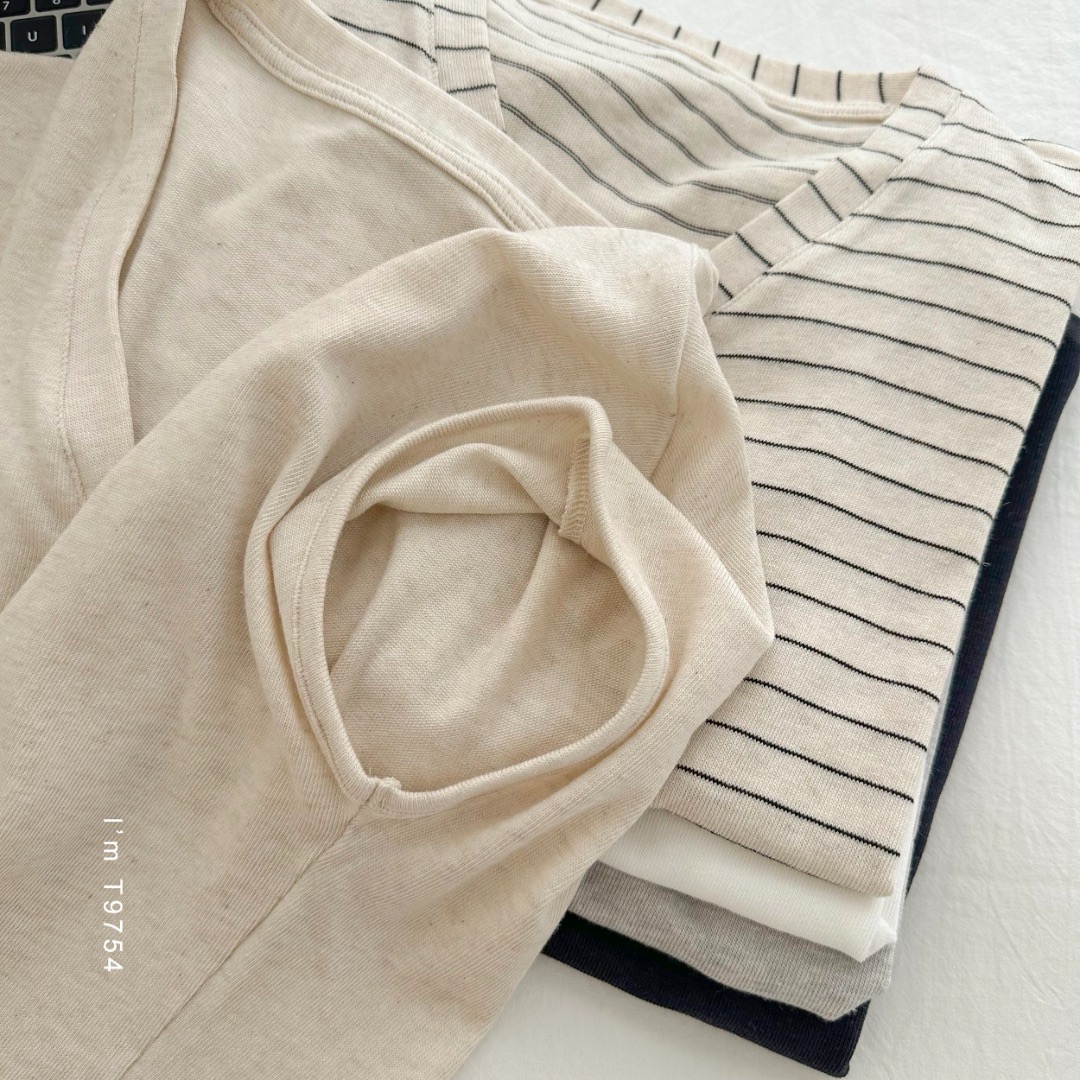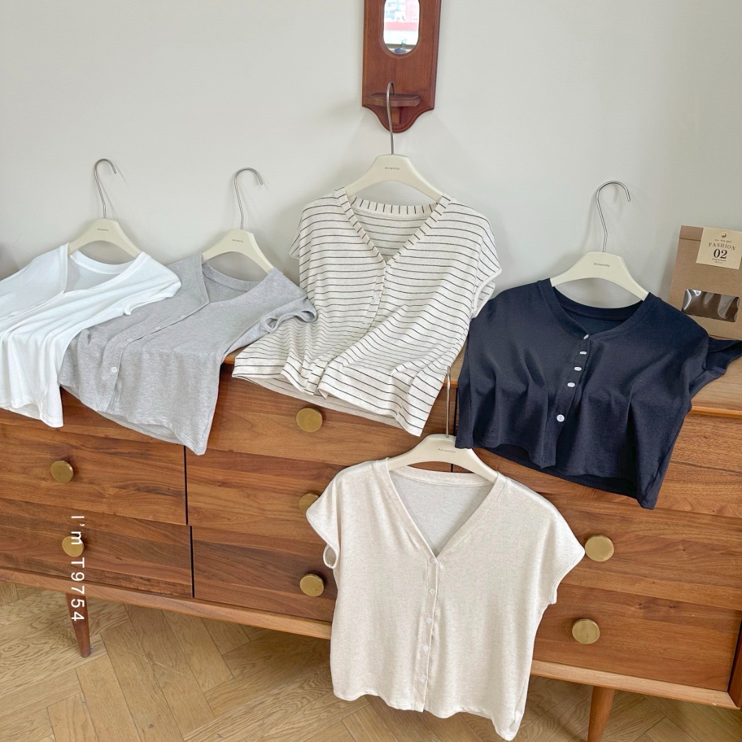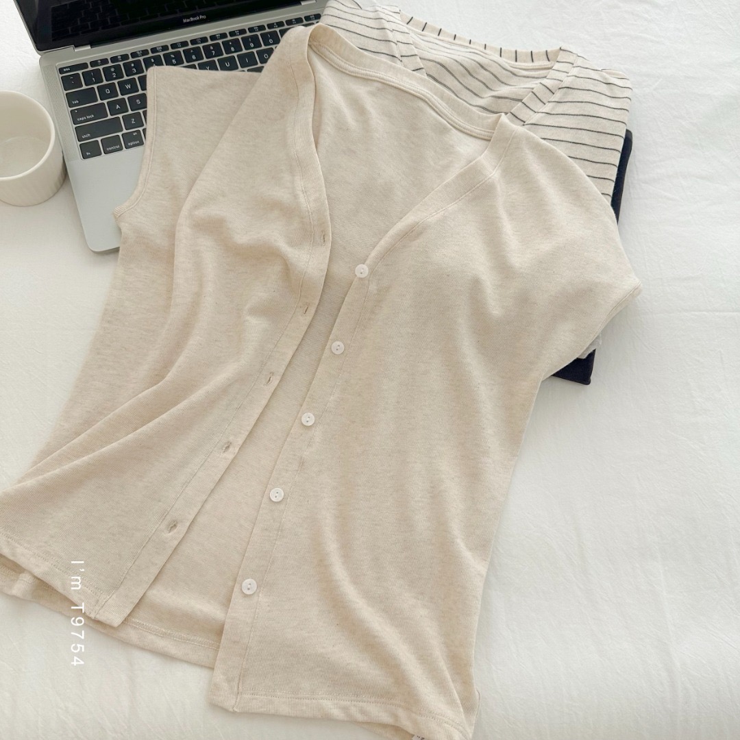 老米优品🎈 3-5天!超值!天丝+亚麻+棉《针织亚麻V领纽扣T》巨凉快,透气,品质款~ T250516A