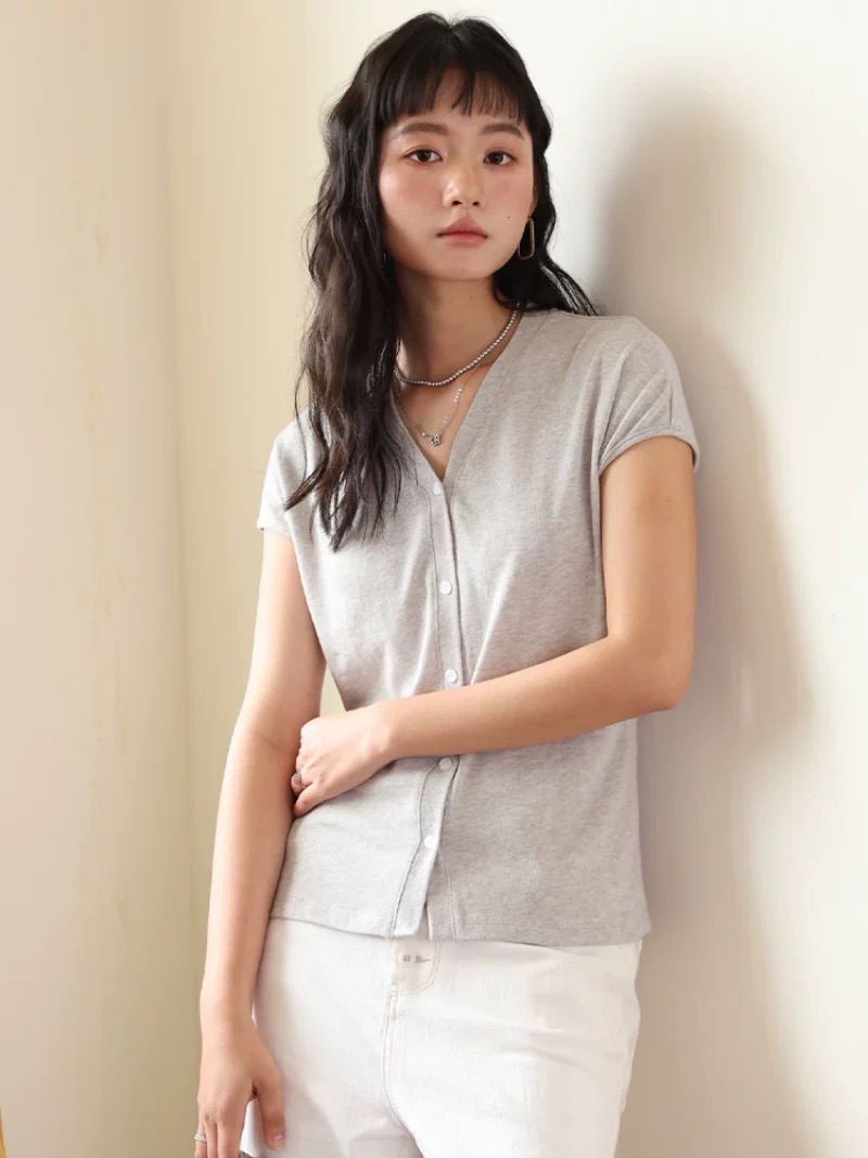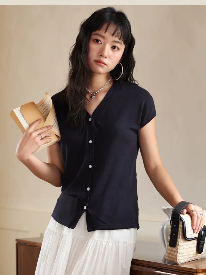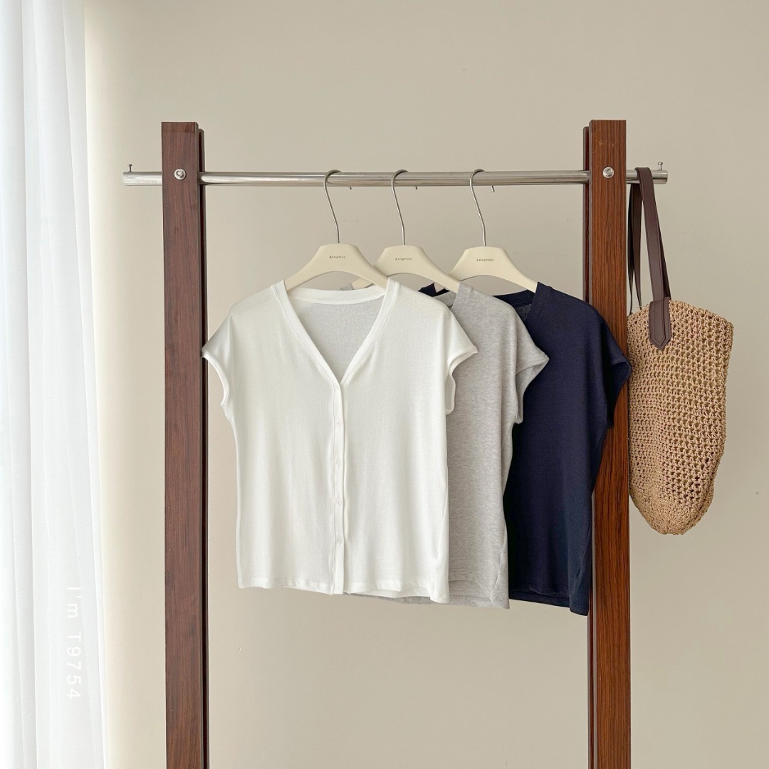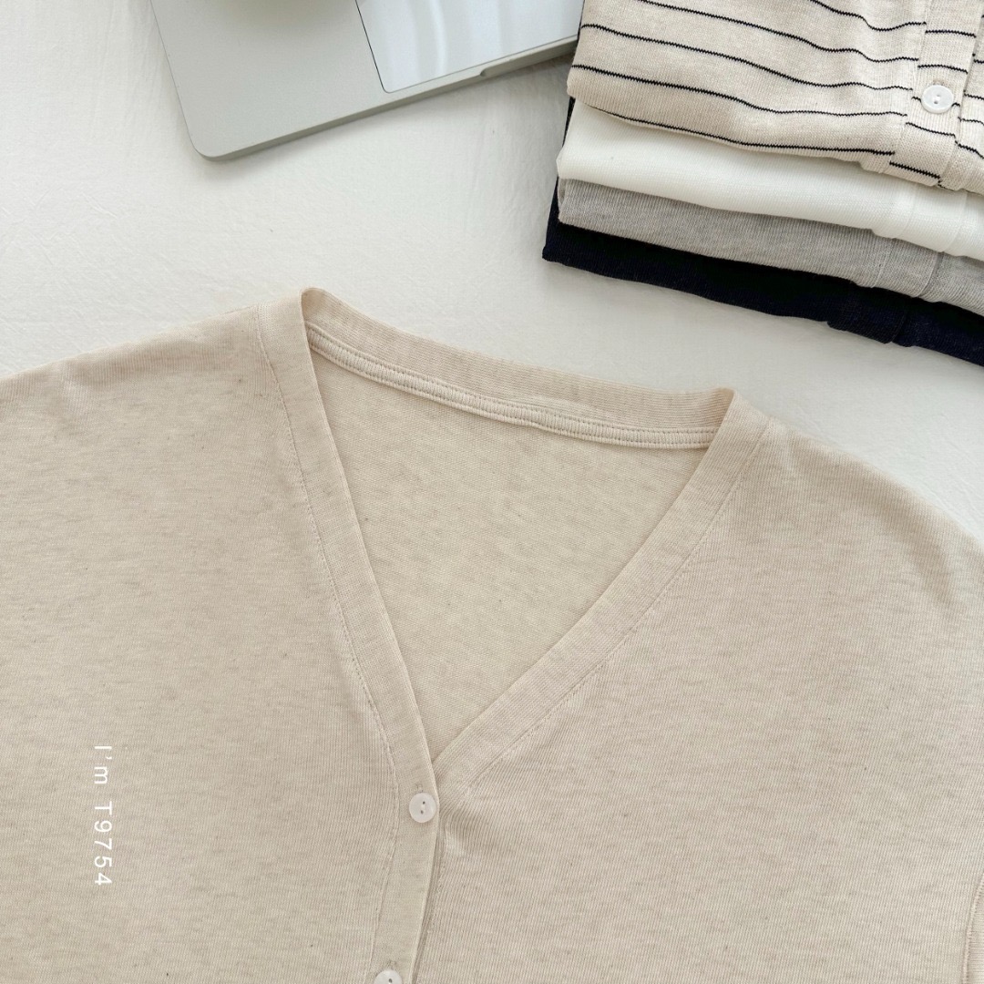 老米优品🎈 3-5天!超值!天丝+亚麻+棉《针织亚麻V领纽扣T》巨凉快,透气,品质款~ T250516A