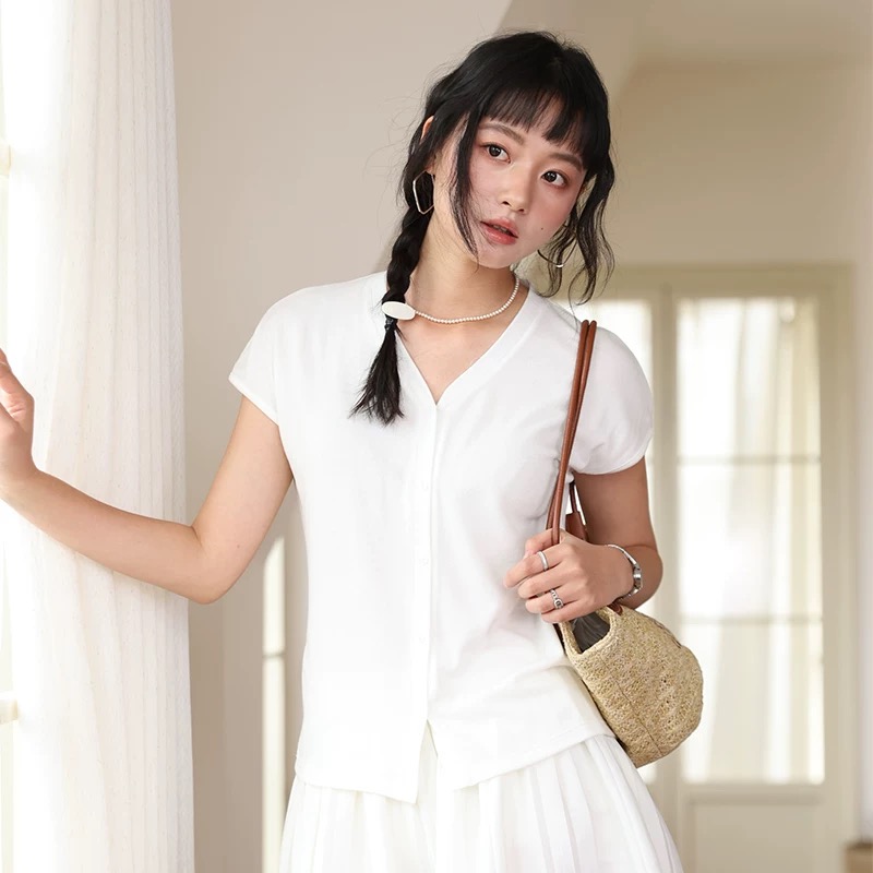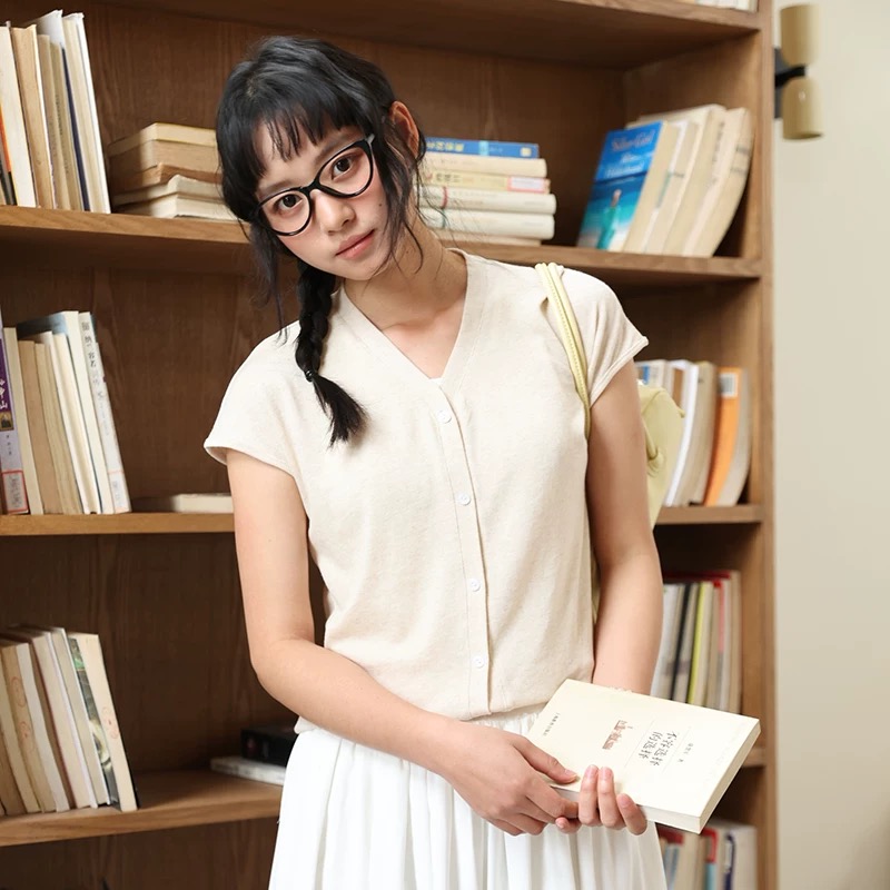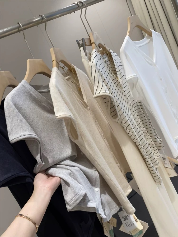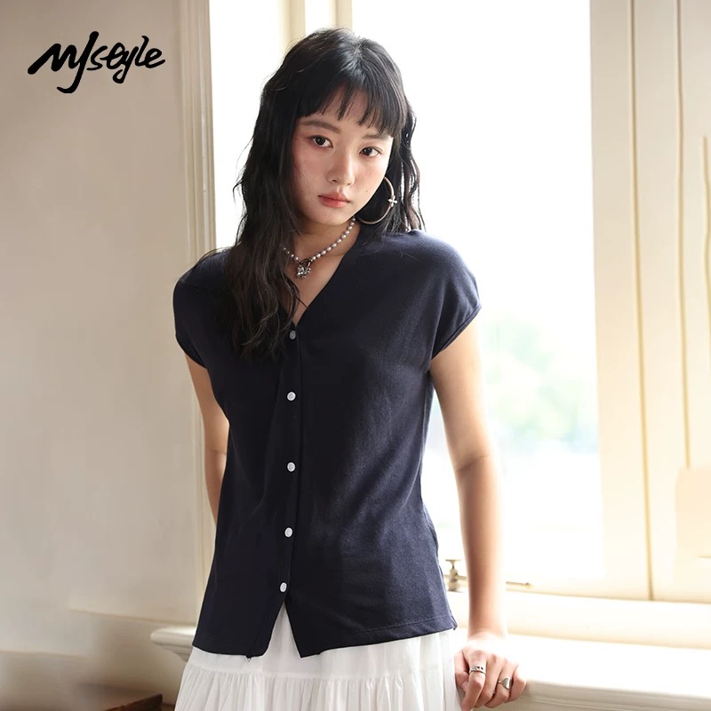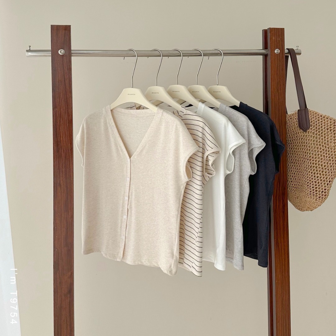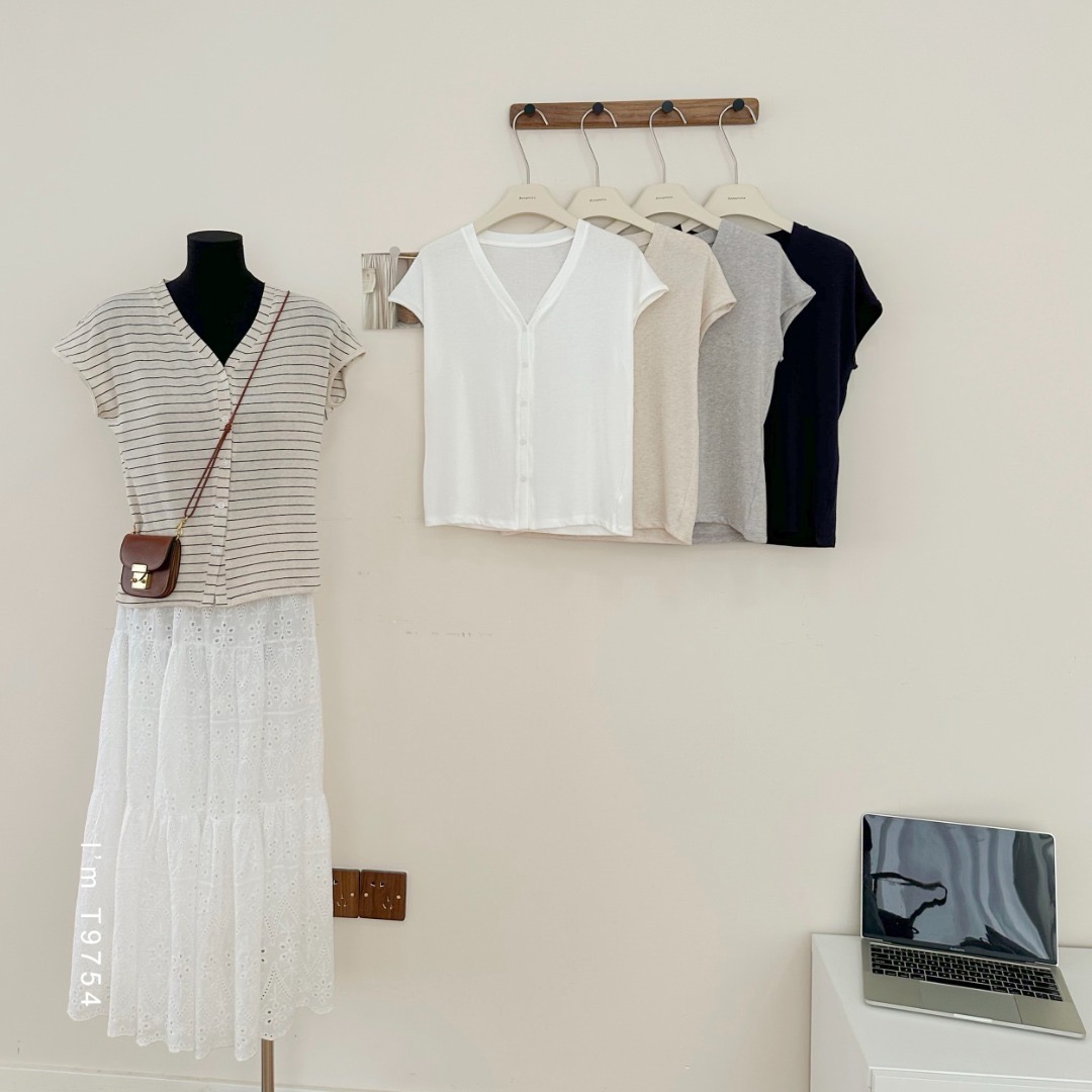 老米优品🎈 3-5天!超值!天丝+亚麻+棉《针织亚麻V领纽扣T》巨凉快,透气,品质款~ T250516A