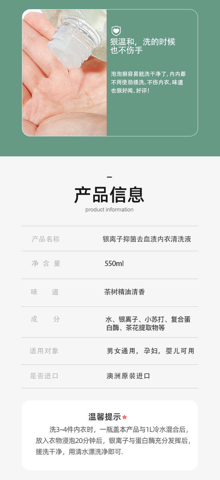 【澳洲原装进口】海肌兰内衣清洗液|72H持续有效yi菌|祛除黄渍、血渍