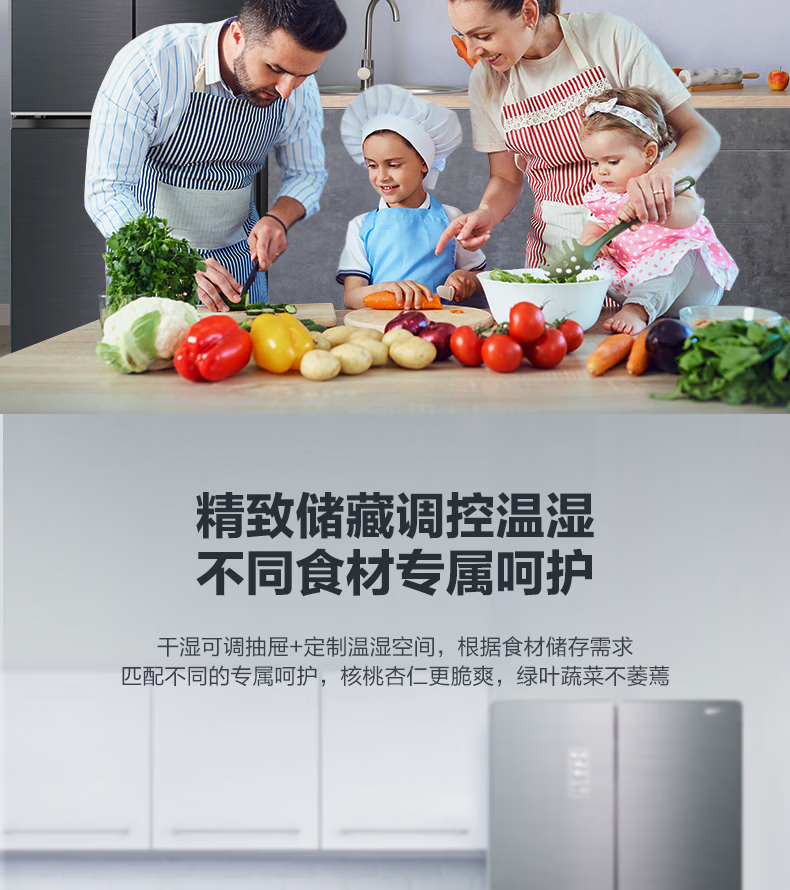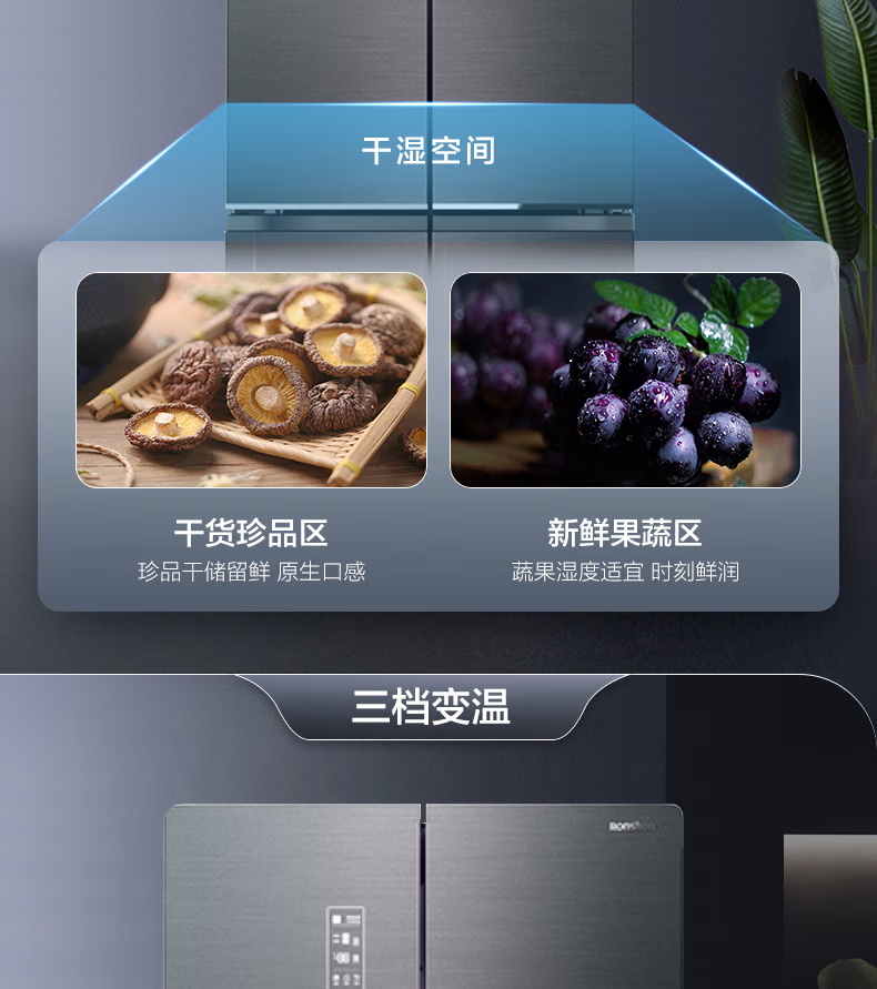 容声 BCD-465WRK1FPG 465升一级能效双变频风冷 干湿分储空间四维净化十字对开门冰箱