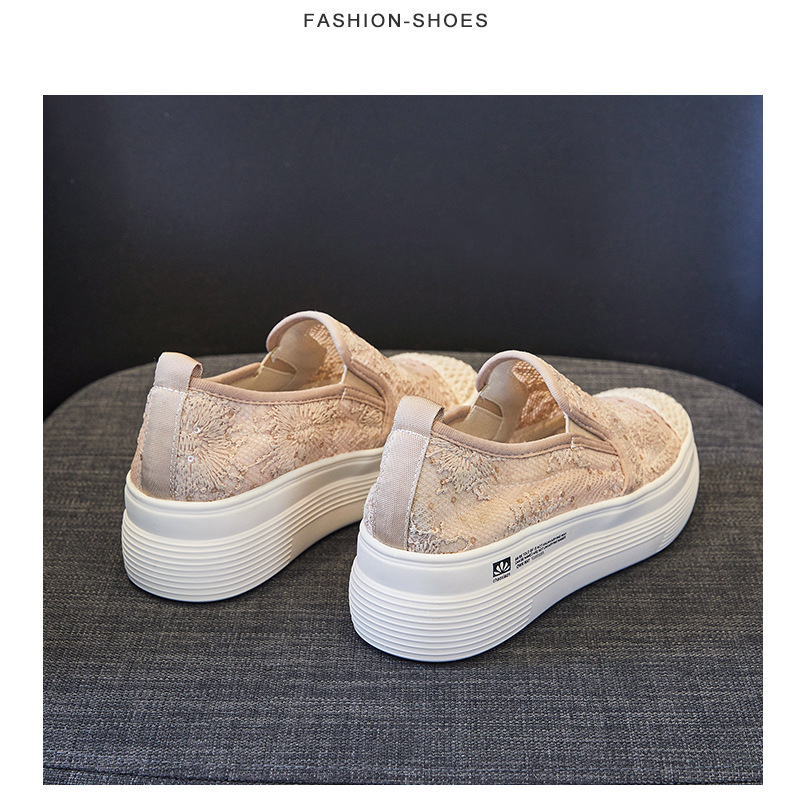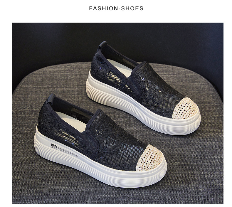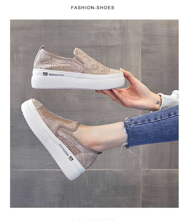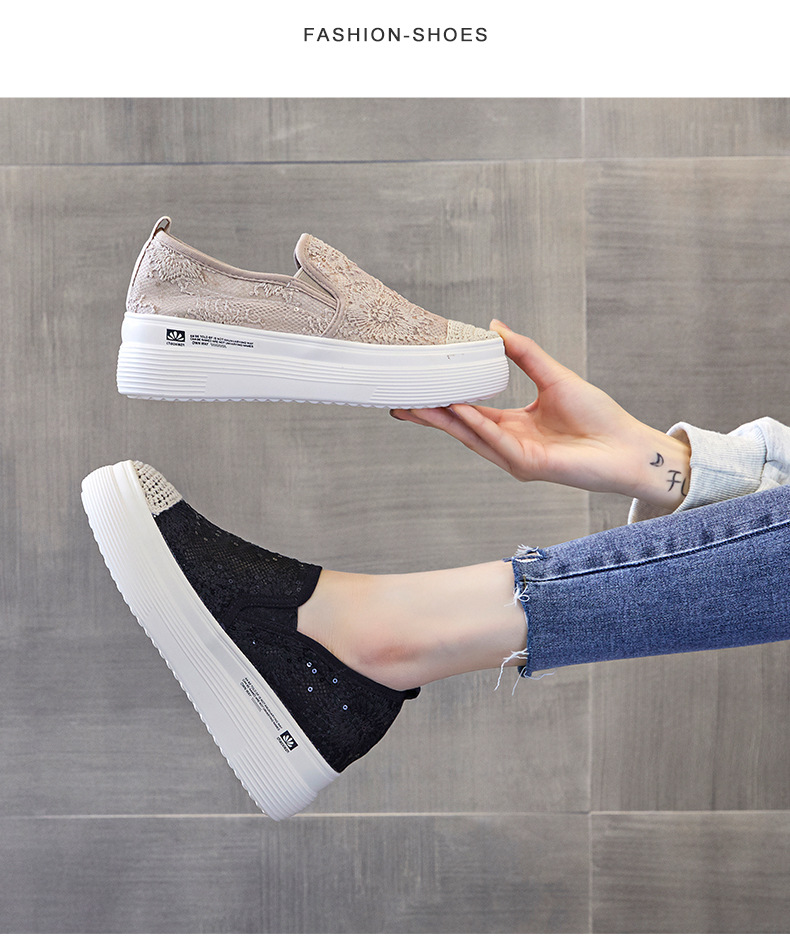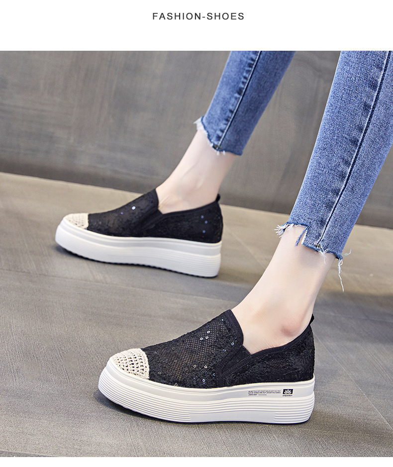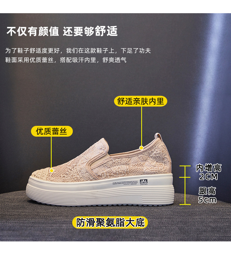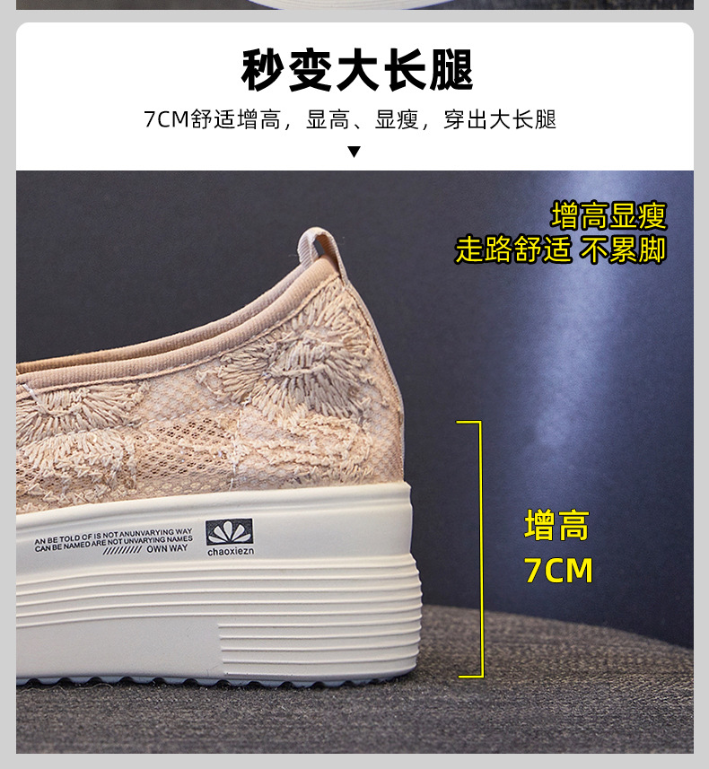 新款透气防滑网纱蕾丝休闲增高低帮7厘米渔夫鞋 LMS-渔夫000