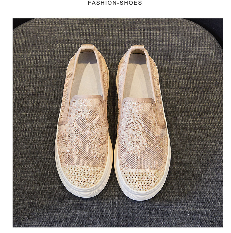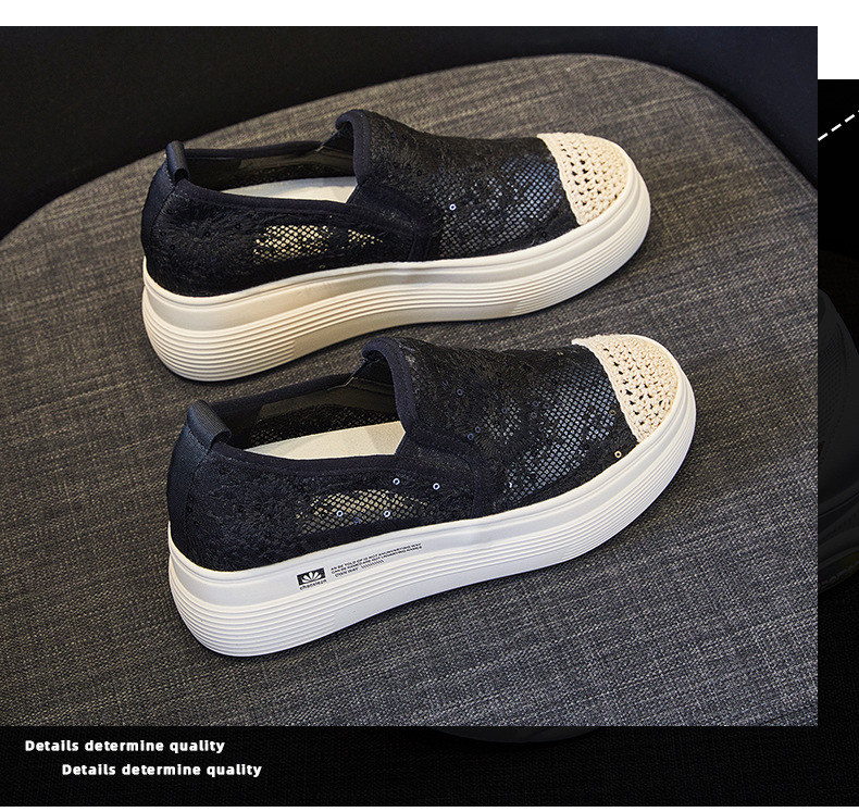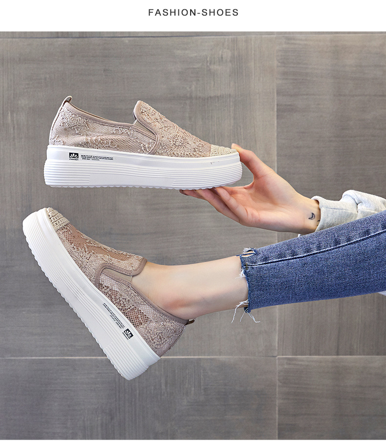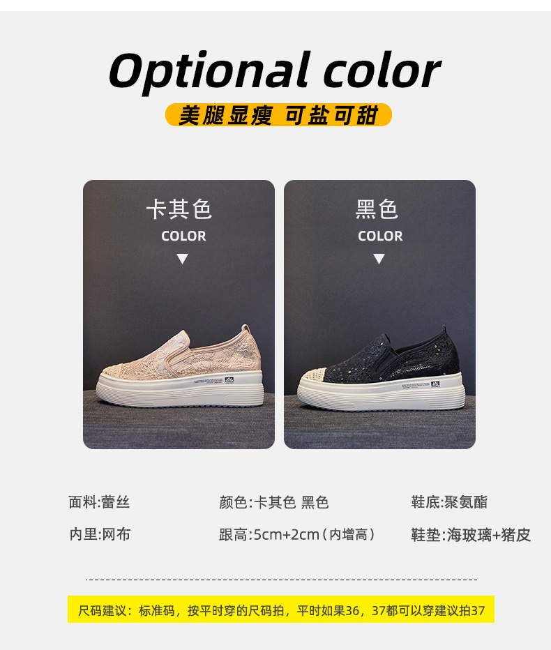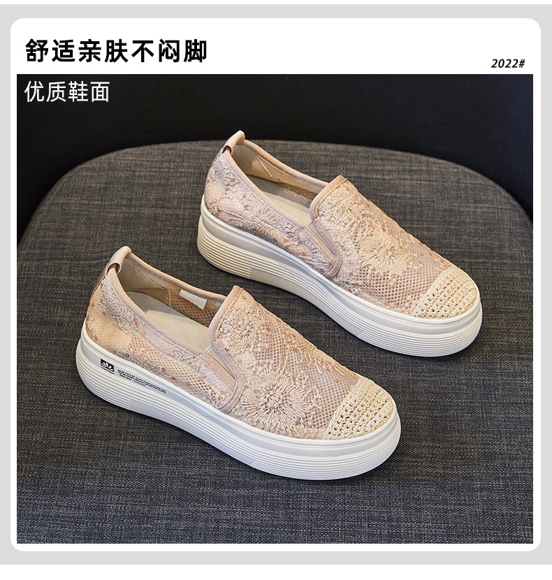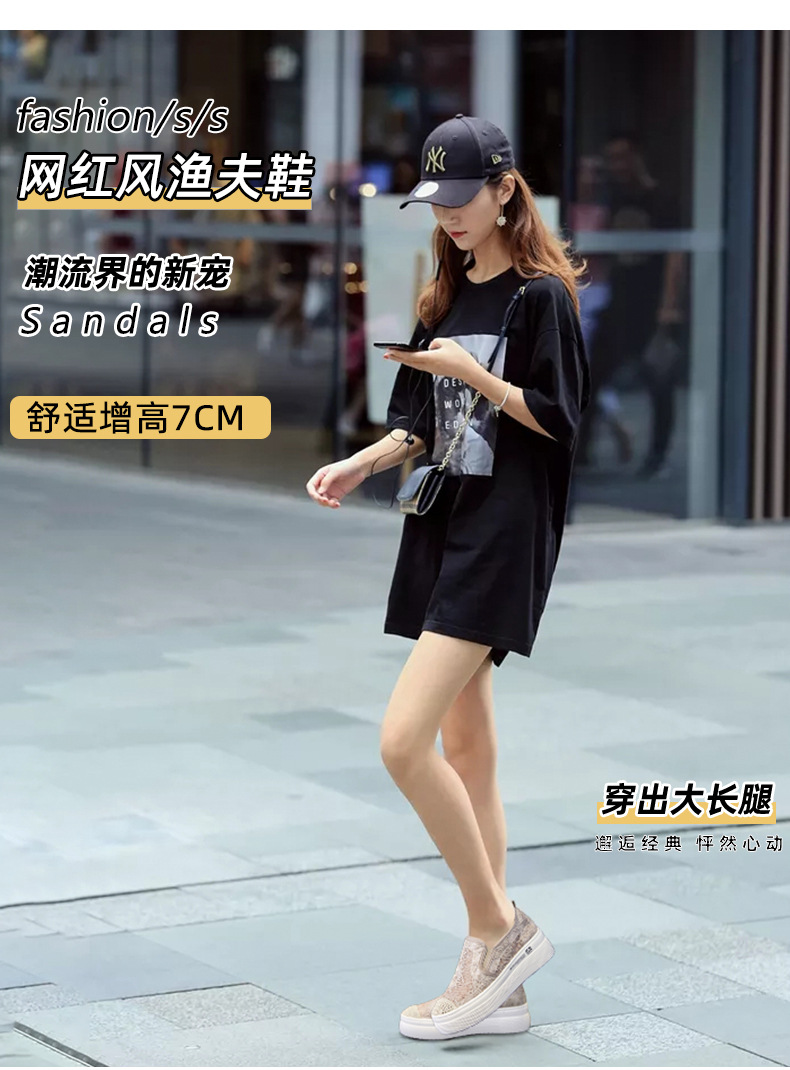 新款透气防滑网纱蕾丝休闲增高低帮7厘米渔夫鞋 LMS-渔夫000