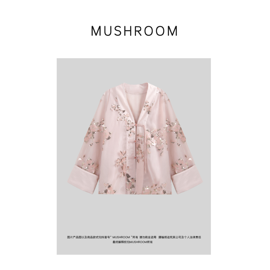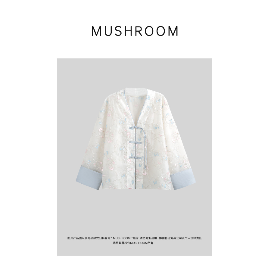 金蘑菇菇 折花令/新中式 重磅朱迪纱 撞色满绣盘扣国风外套