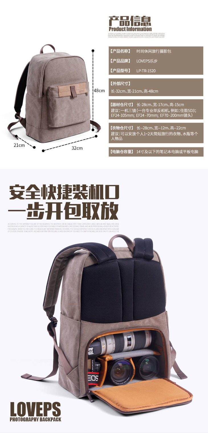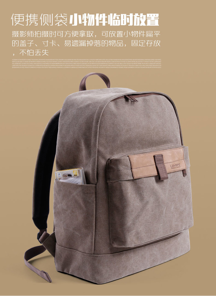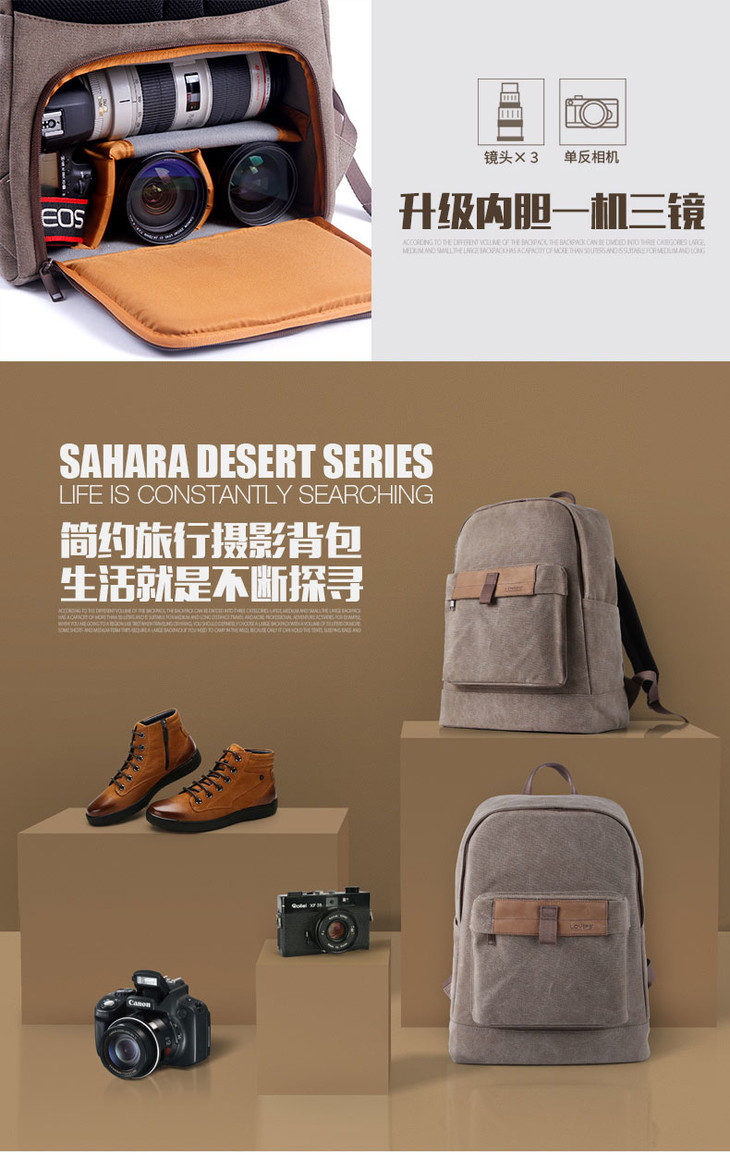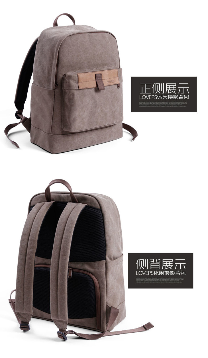狼族优选丨1机3镜 经典帆布都市休闲双肩摄影包(TR-1520)