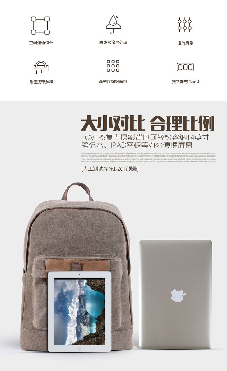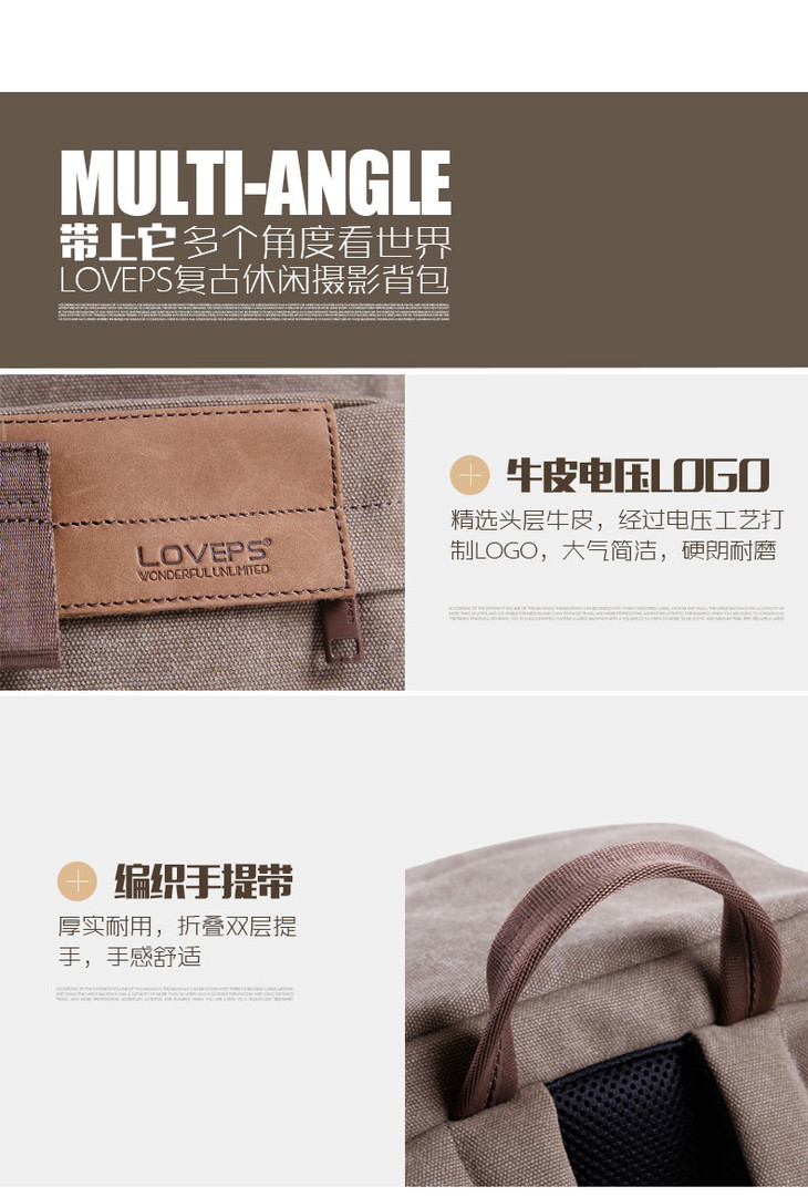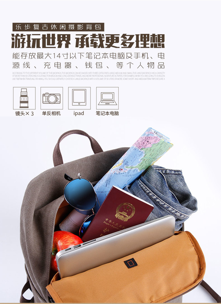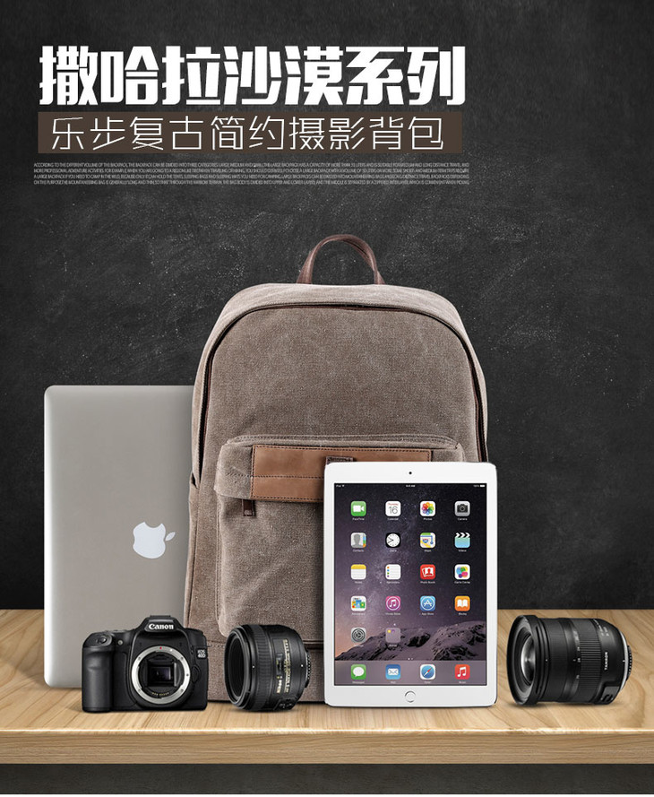 狼族优选丨1机3镜 经典帆布都市休闲双肩摄影包(TR-1520)