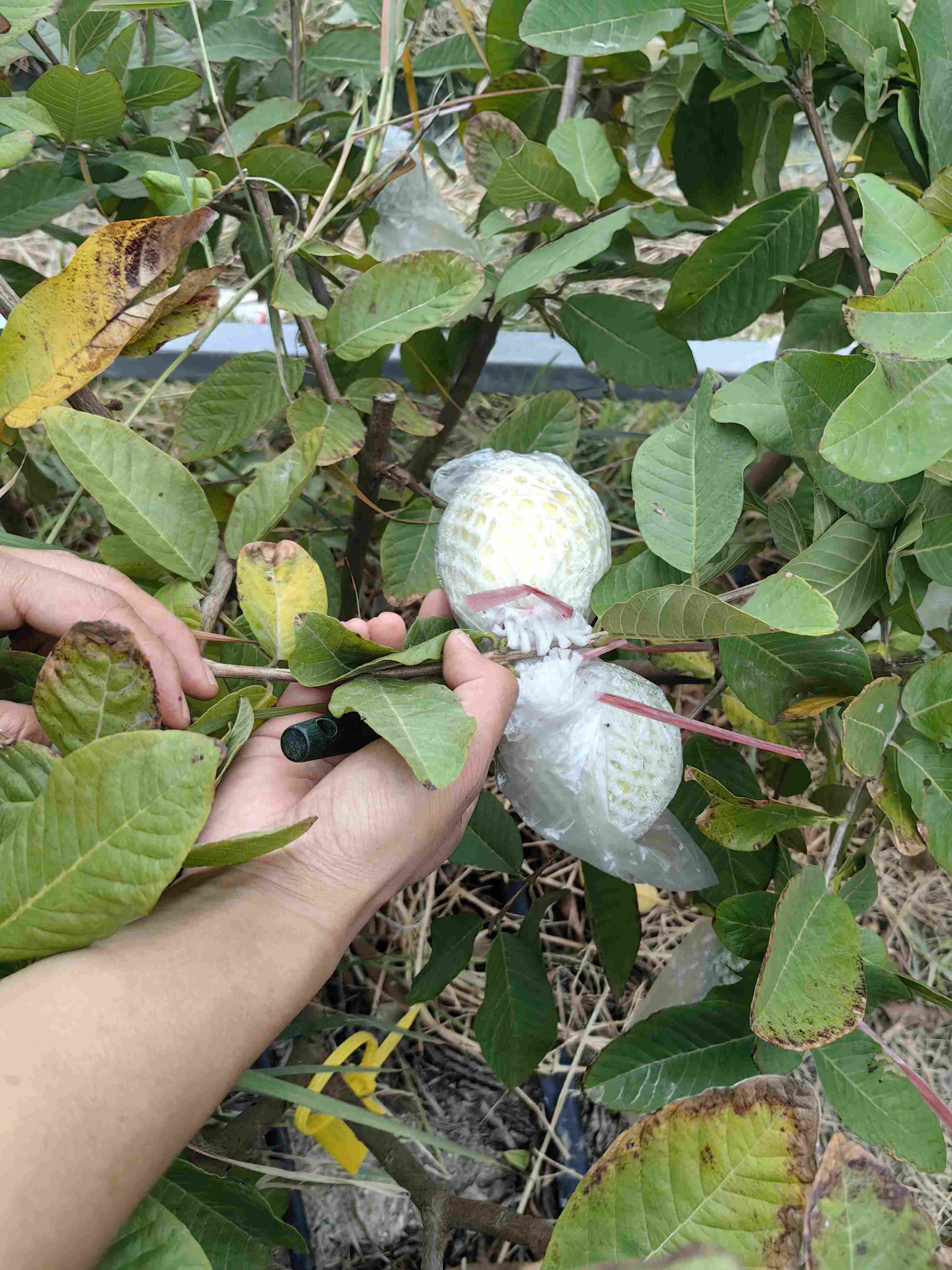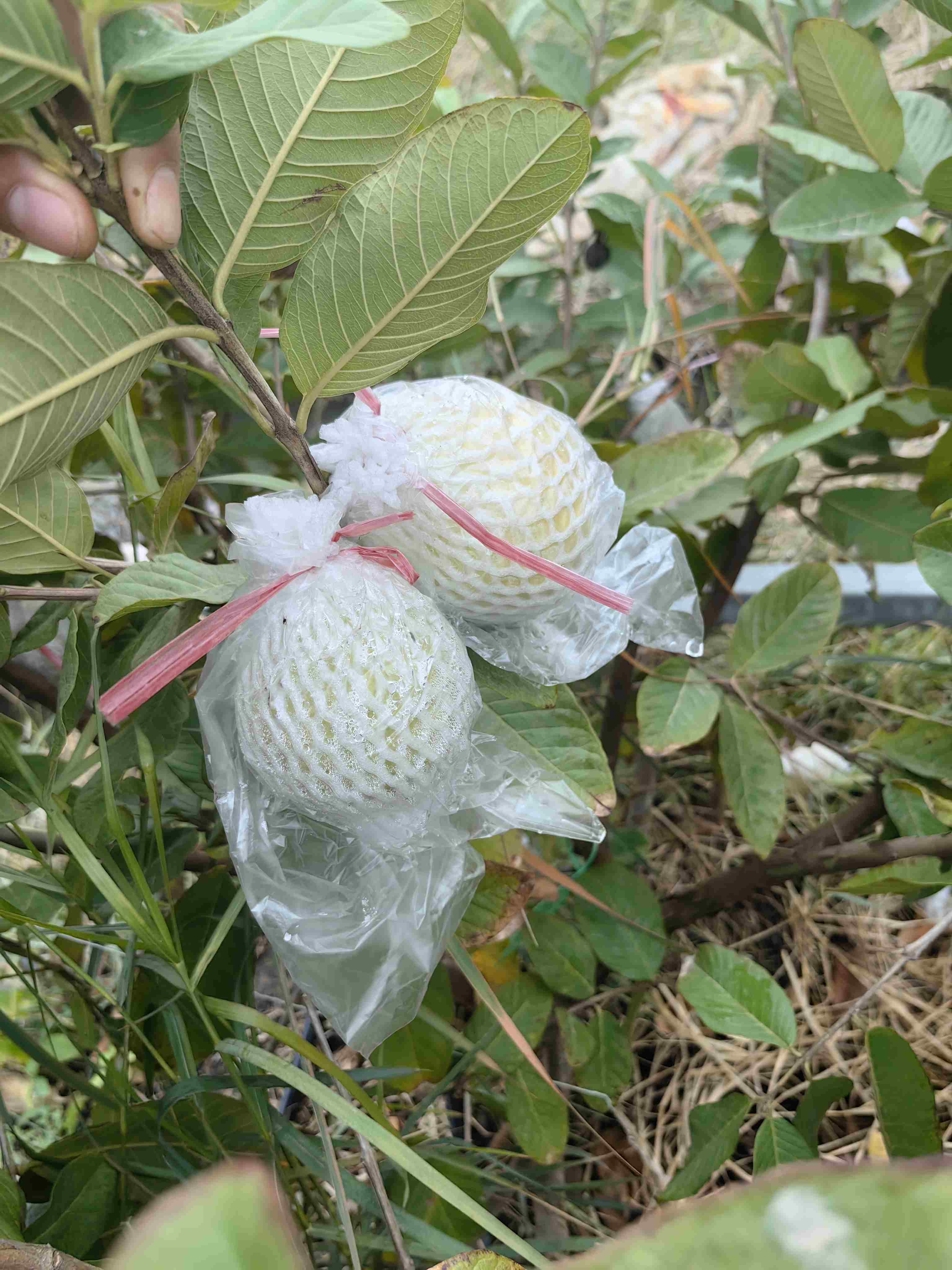 因为不打药,为了防止蚊虫的叮咬,每个芭乐都套上了袋子,吃的也更放心。
