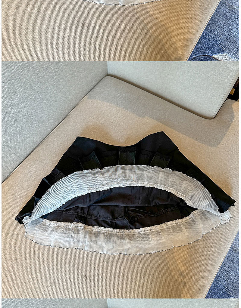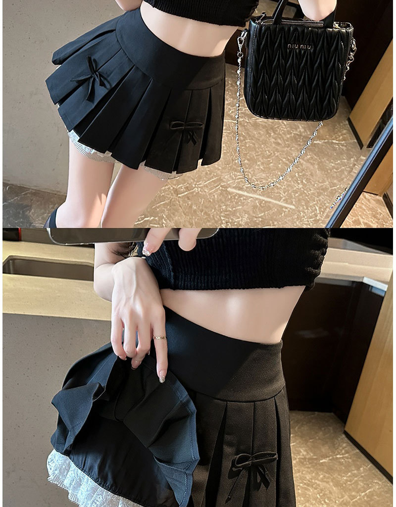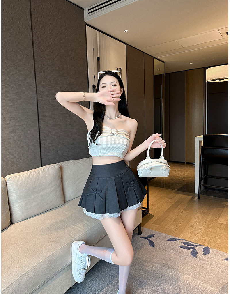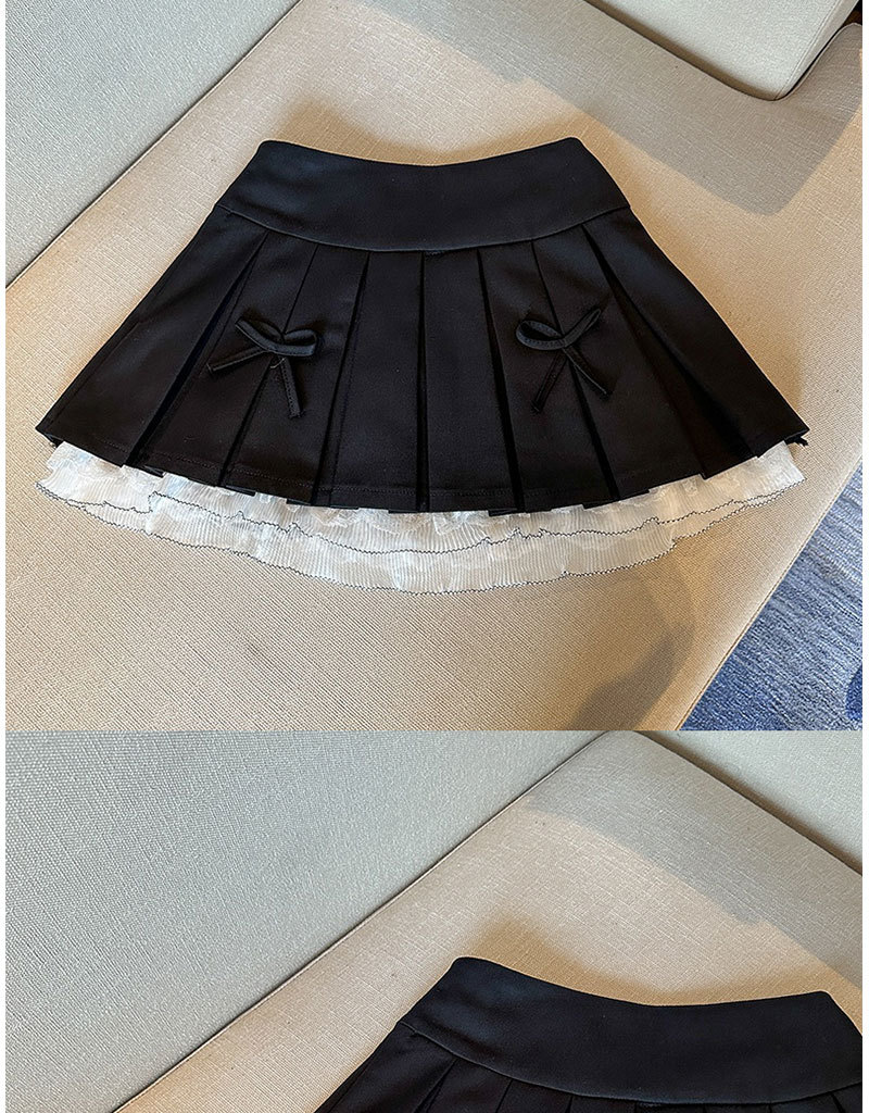 纯欲风蕾丝花边【a字显瘦半身裙】夏季新款 辣妹小众蝴蝶结高腰百褶短裙