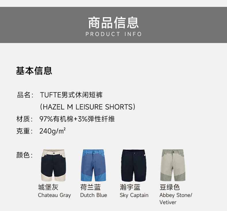 TUFTE 男士榛树系列休闲短裤
