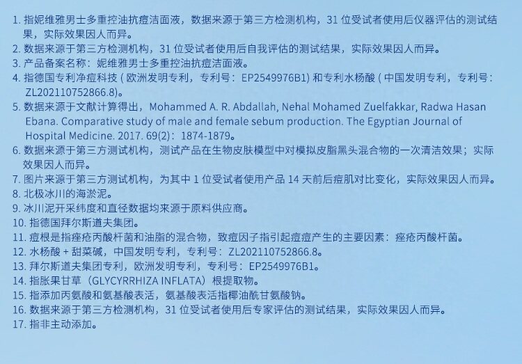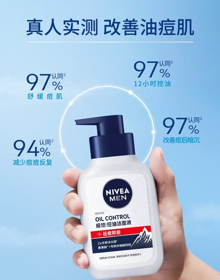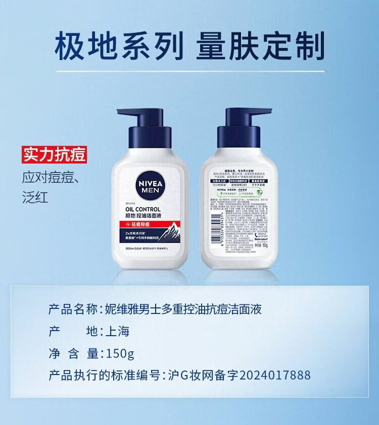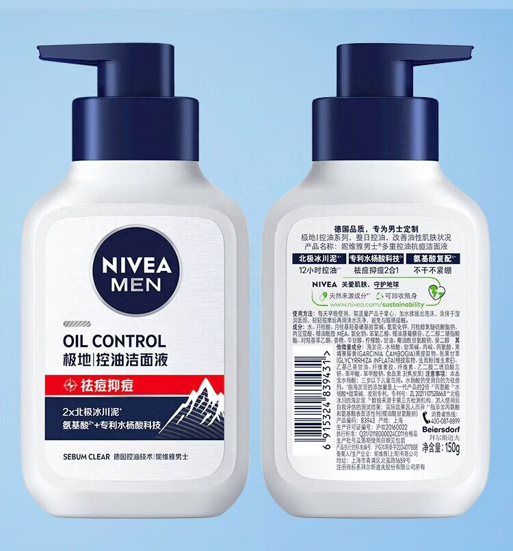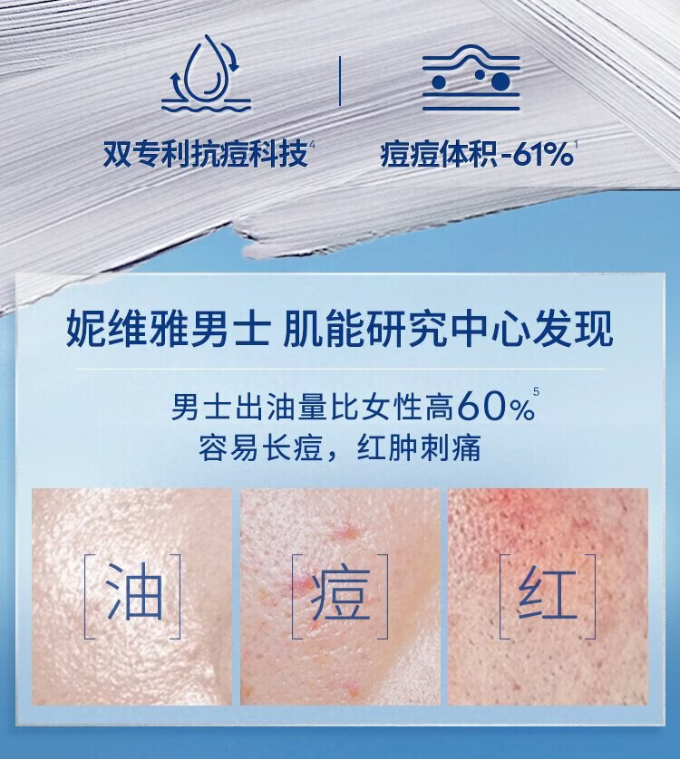 妮维雅男士多重控油抗痘洁面液150g/瓶