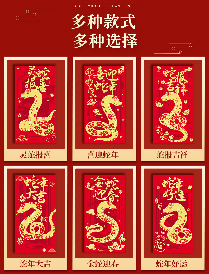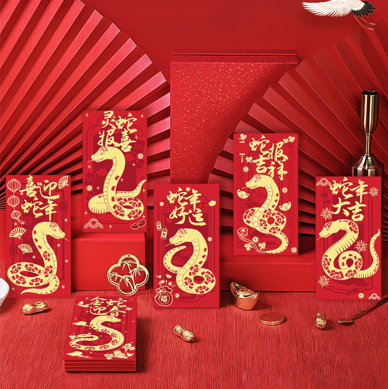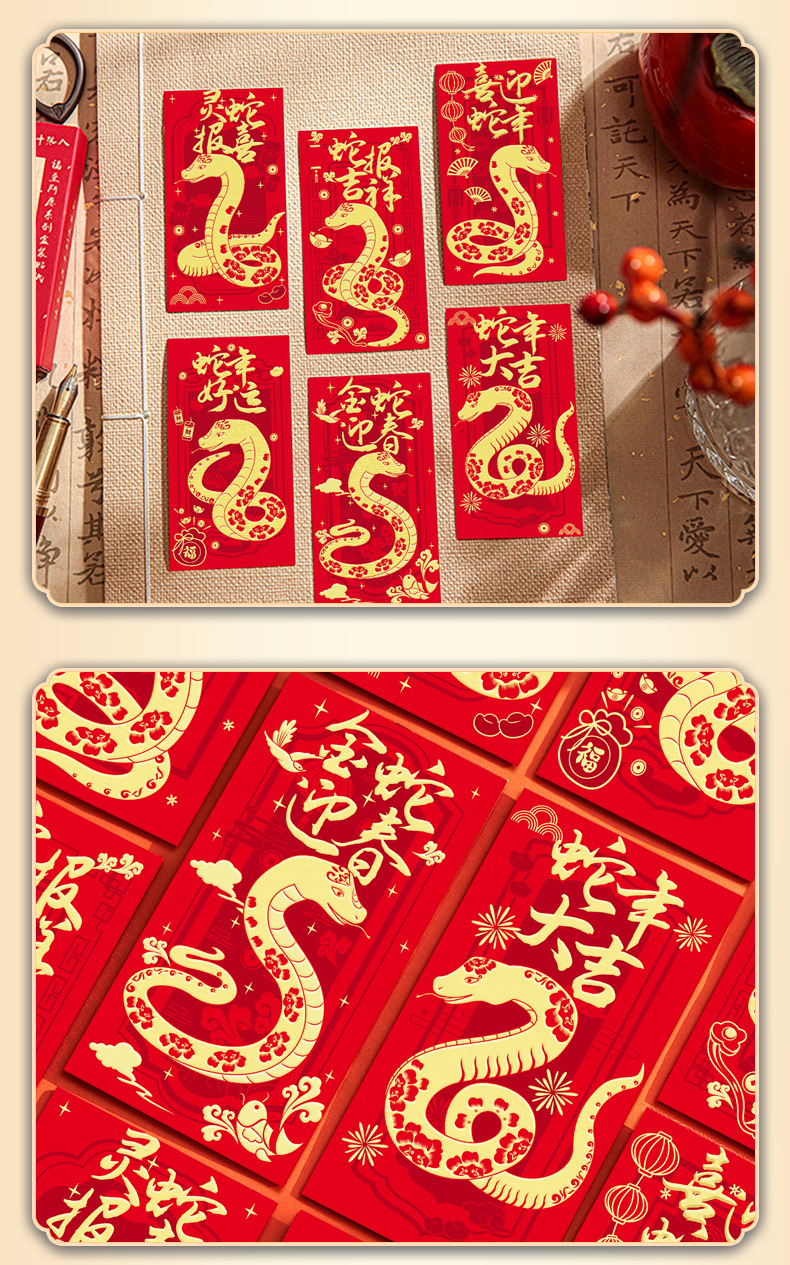 【红火热闹过新年】2025新款蛇年红年利是封创意卡通十二生肖新年红包袋,可插式封口,不易掉出。ry