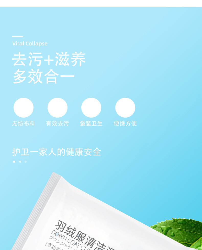 【分解污渍❗️便携应急】羽绒服湿巾清洁免洗强力去污渍油渍擦洗干洗剂家用便携包装湿纸巾。ja