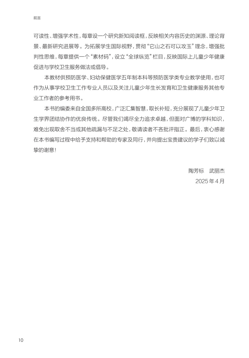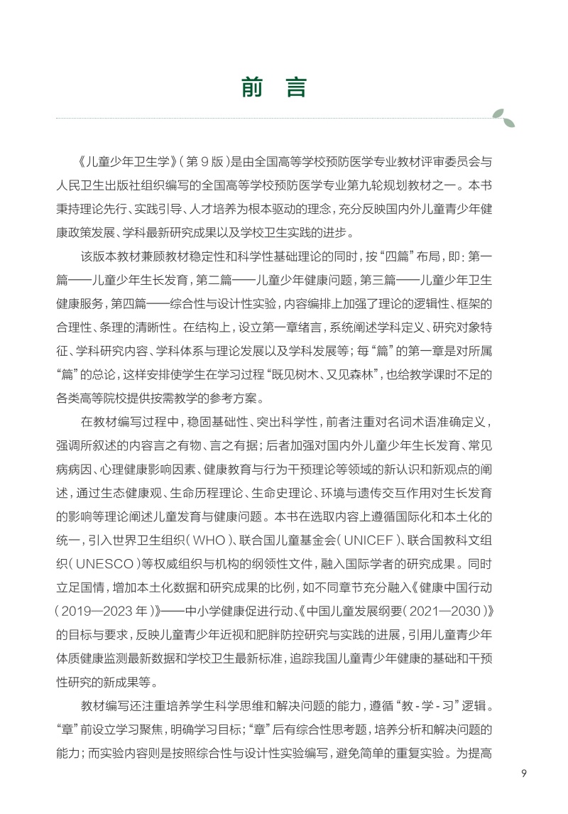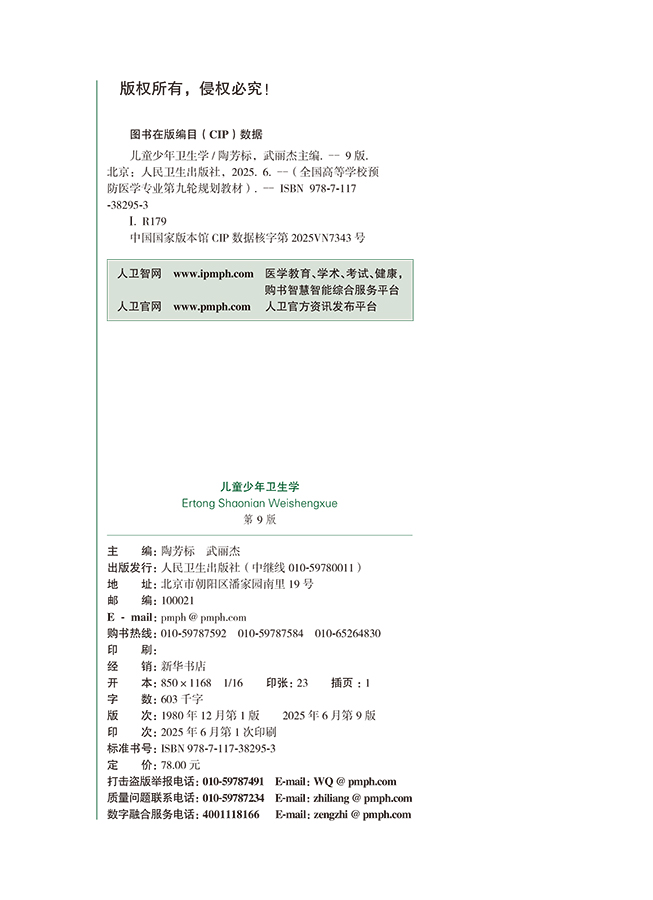 儿童少年卫生学 第9九版 十四五规划教材 全国高等学校教材 陶芳标 武丽杰 主编 供预防医学类专业用 9787117382953人民卫生出版社