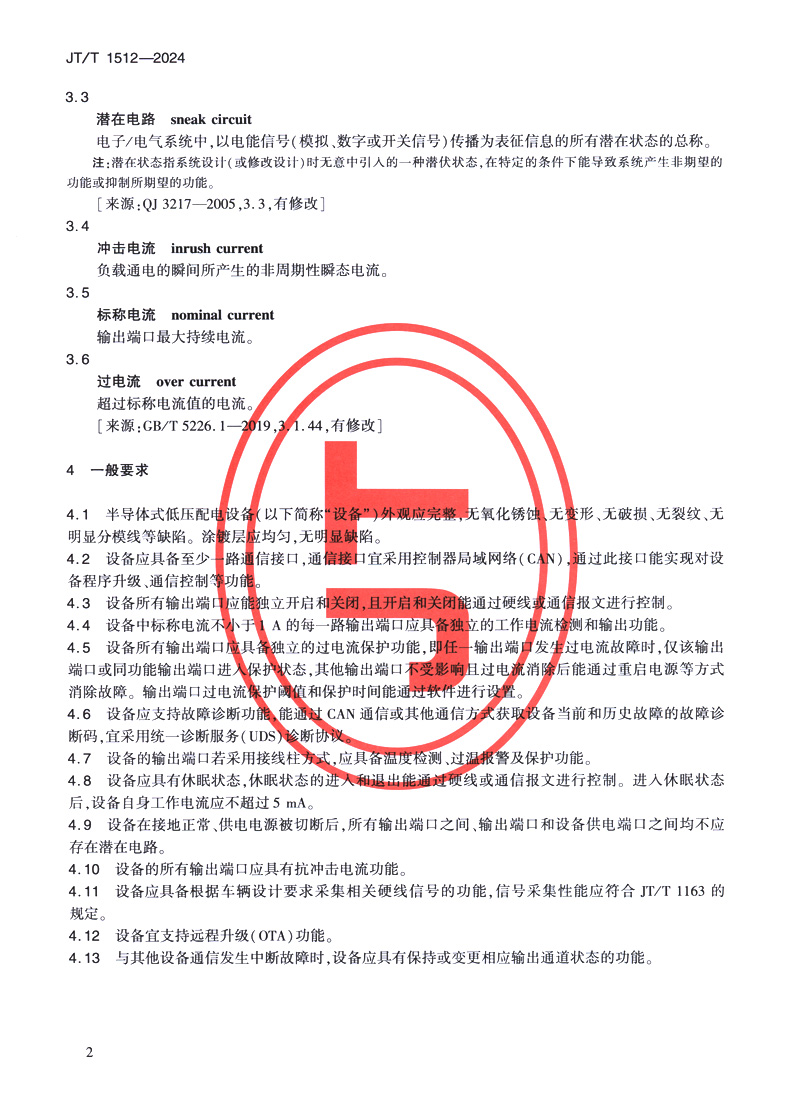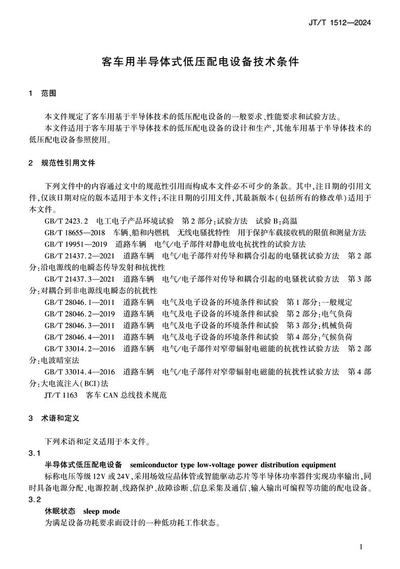 客车用半导体式低压配电设备技术条件(JT/T 1512—2024)
