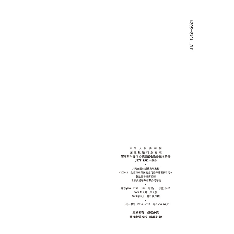 书名:客车用半导体式低压配电设备技术条件(JT/T 1512—2024)