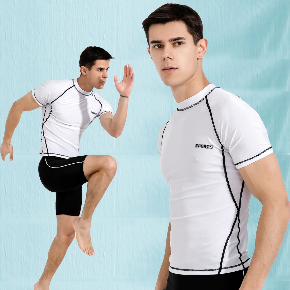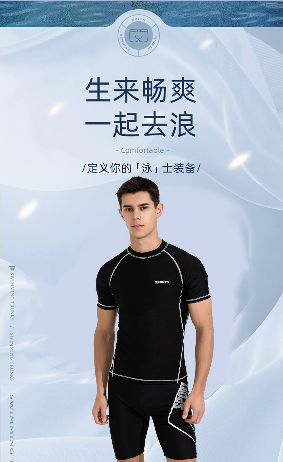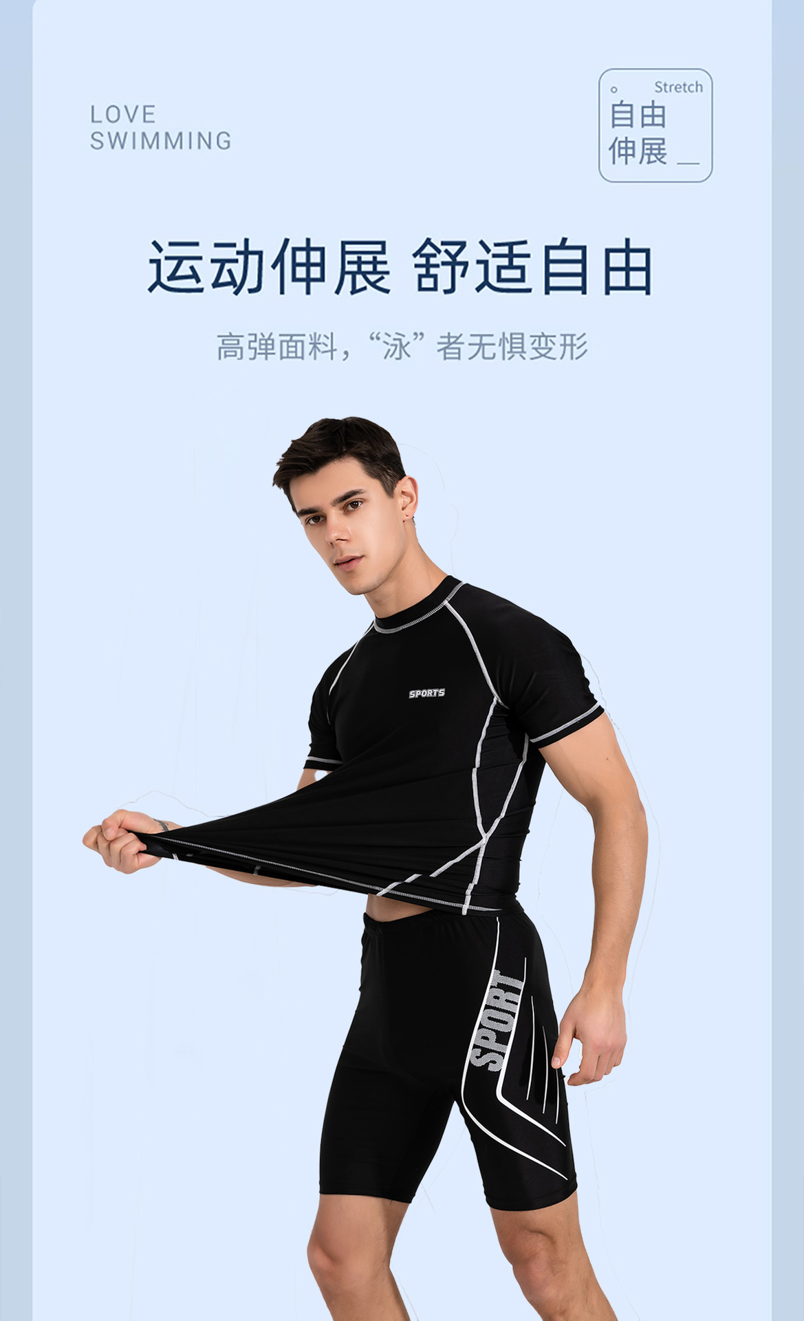【生来畅爽 一起去浪❗️新款男士泳衣分体式两件套】U型护裆,舒适自由高弹面料,干爽弹性不勒,男款防晒短袖冲浪浮潜服大码沙滩男泳裤夏日粉丝专属男士父亲节礼物新年礼盒年货礼盒